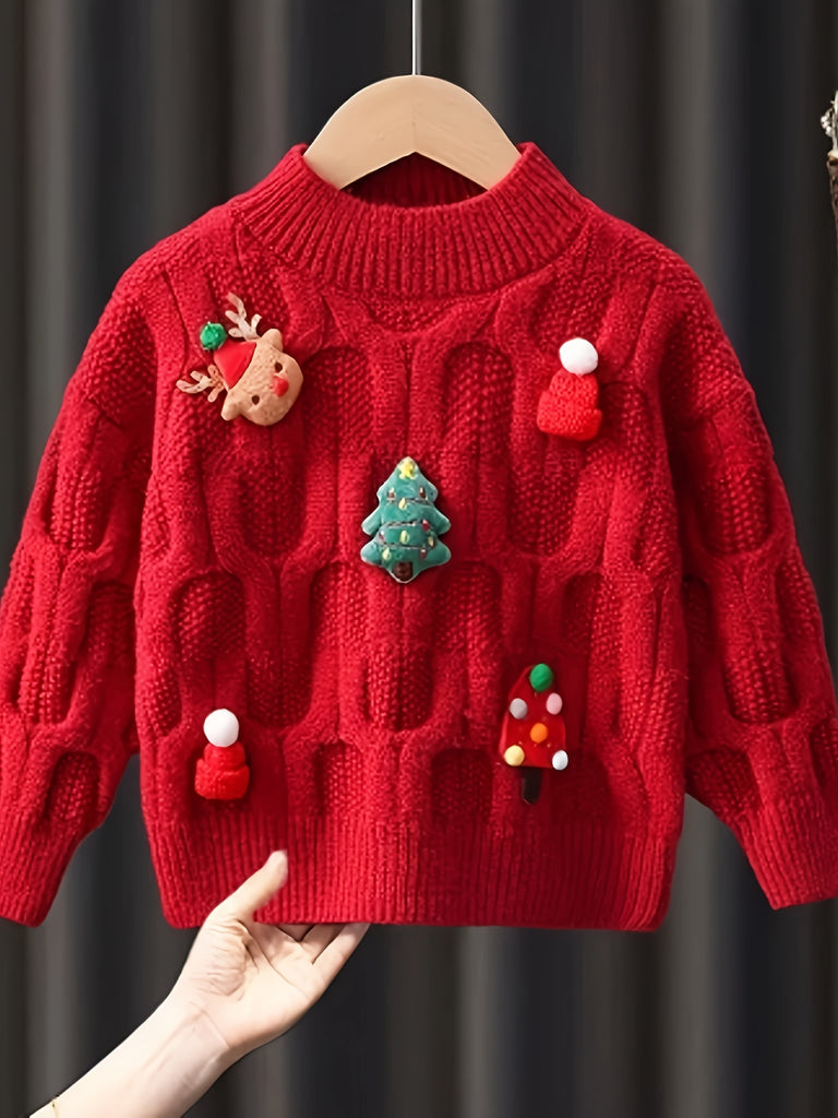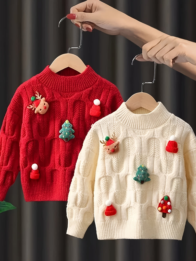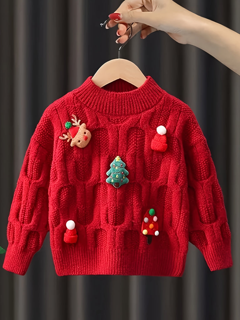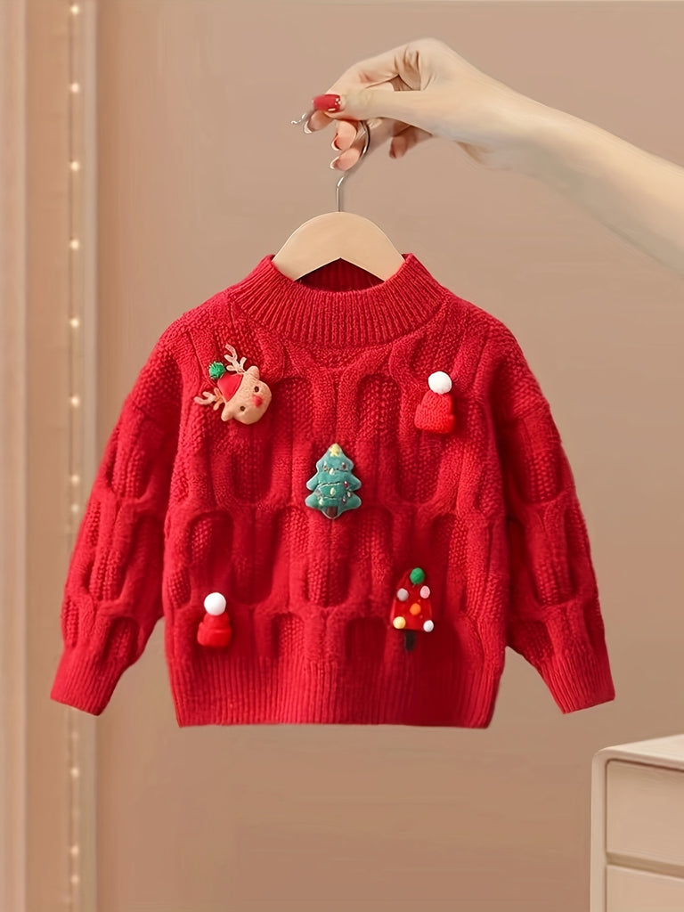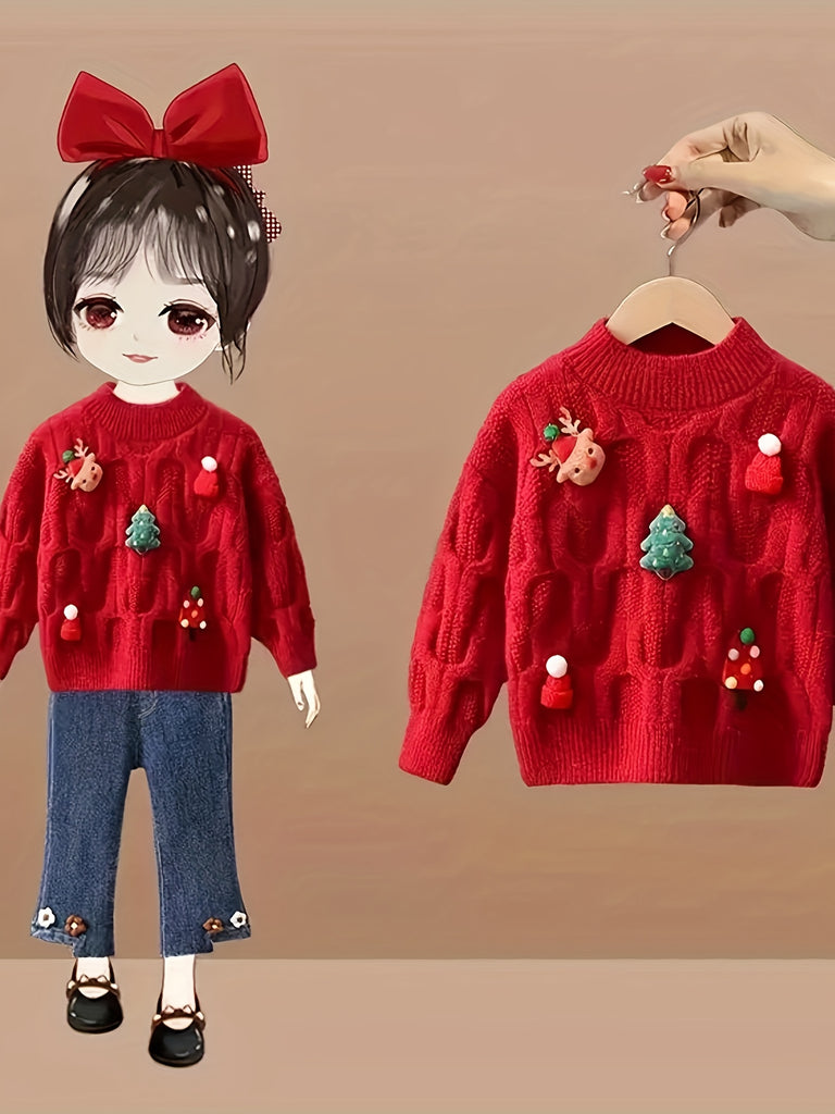 Comfy Thermal Long Sleeve Crew Neck Sweater For Girls, Cute Christmas Decor Pullover Jumper Top For Fall/ Winter