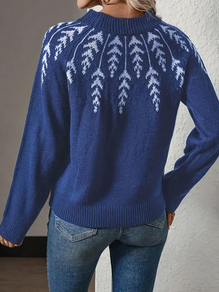 Elegant Christmas-Themed Crew Neck Sweater for Women - Cozy Polyester, Long Sleeve, Perfect for Fall & Winter