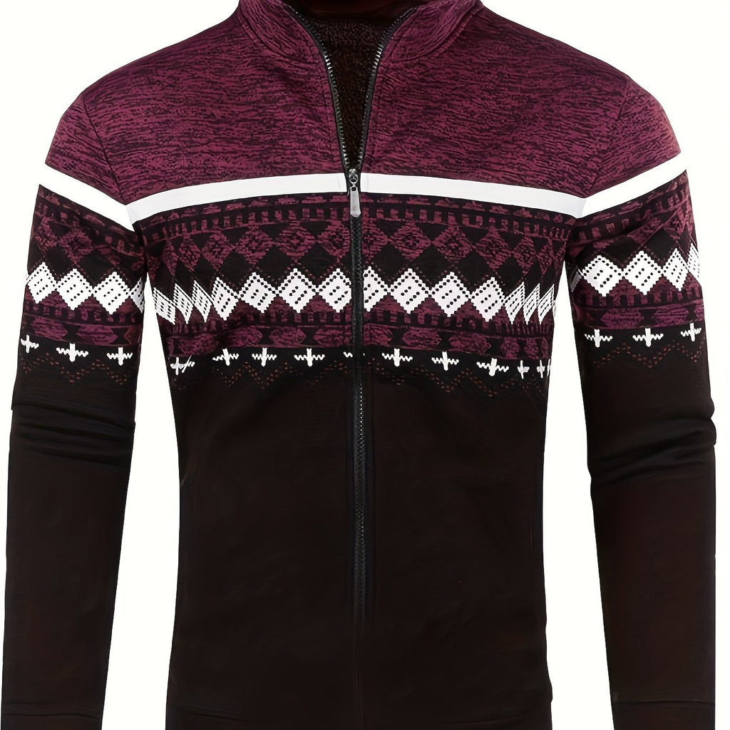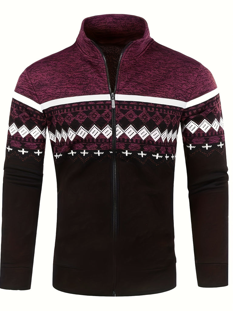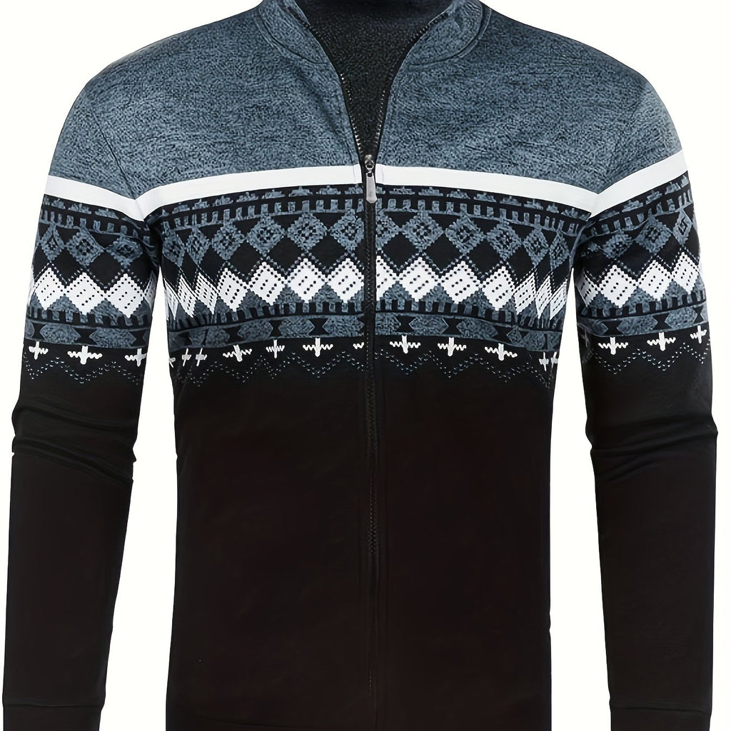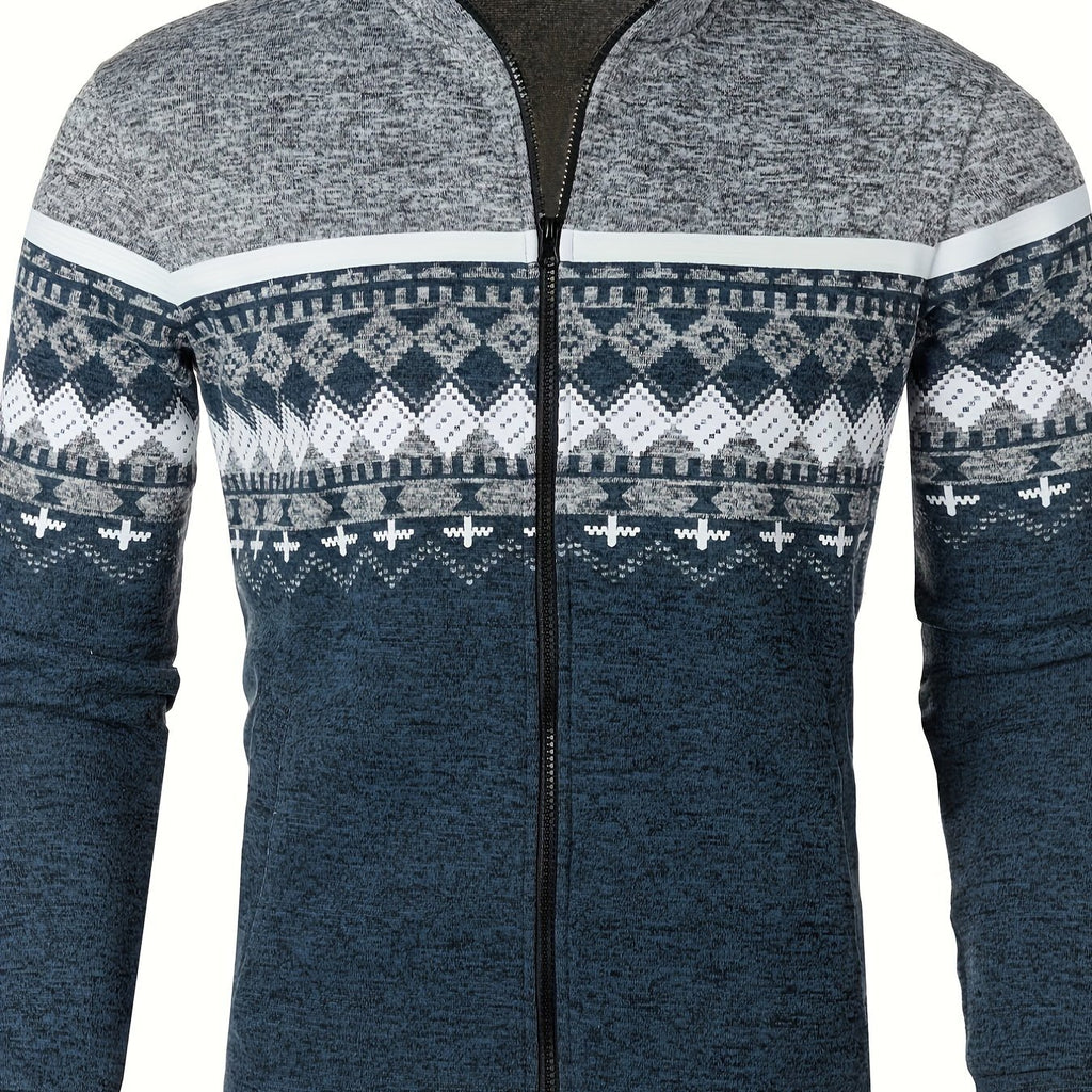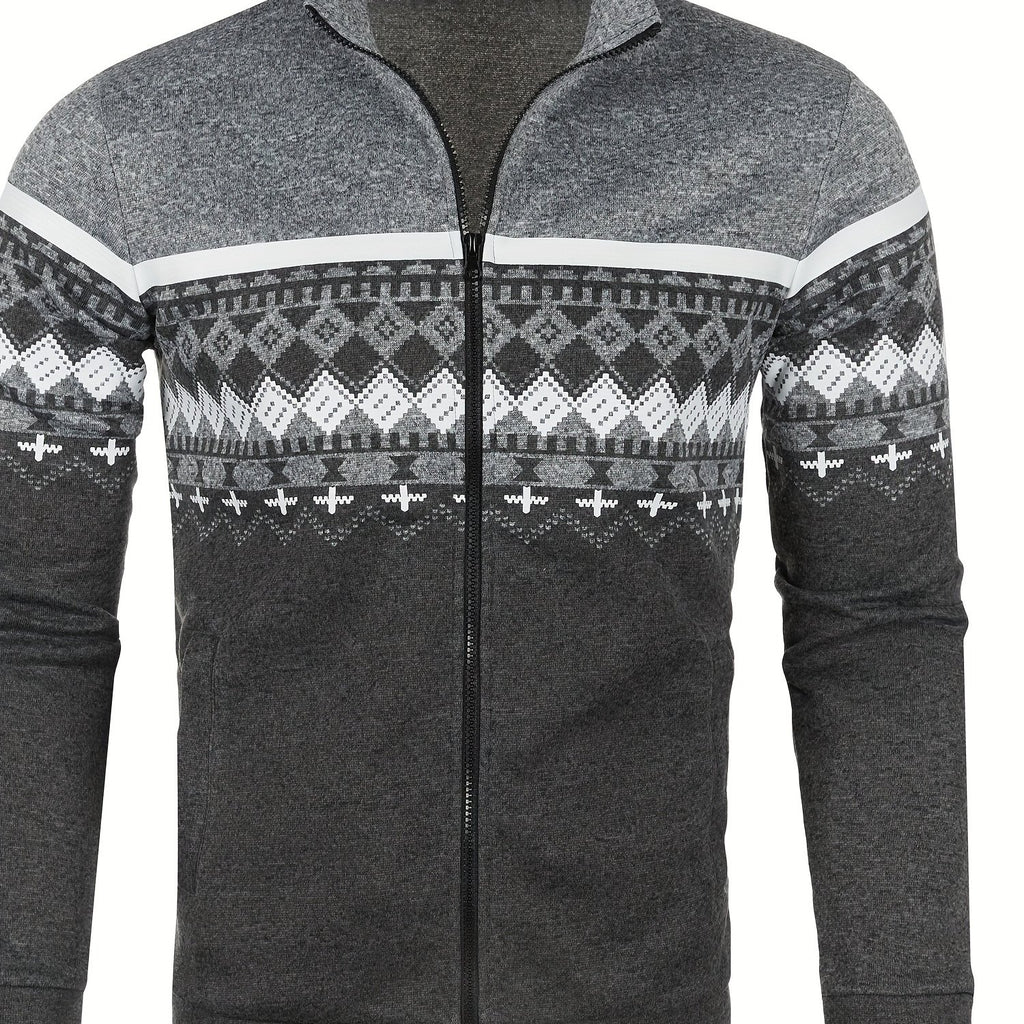 Elegant Mid Stretch Ethnic Retro Cardigan, Men's Casual Vintage Style V Neck Full Zip Up Cardigan Sweater Coat For Fall Winter