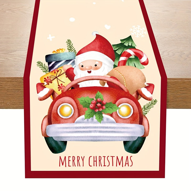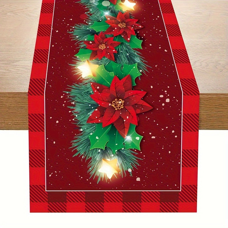 Festive Santa Claus Christmas Table Runner - Red and Black Plaid Holiday Dining Decor, Polyester Woven Christmas Table Decoration