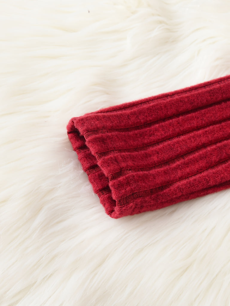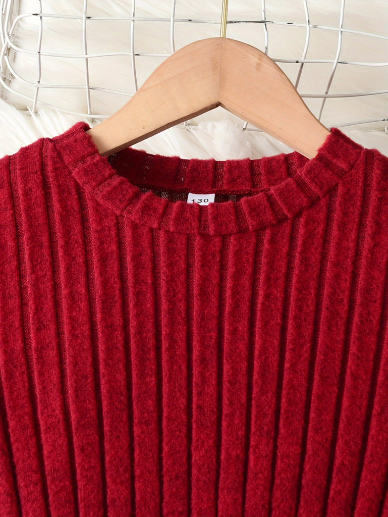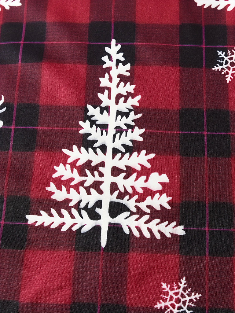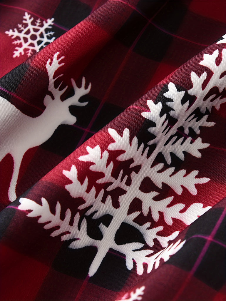 GOKISTOTR Girls' Christmas Dress, Elegant Fashion, Long Sleeve, Polyester, Round Neck, Mid-Length, A-Line, Ribbon Waist, No Padding, Festive Plaid & Reindeer Print, Party Style, Youth Size