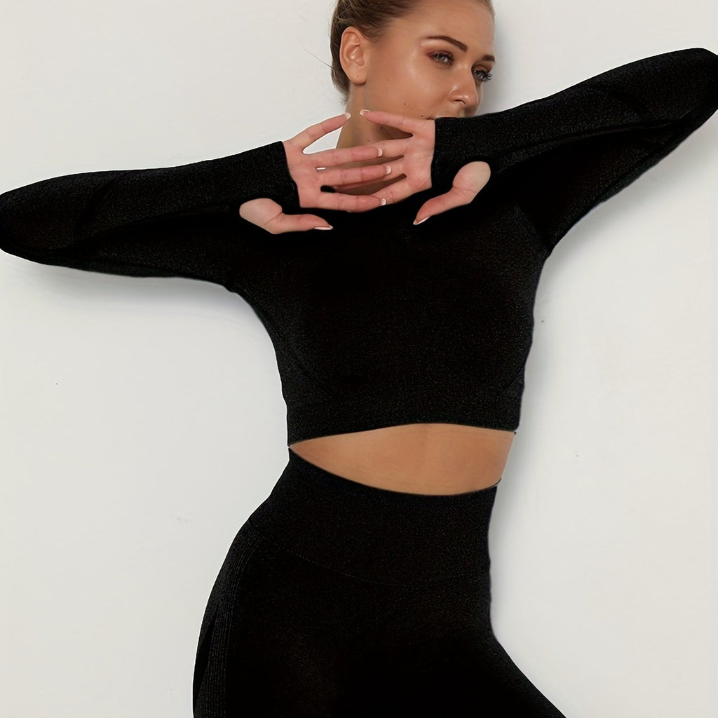 kkboxly 1 piece Comfortable Seamless Long Sleeve Crop Top for Yoga and Fitness Workouts - High Waist Activewear for Women