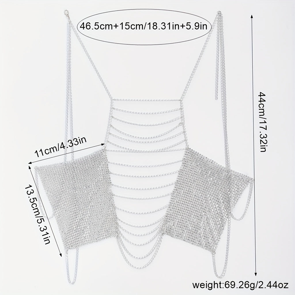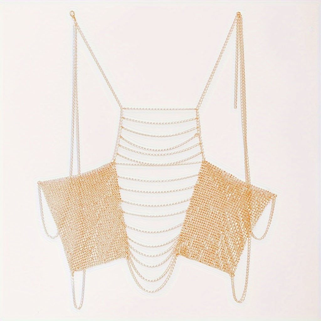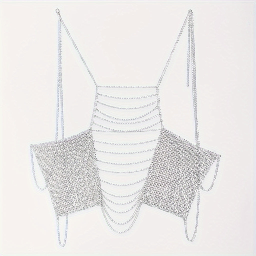 kkboxly 1pc Super Shiny Multi Layers Crop Top Bra Chest Chain Bling Bling Copper Body Chain Jewelry Glamorous Party Nightclub Wear