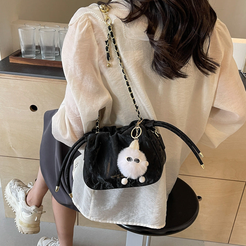 KKBOXLY 2025 Fashion Popular style small bag women's popular new casual versatile chain messenger bag popular shoulder drawstring bucket bag