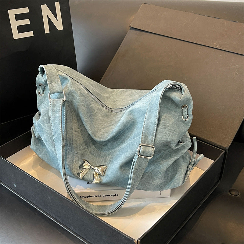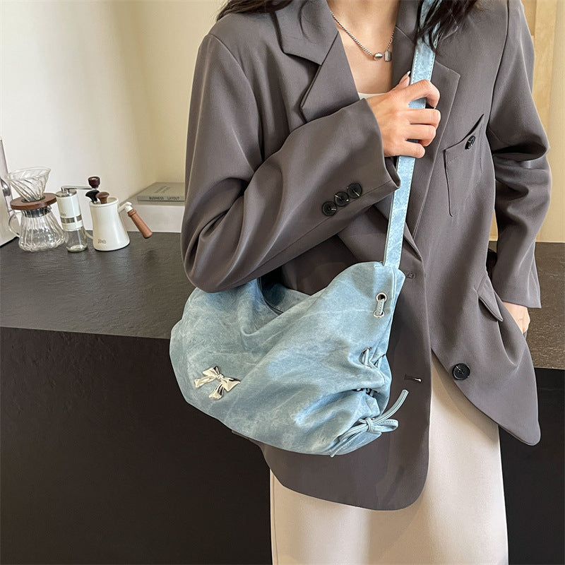 KKBOXLY 2025 Large capacity messenger bag women's popular new fashion pleated shoulder bag ballet style bow underarm tote bag