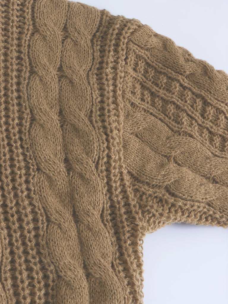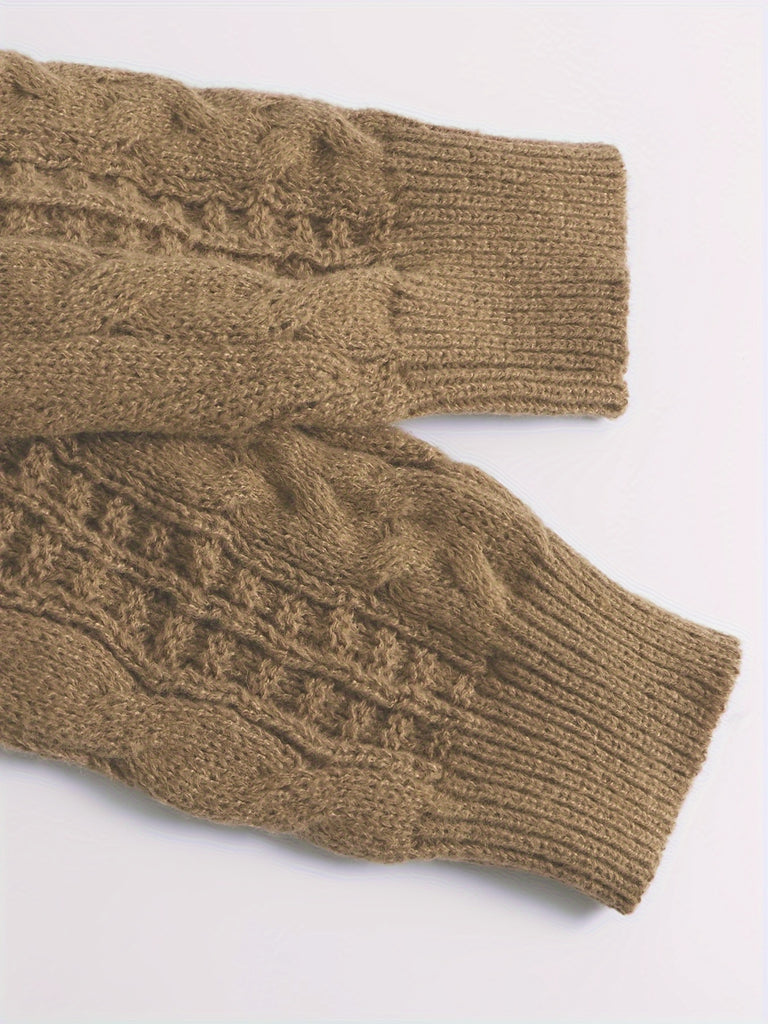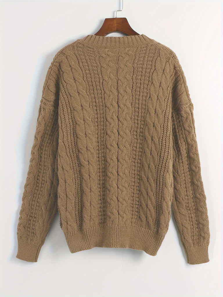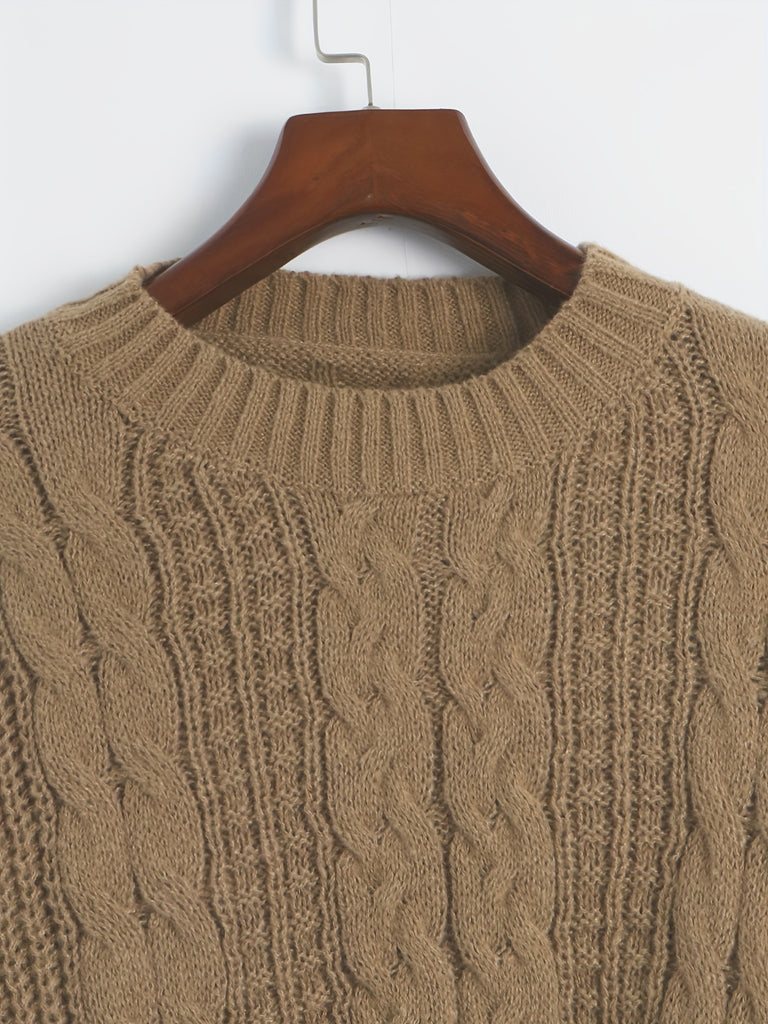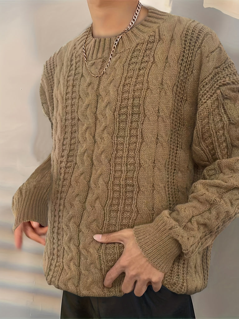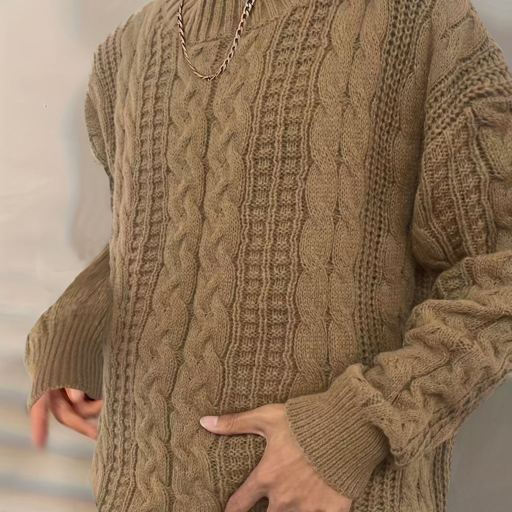 kkboxly All Match Knitted Cable Sweater, Men's Casual Warm Middle Stretch Crew Neck Pullover Sweater For Fall Winter