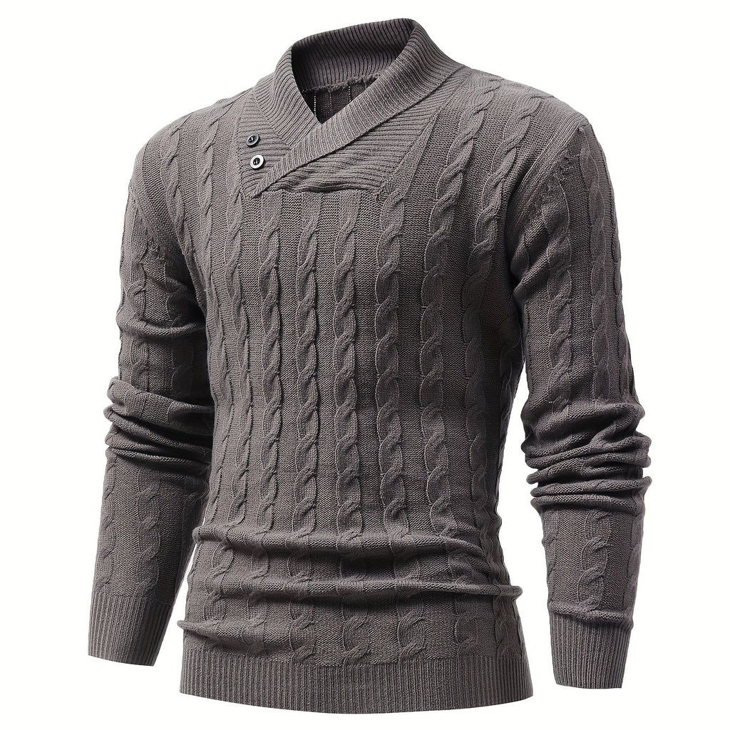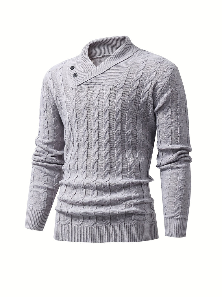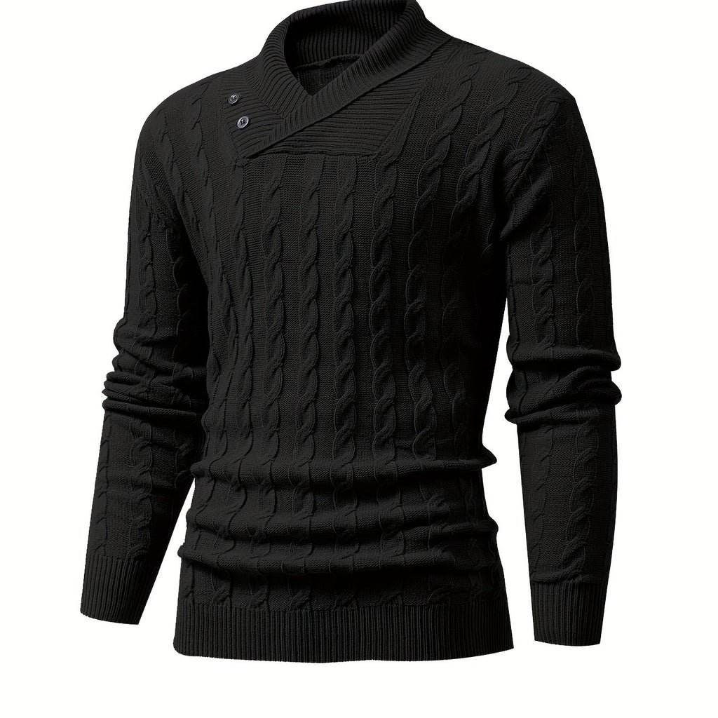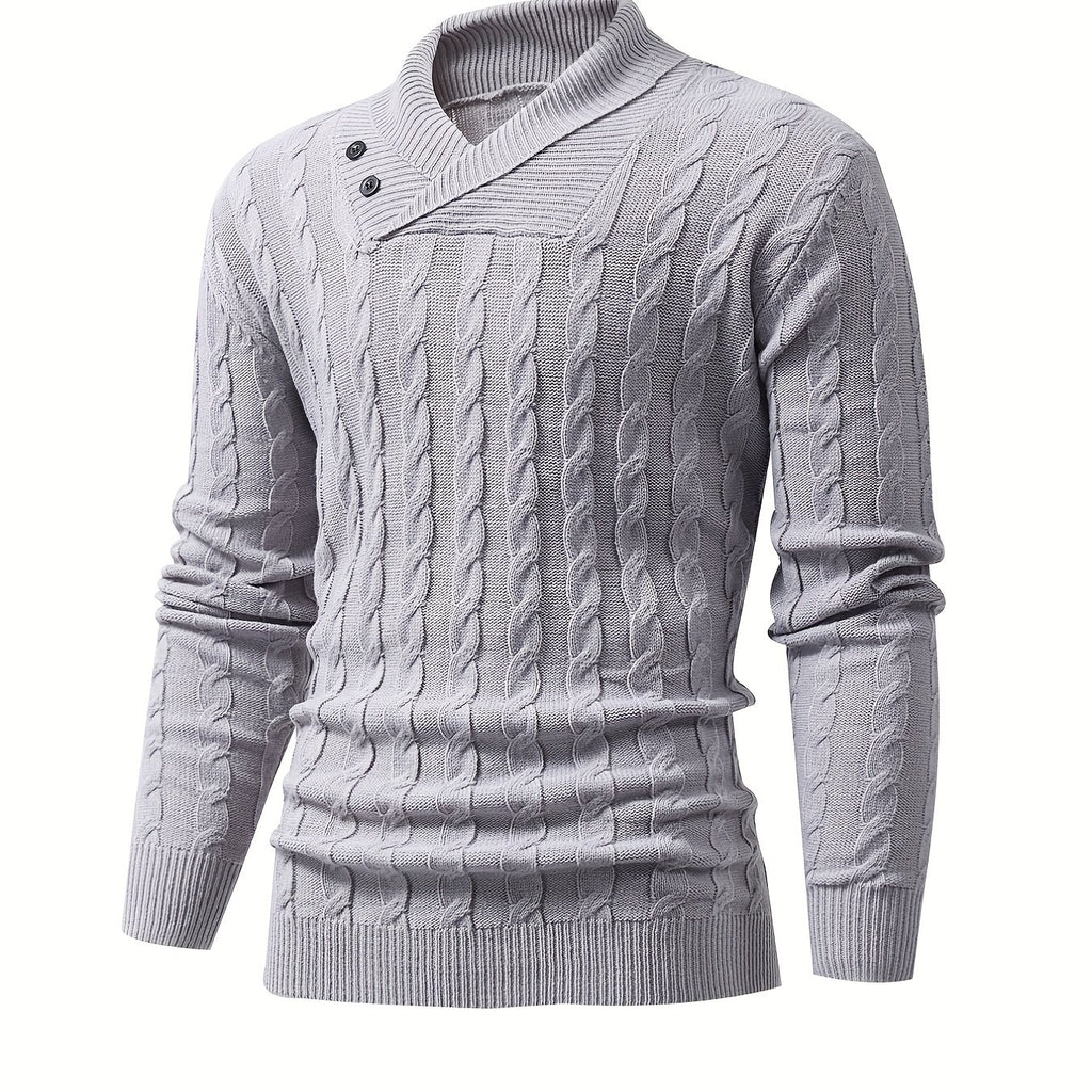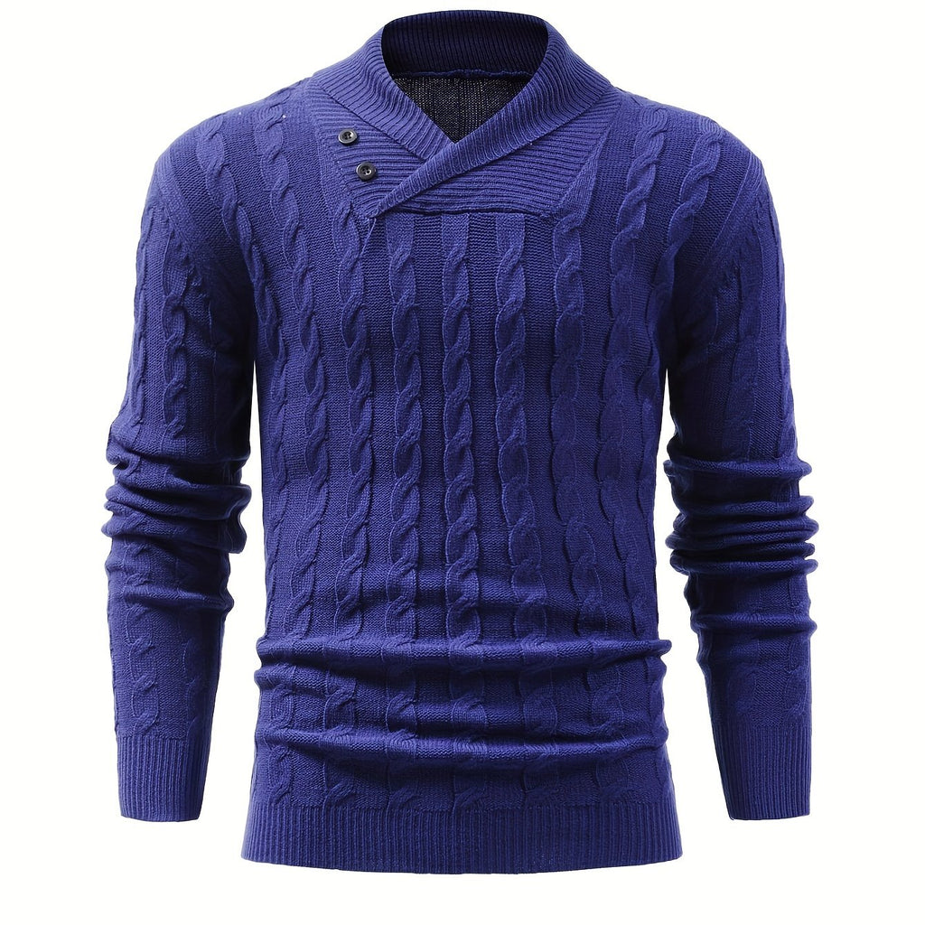 kkboxly All Match Knitted Shawl Collar Sweater, Men's Casual Warm High Stretchy Pullover Sweater For Fall Winter