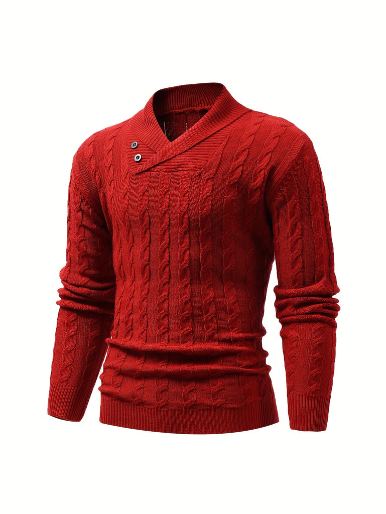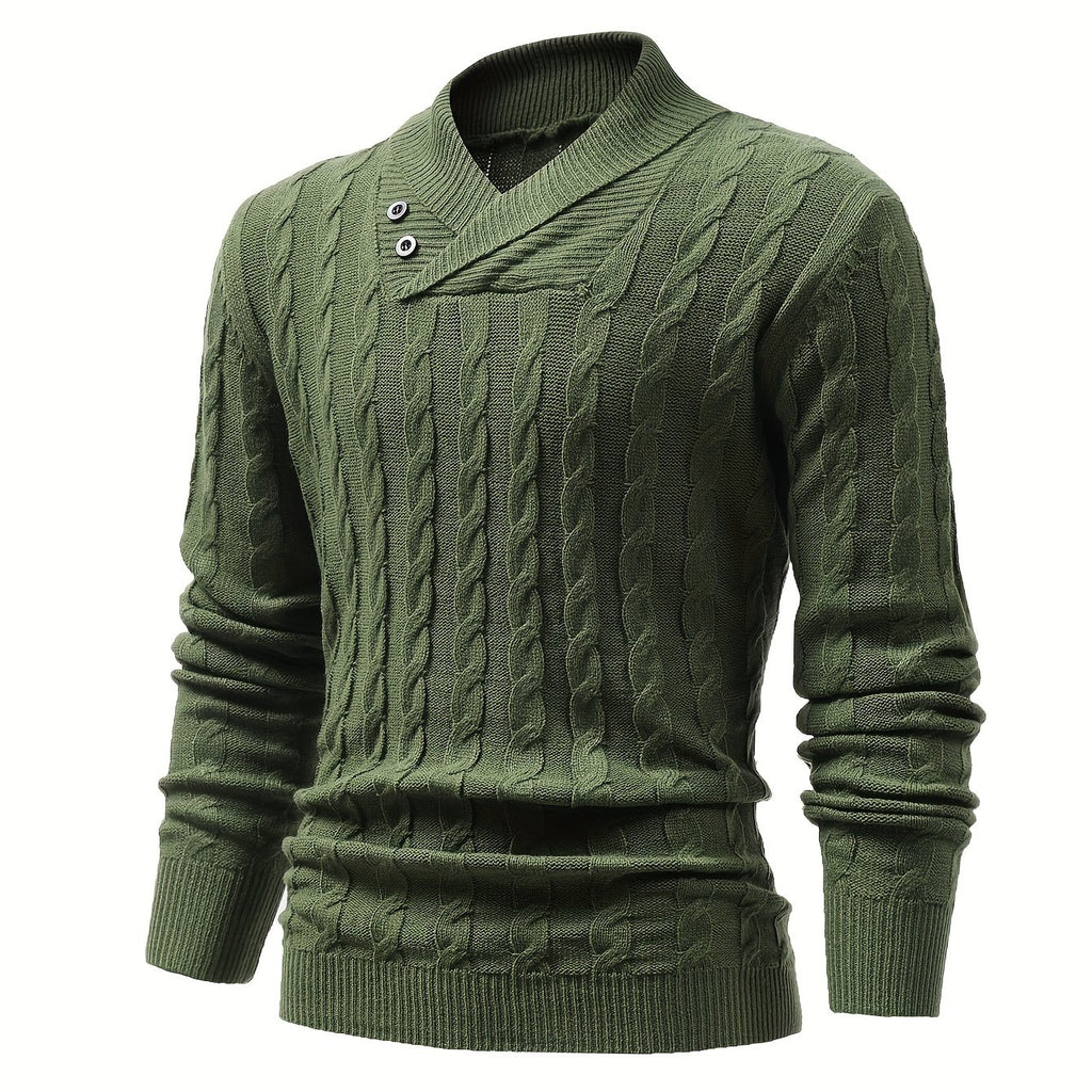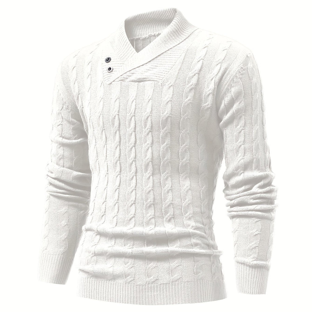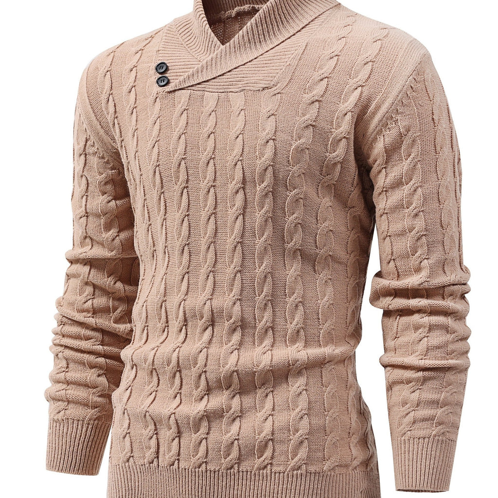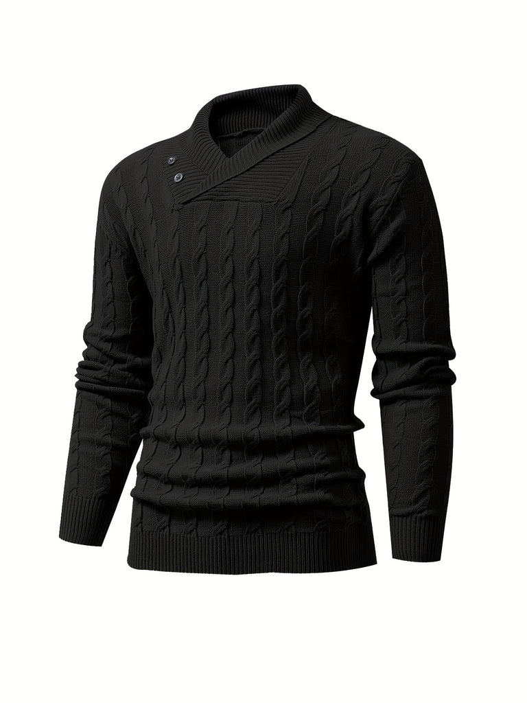 kkboxly All Match Knitted Shawl Collar Sweater, Men's Casual Warm High Stretchy Pullover Sweater For Fall Winter