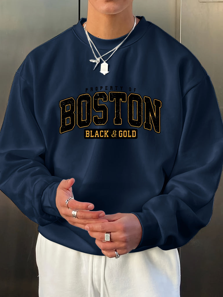 kkboxly BOSTON Print Fashionable Men's Casual Long Sleeve Crew Neck Pullover Sweatshirt,Suitable For Outdoor Sports,For Autumn Spring,Can Be Paired With Hip-hop Necklace,As Gifts