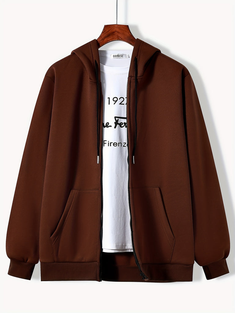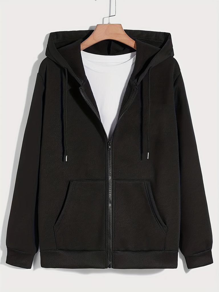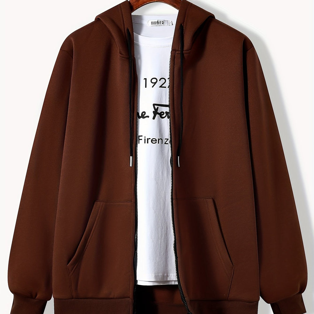 kkboxly Chic Zip Up Hoodie, Men's Casual Stretch Hooded Sweatshirt Jacket, Men's Sportswear
