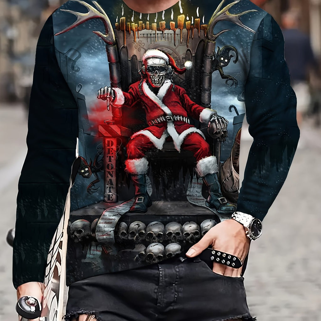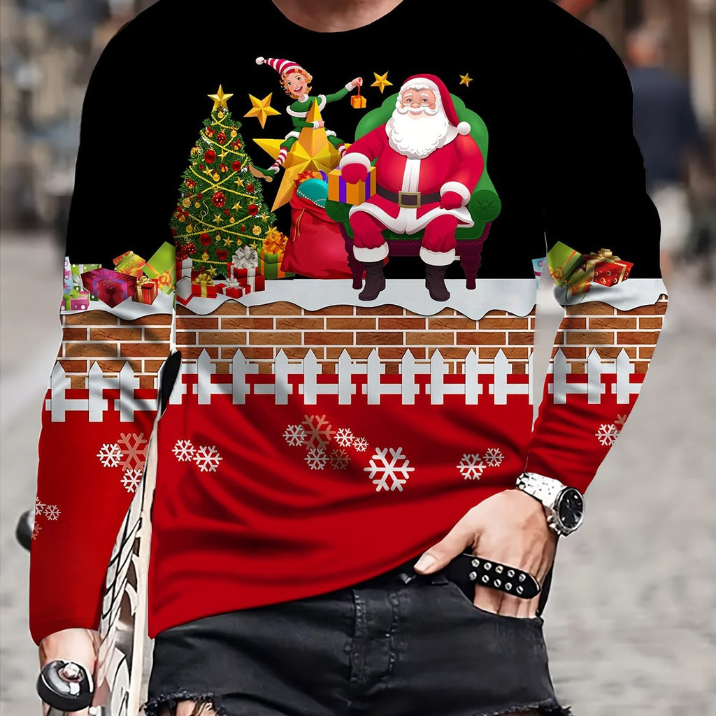 kkboxly Christmas Pattern Print, Men's Graphic Design Crew Neck Active T-shirt, Casual Comfy Tees Tshirts For Summer, Men's Clothing Tops For Daily Gym Workout Running
