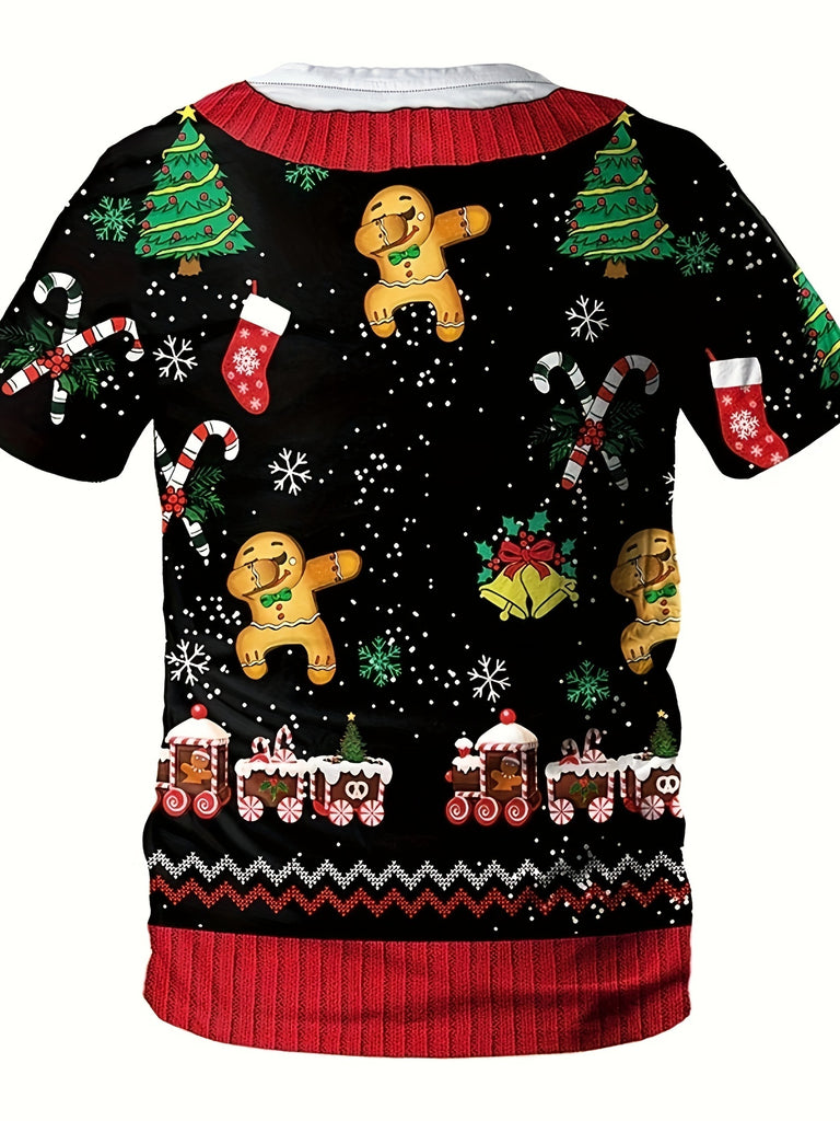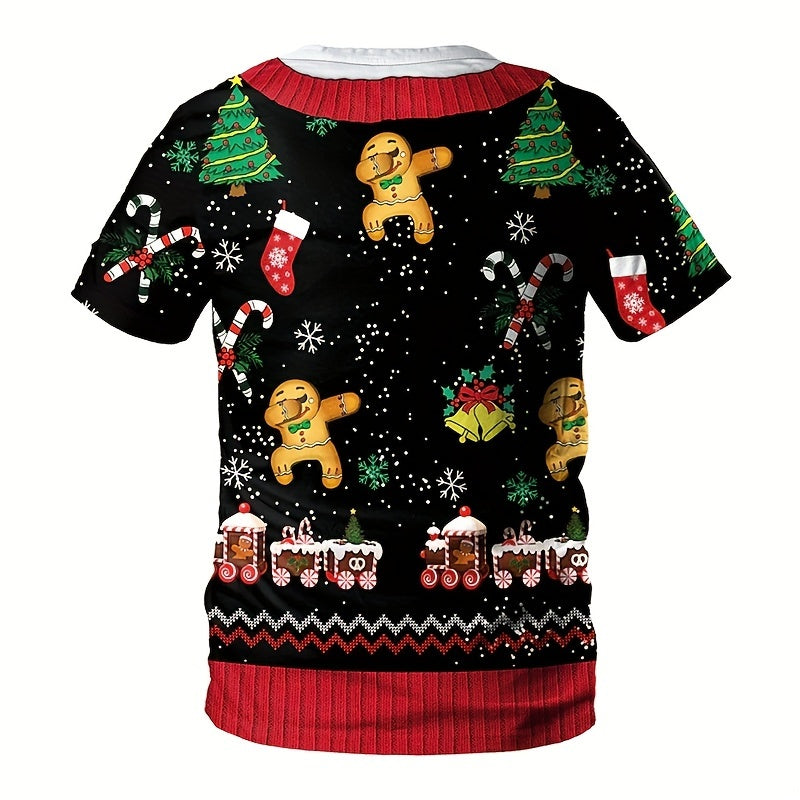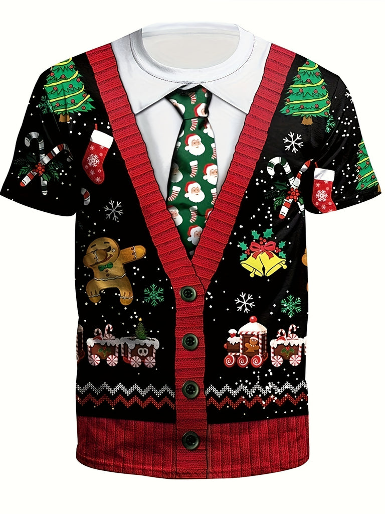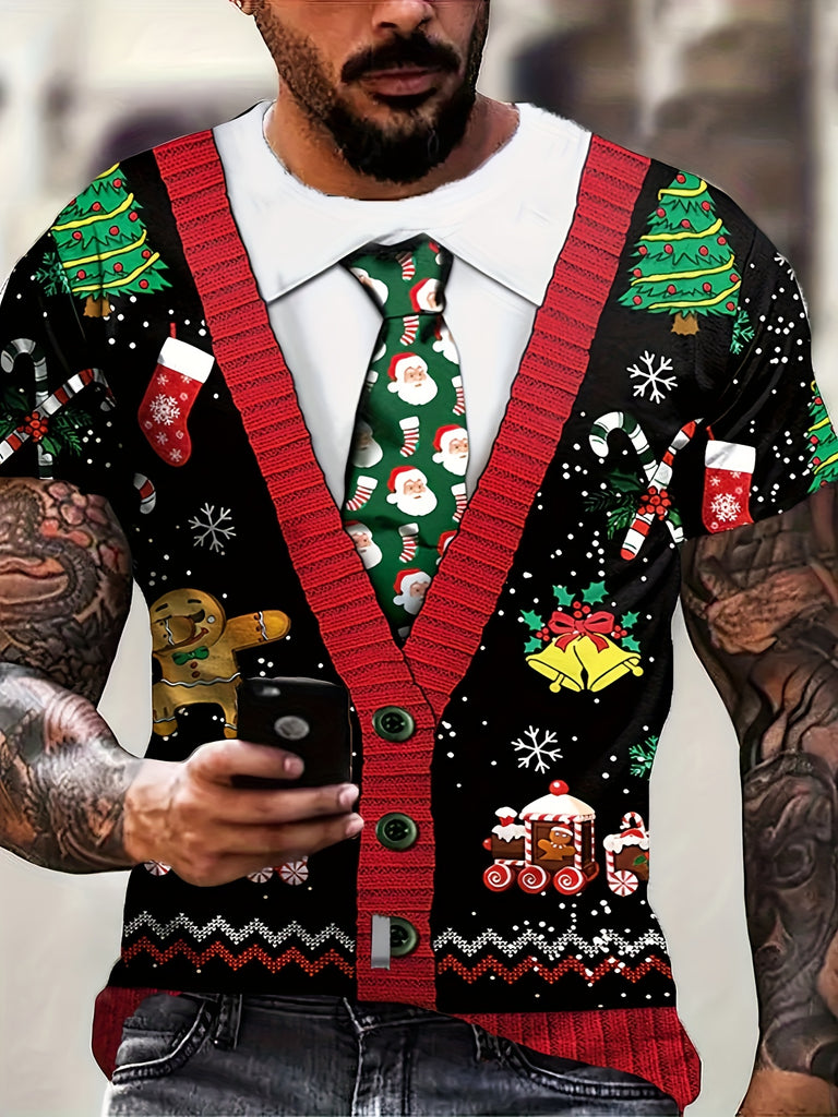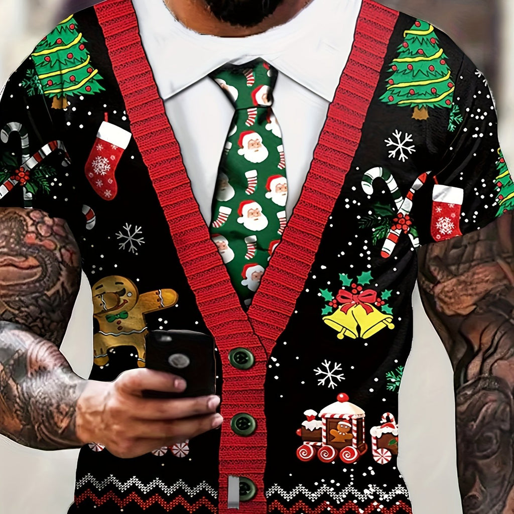 kkboxly Christmas Pattern Print, Men's Graphic Design Crew Neck Active T-shirt, Casual Comfy Tees Tshirts For Summer, Men's Clothing Tops For Daily Gym Workout Running
