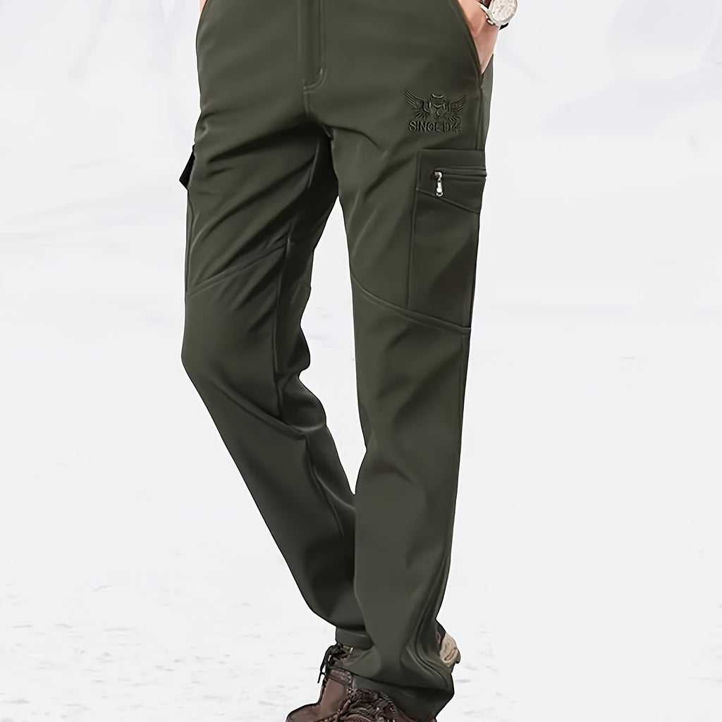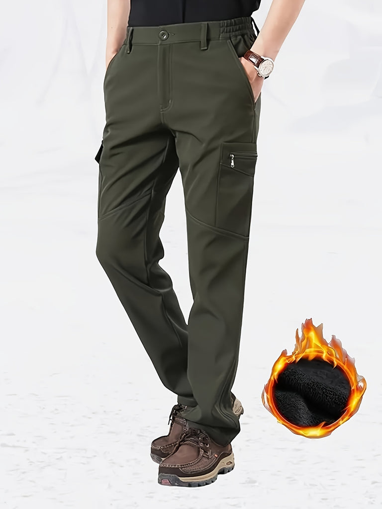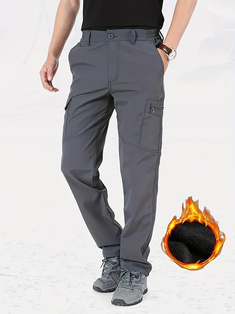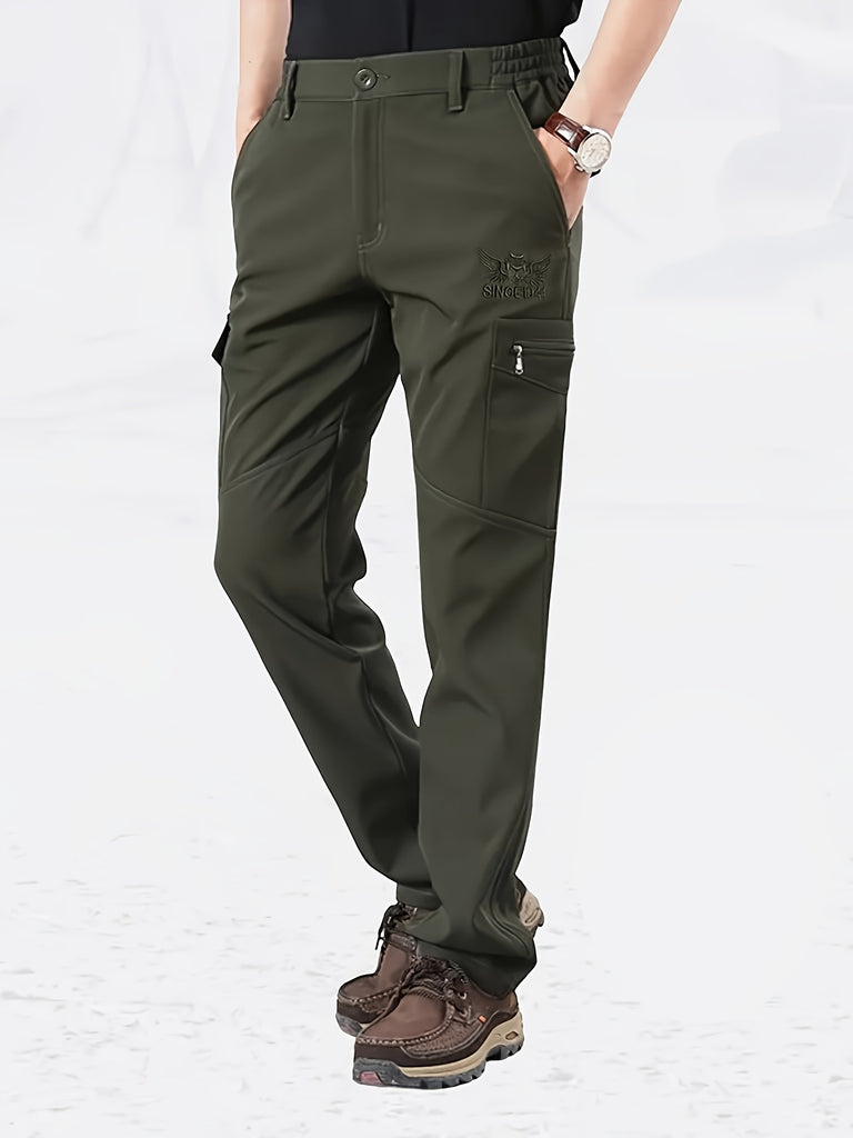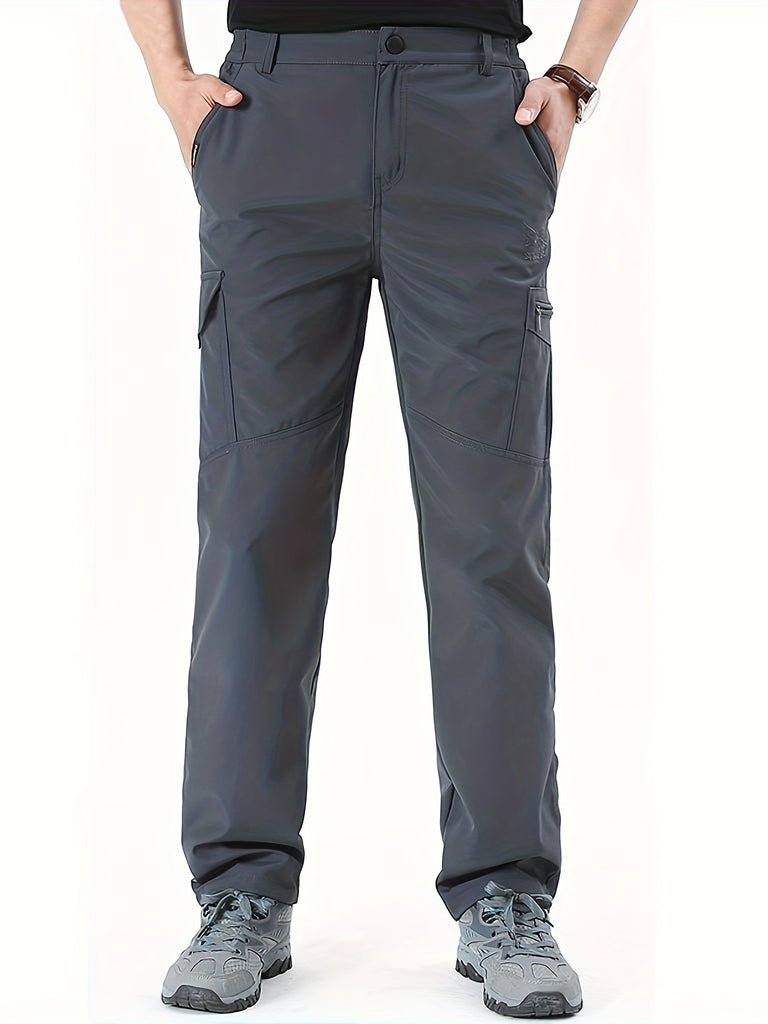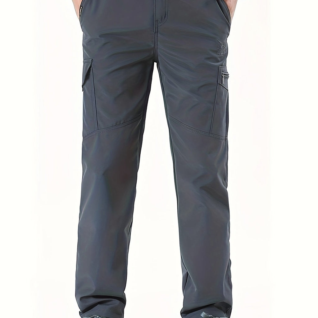 kkboxly Classic Design Cargo Pants, Men's Multi Flap Pocket Trousers, Men's Casual Street Style Solid Color Work Pants Outdoors Streetwear