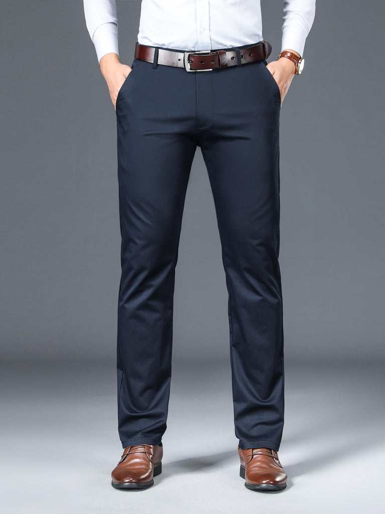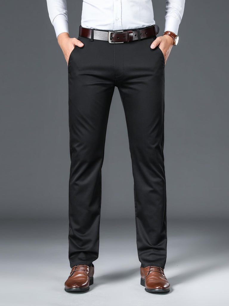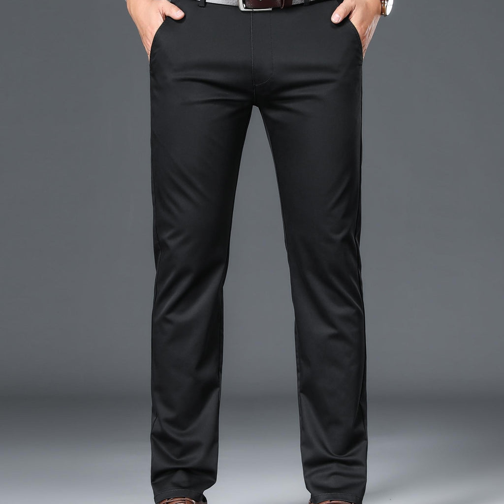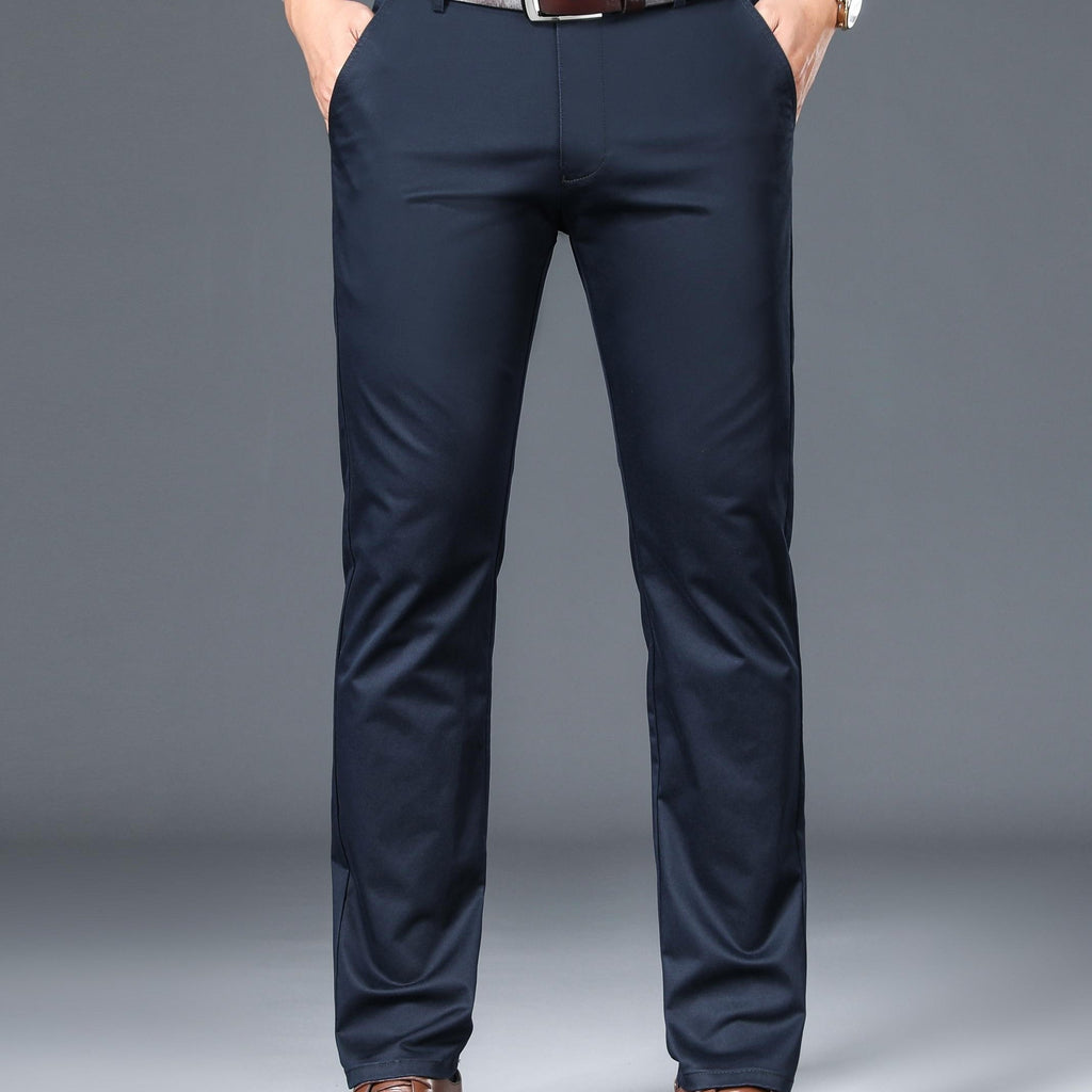 kkboxly Classic Design Dress Pants, Men's Semi-formal Embroidery Stretch Dress Pants For Fall Winter Business