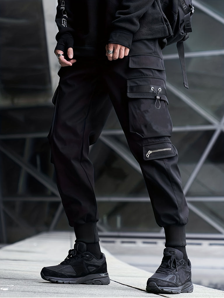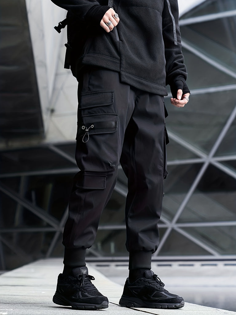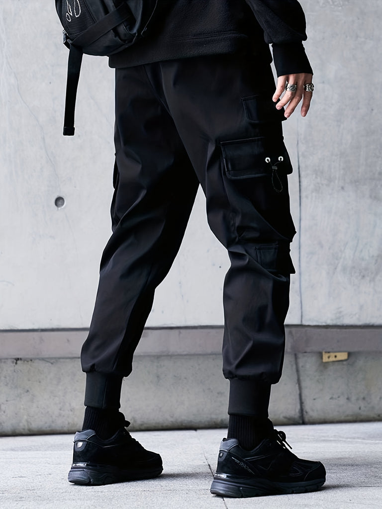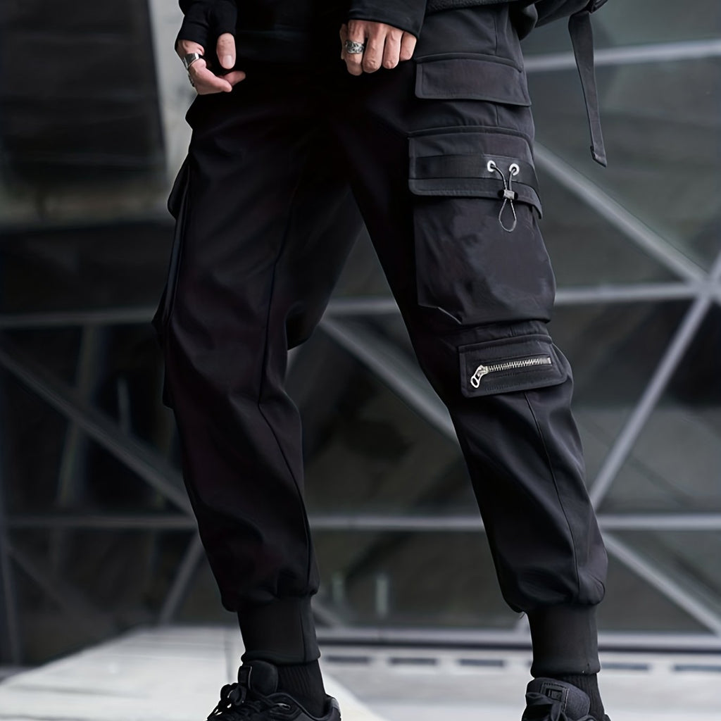 kkboxly Classic Design Multi Flap Pockets Cargo Pants, Men's Casual Techwear Drawstring Cargo Pants Hiphop Joggers For Autumn Summer Outdoor