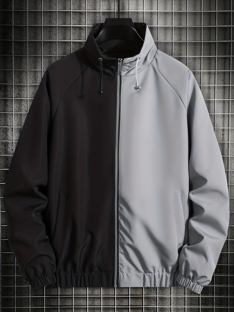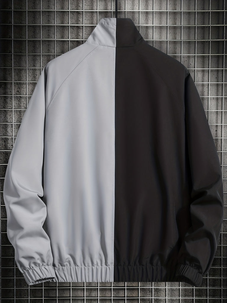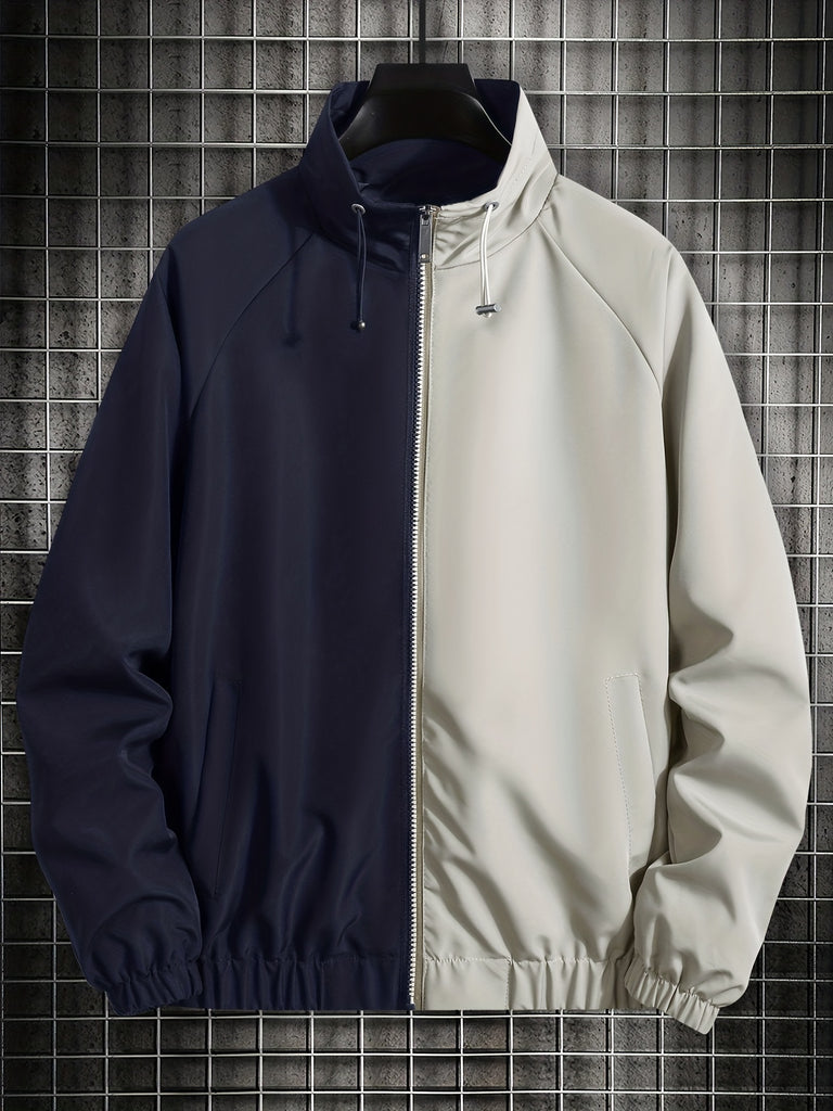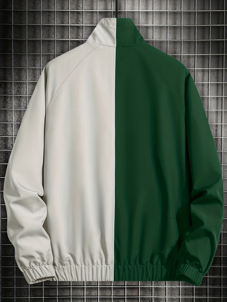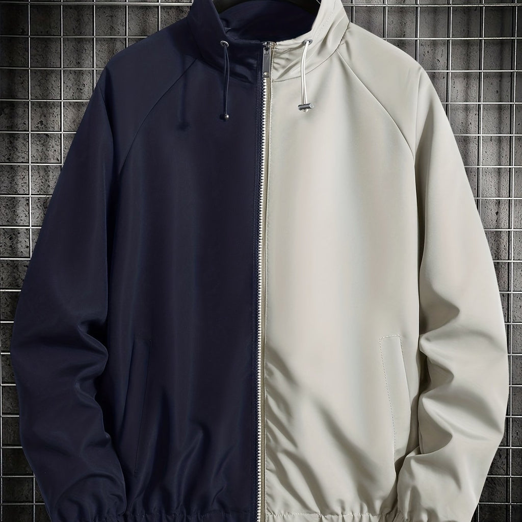kkboxly Color Block Lightweight Jackets By Activity, Men's Casual Stand Collar Zip Up Jacket For Spring Fall Outdoor