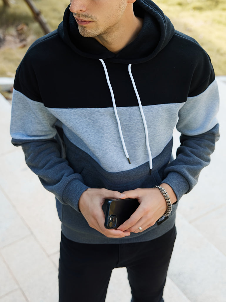kkboxly Cool Color Block Hoodies For Men, Men's Casual Design Hooded Sweatshirt With Kangaroo Pocket Streetwear For Winter Fall, As Gifts