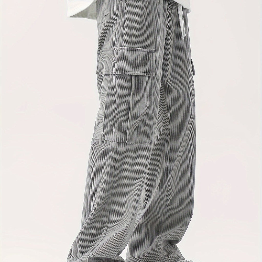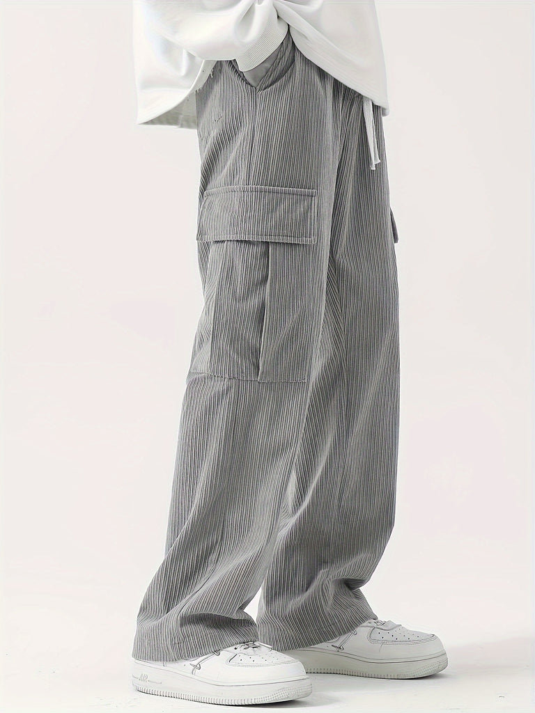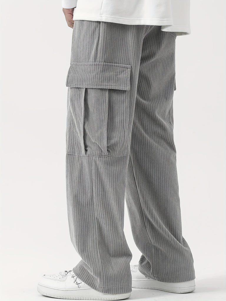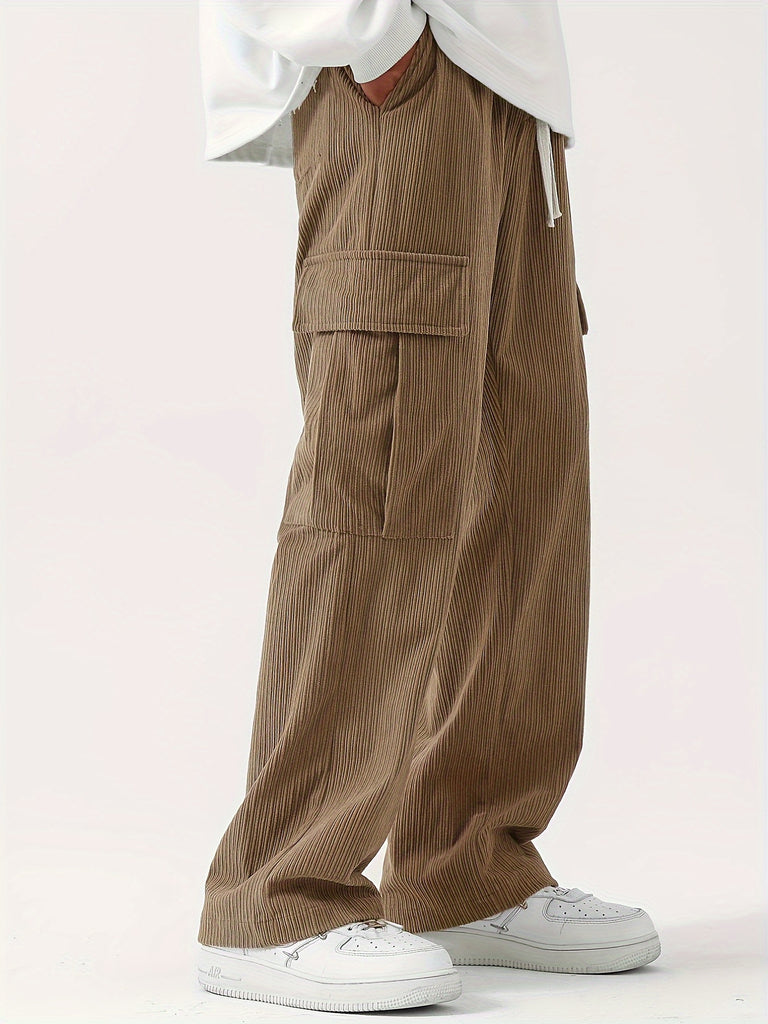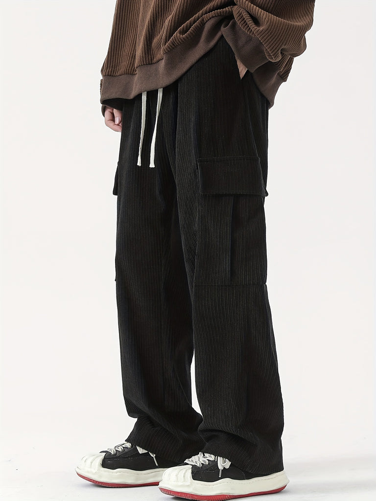 kkboxly Corduroy Multi Flap Pockets Men's Straight Leg Cargo Pants, Loose Baggy Pant Casual Outdoor Pants, Men's Work Pants For Hiking Fishing Angling