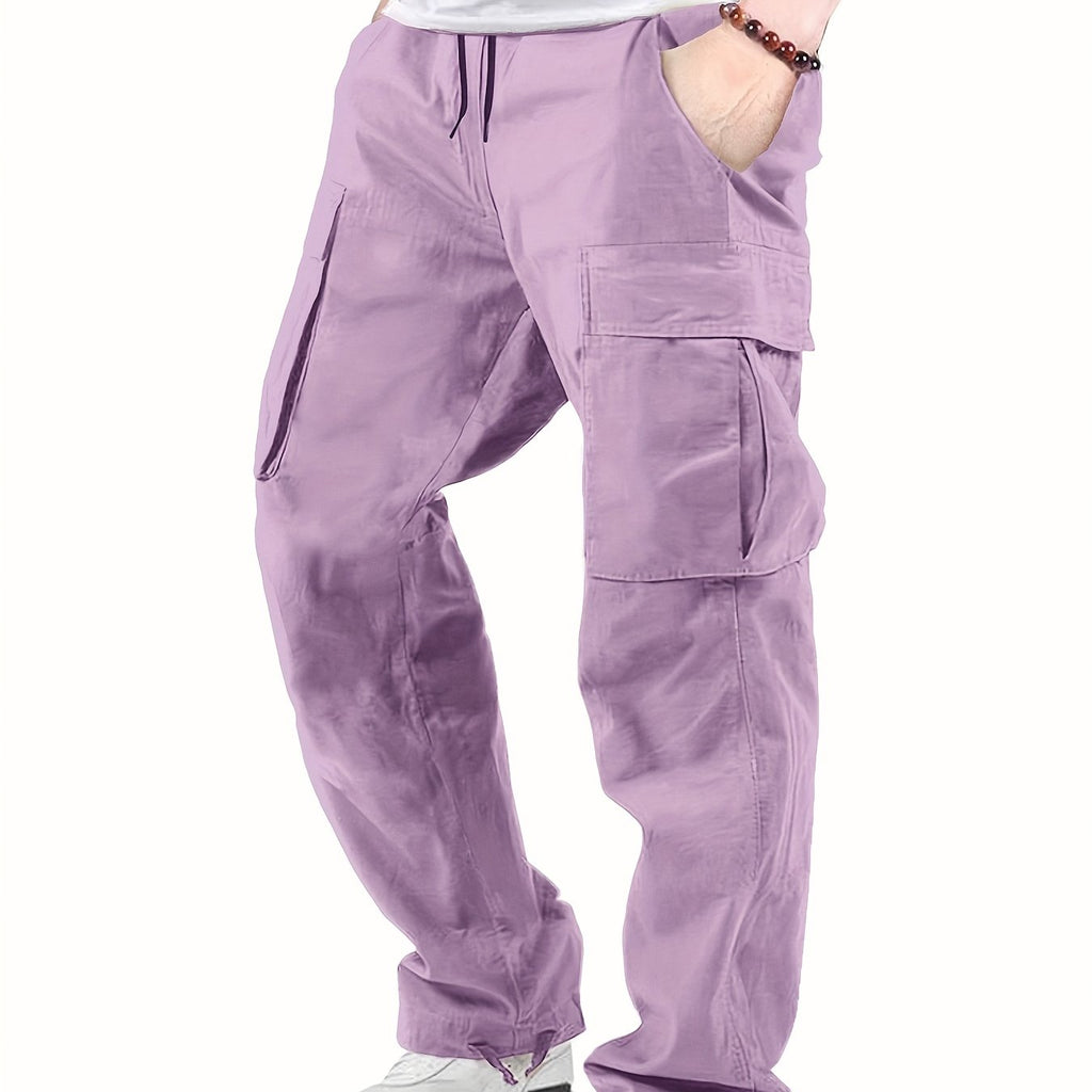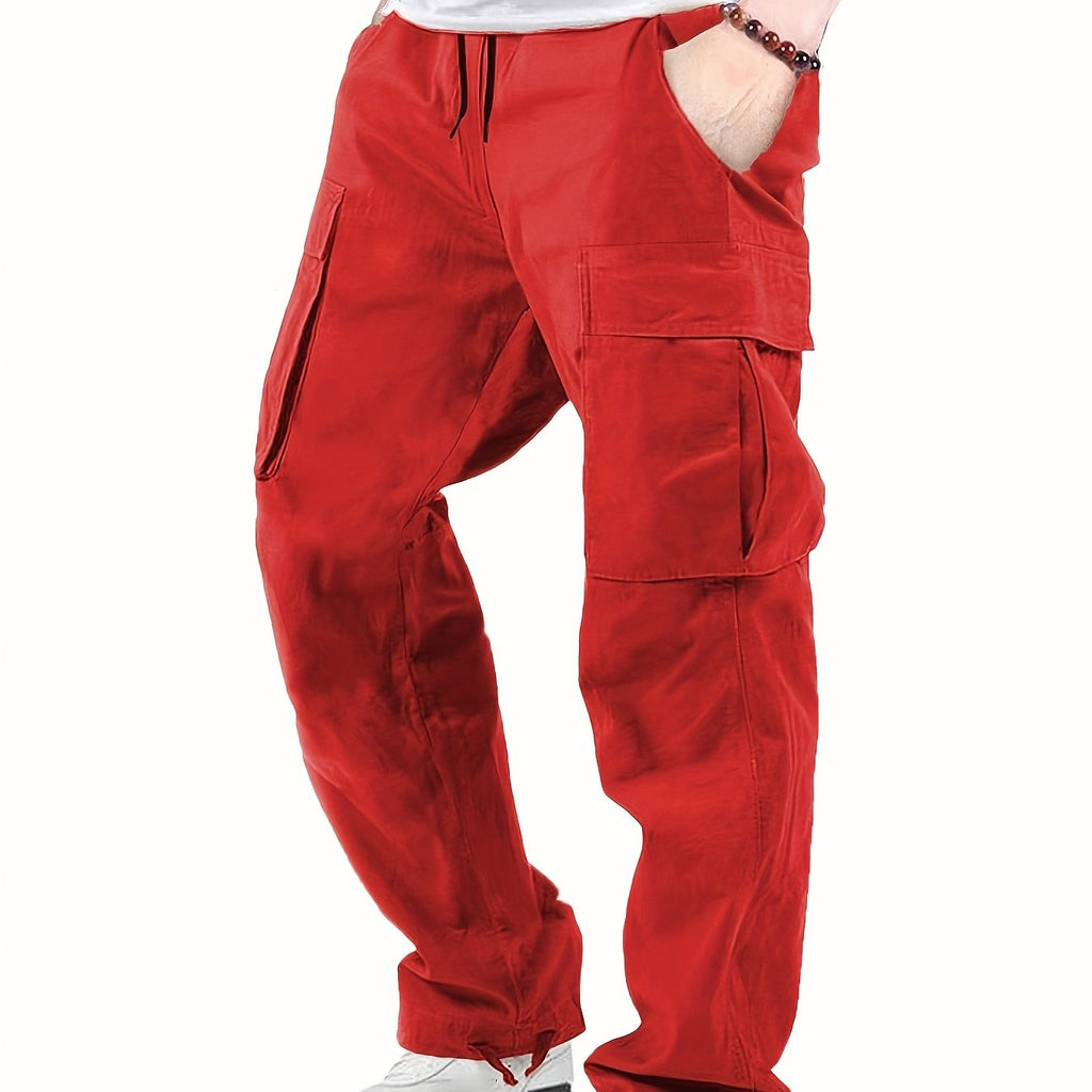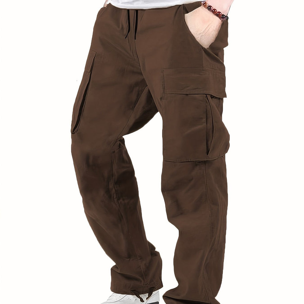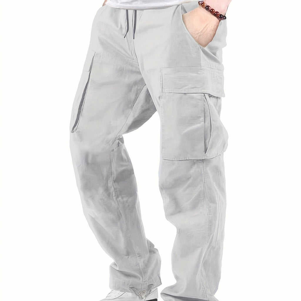 kkboxly Cotton Solid Multi Flap Pockets Men's Straight Leg Cargo Pants, Loose Casual Outdoor Pants, Men's Work Pants For Hiking Fishing Angling