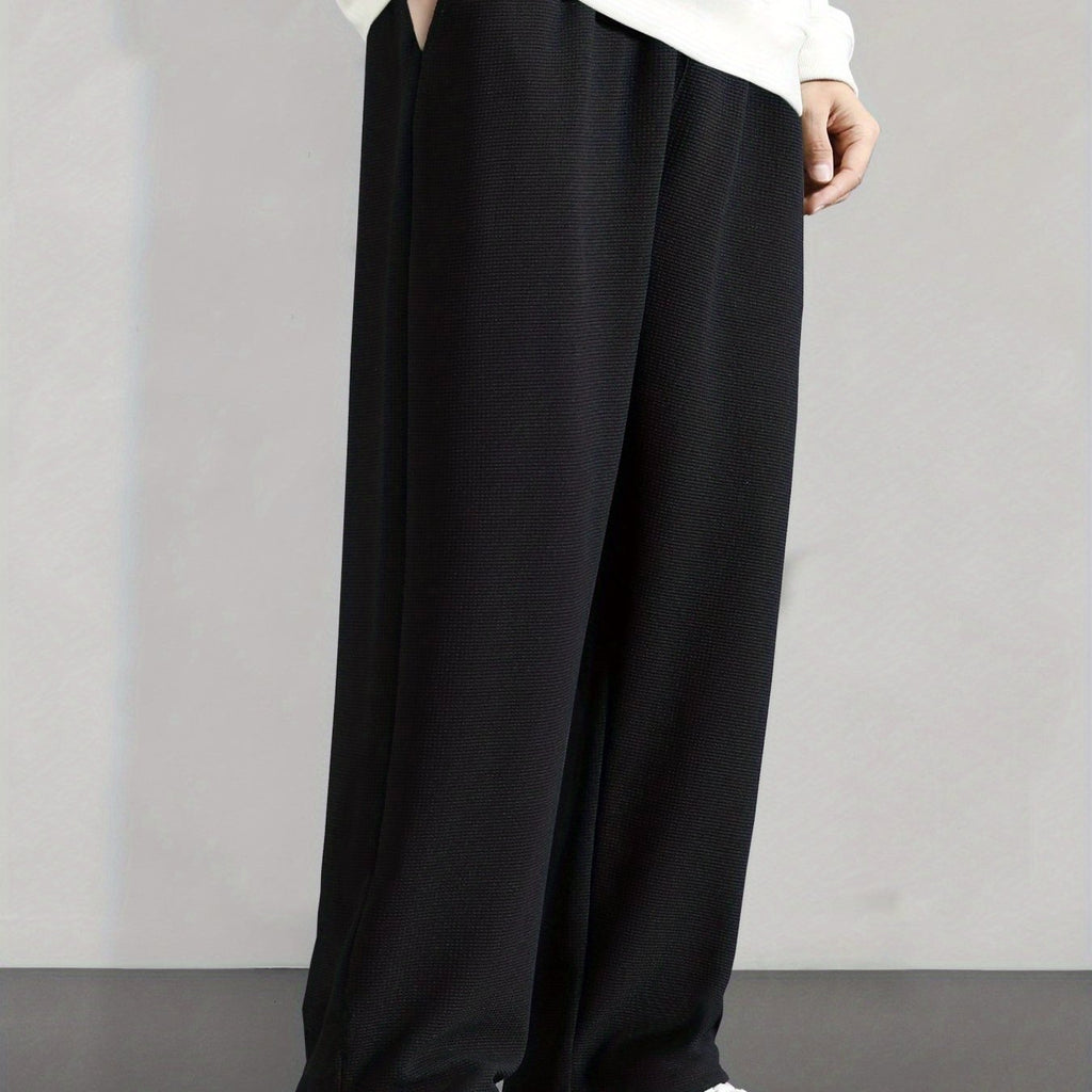kkboxly Drawstring Hem Design, Men's Loose Straight Leg Long Pants