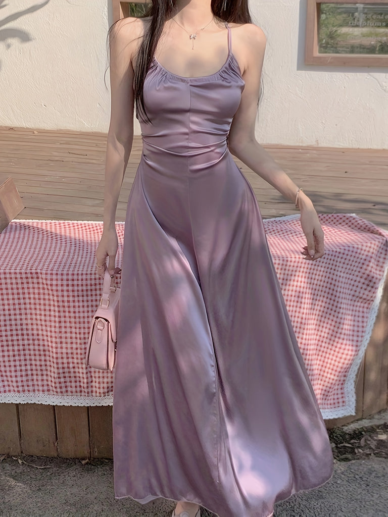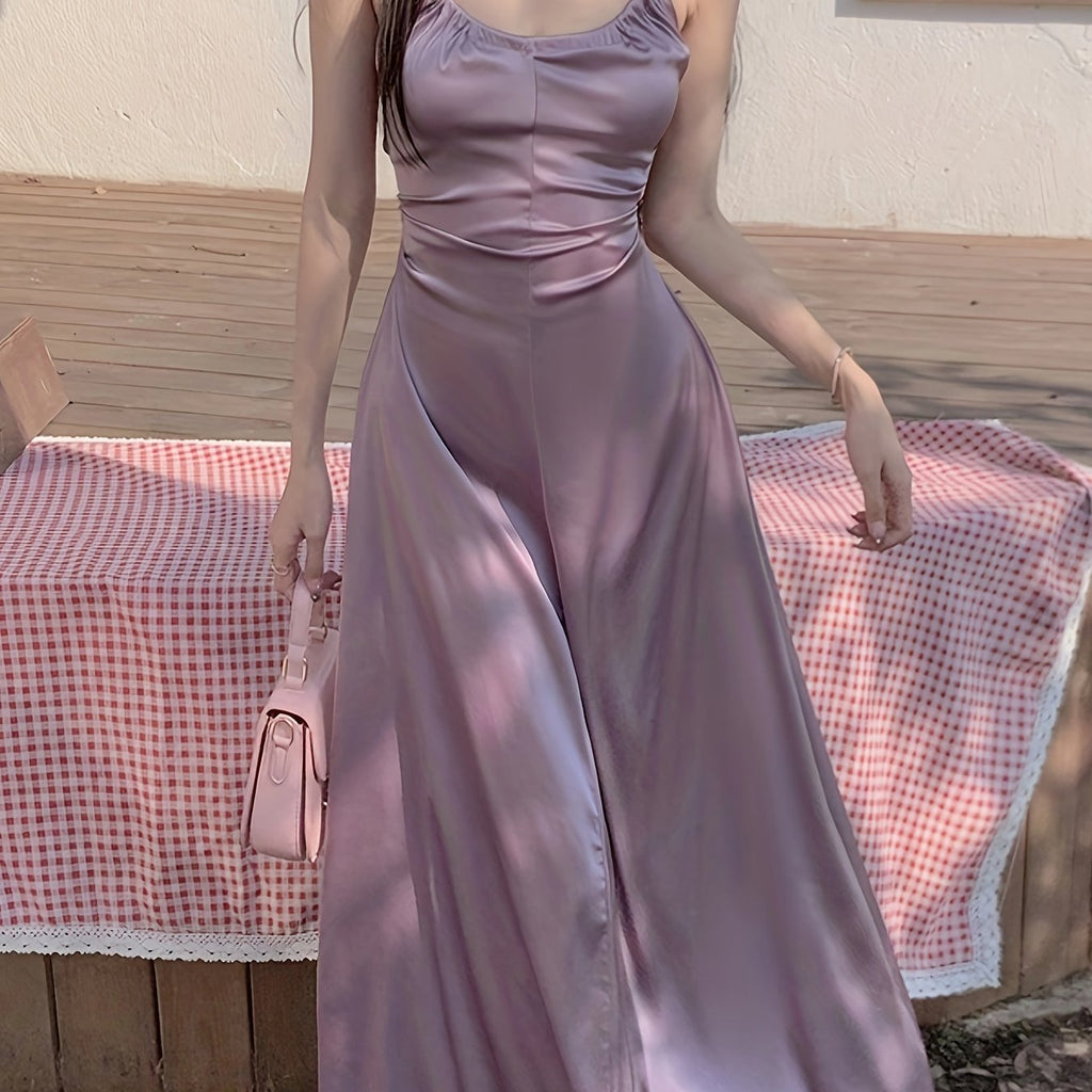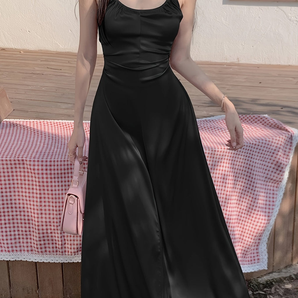 kkboxly Elegant Backless Halter Neck Dress, Sleeveless Solid Color Maxi Length Dress, Women's Clothing