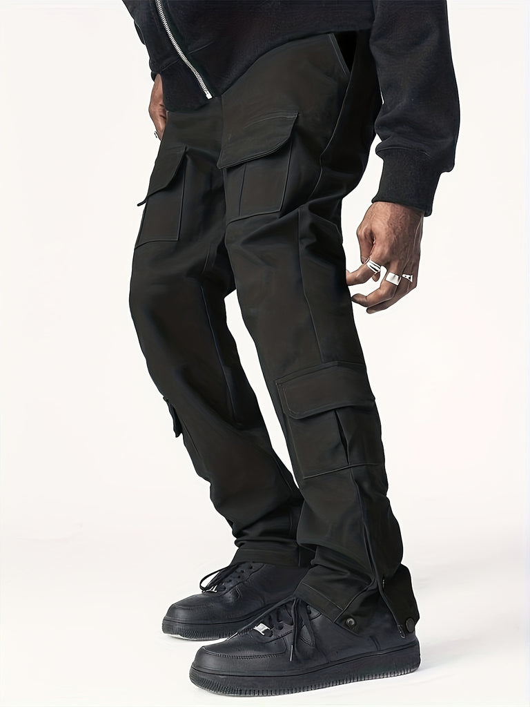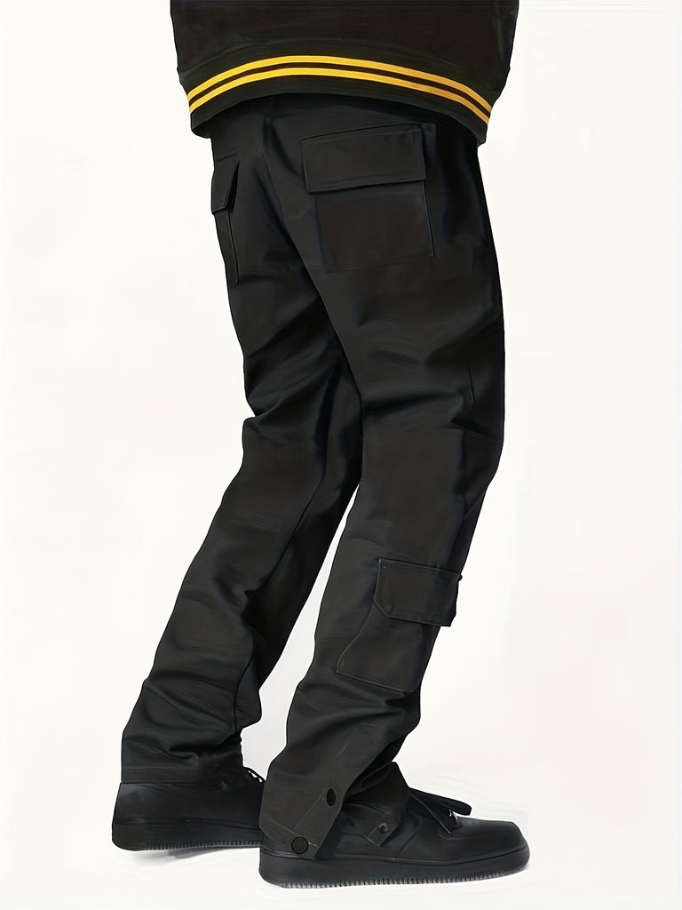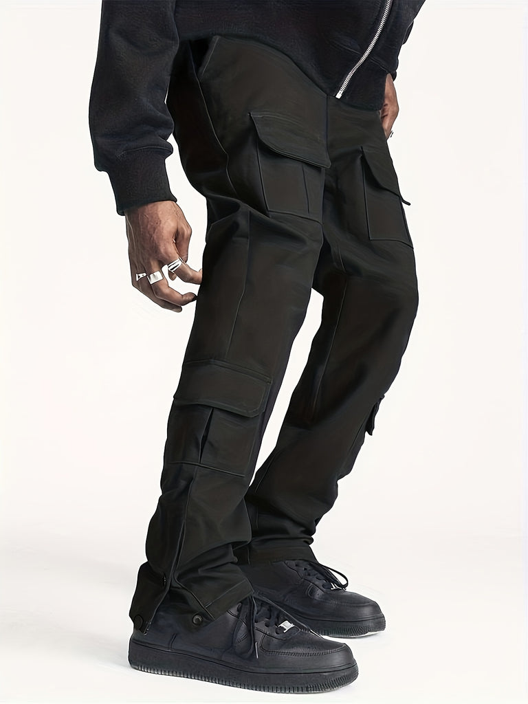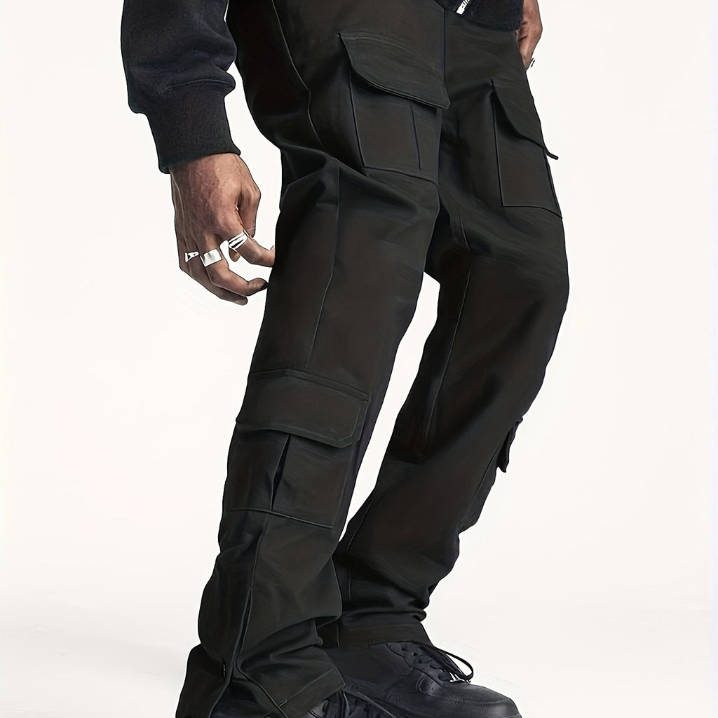 kkboxly Flap Pocket Men's Straight Leg Cargo Pants With Zip Pocket, Loose Casual Outdoor Hip Pop Street Pants, Mens Work Pants
