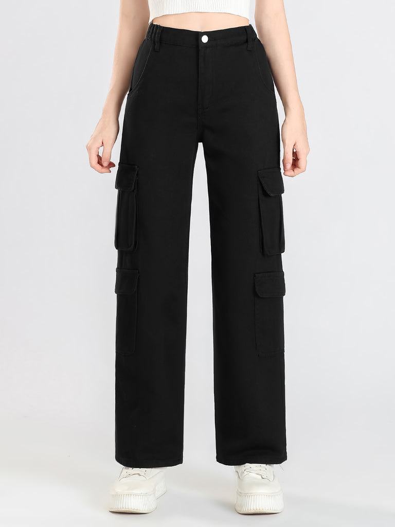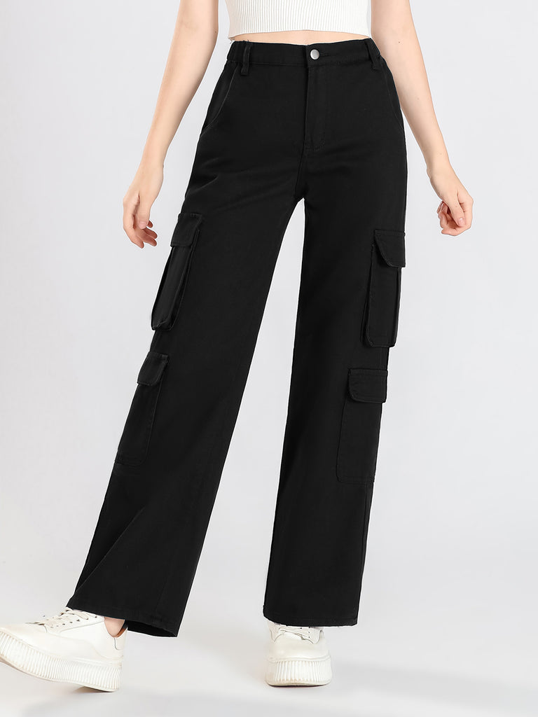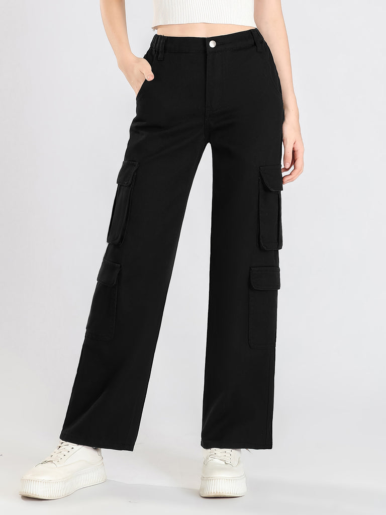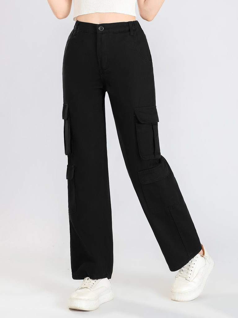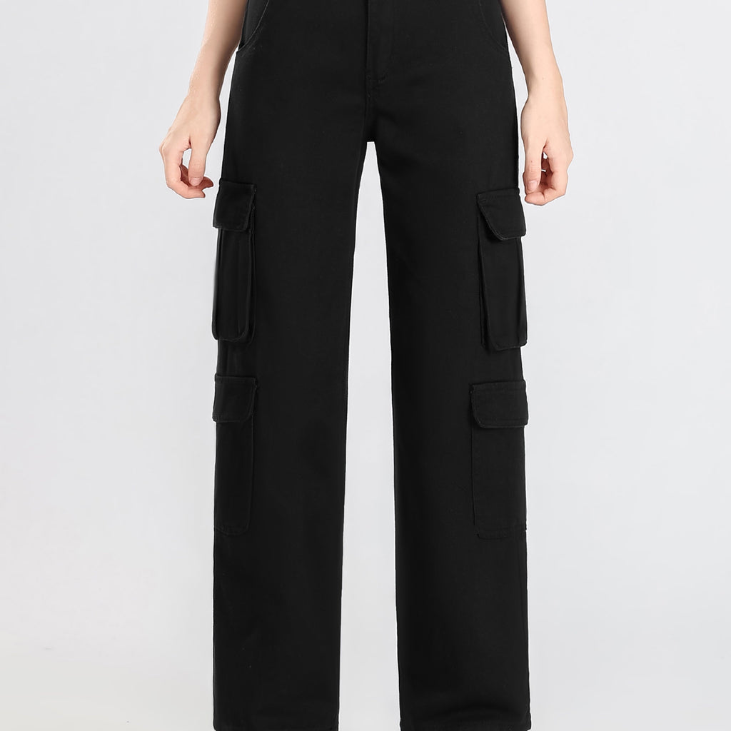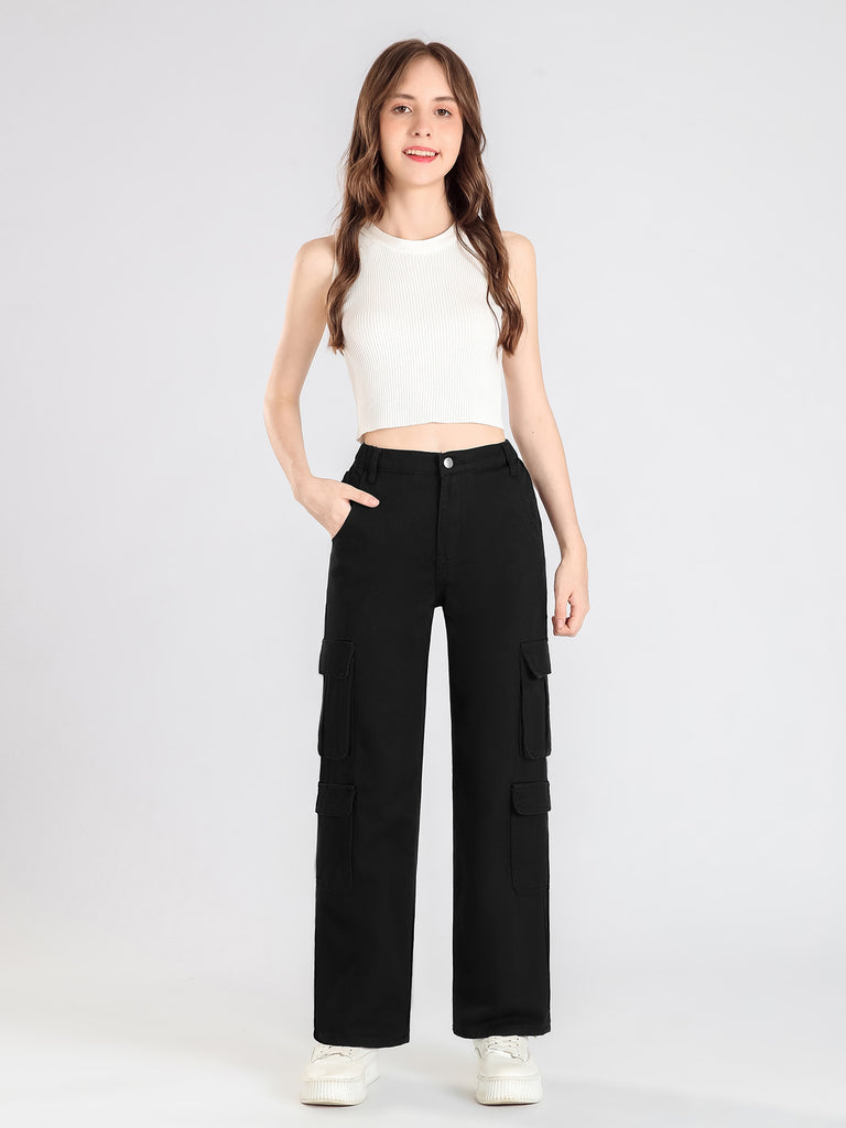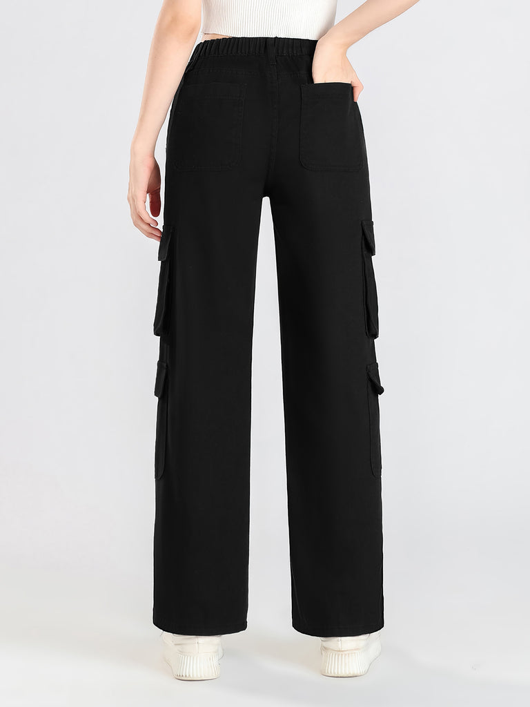 kkboxly Girls Trendy Functional Pockets High Waist Cargo Pants, Streetwear Trousers For Youth, K-pop Clothing