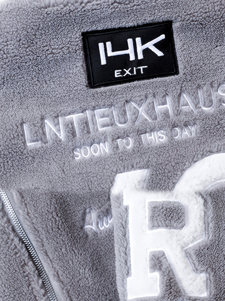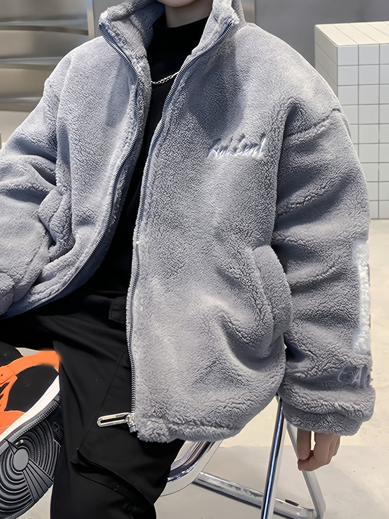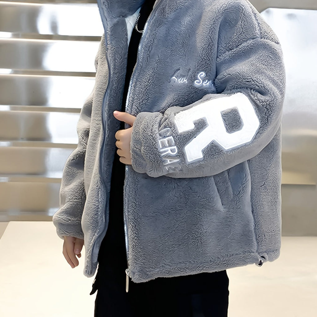 kkboxly kkboxly Boys Fleece Thick Coat Letter Print Full Zip Jacket For Autumn And Winter, Everyday