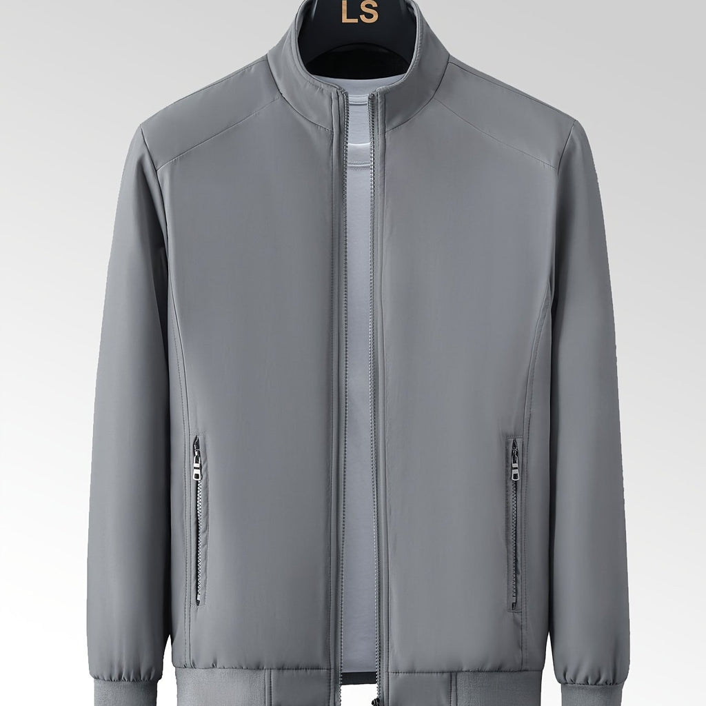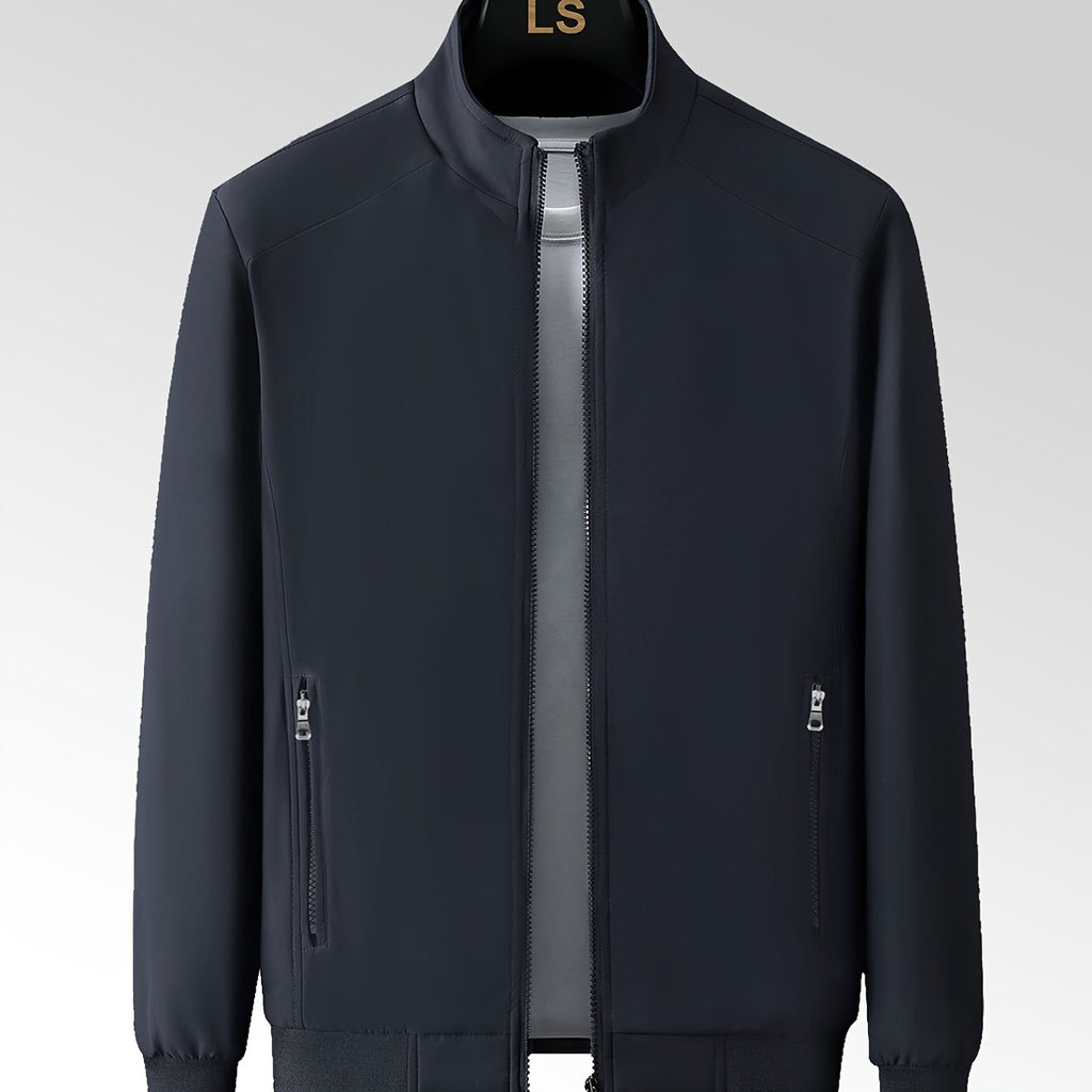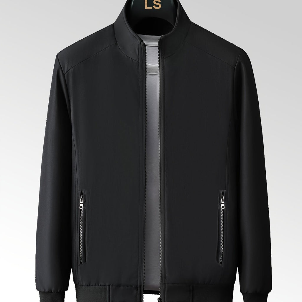 kkboxly Lightweight Classic Design Windbreaker Jacket, Men's Casual Stand Collar Zip Up Jacket Coat For Spring Fall Outdoor Hiking Climbing Camping Cycling