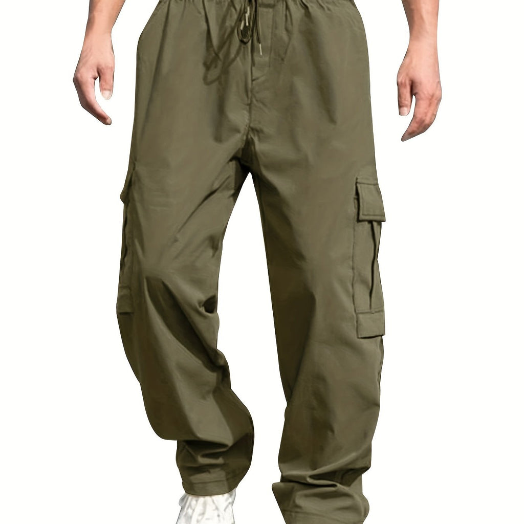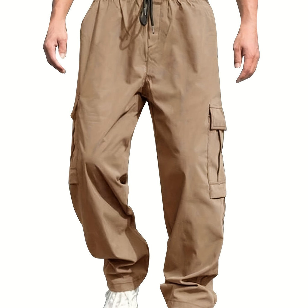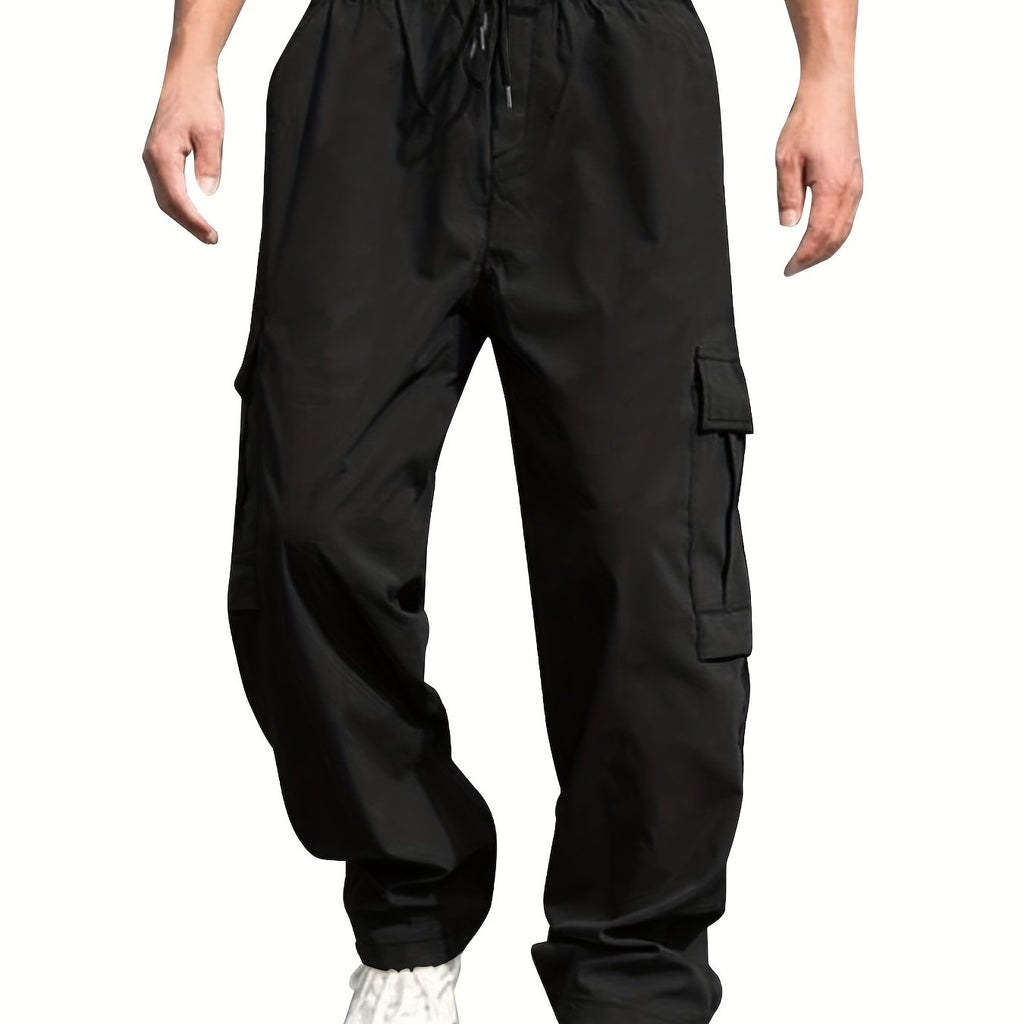 kkboxly Loose Fit Multi Pocket Joggers For Spring Summer, Men's Street Style Waist Drawstring Thin Casual Pants For Spring Summer Fitness Outdoor Activities