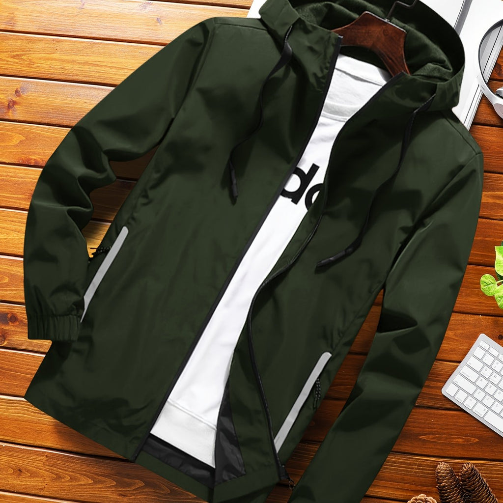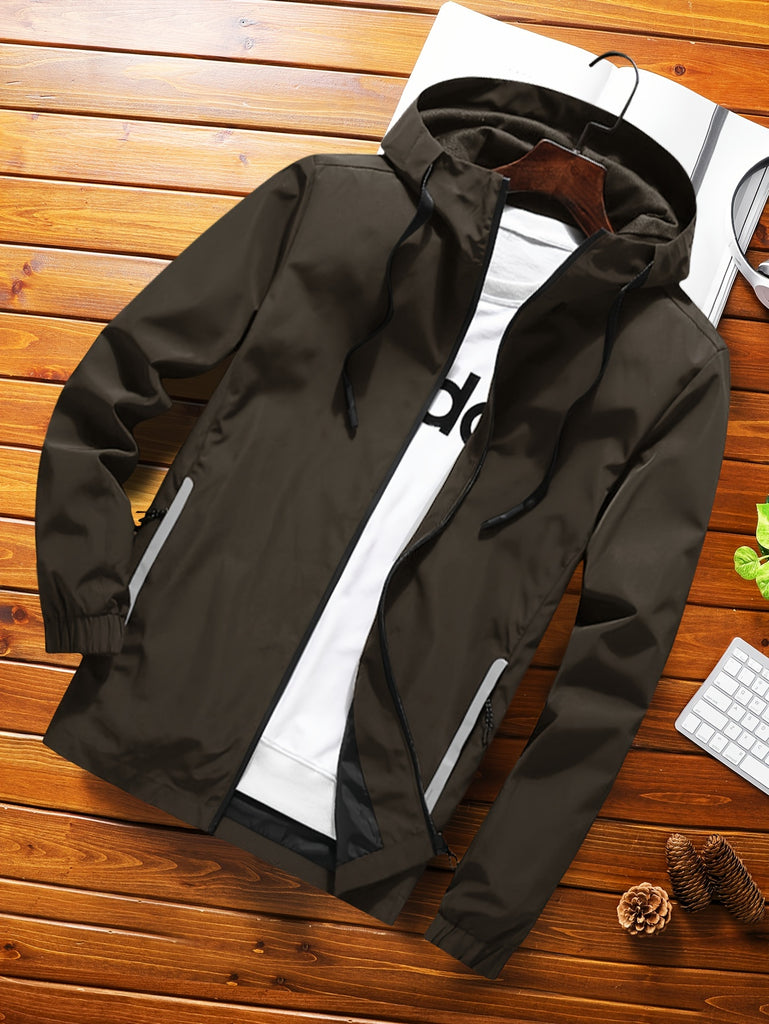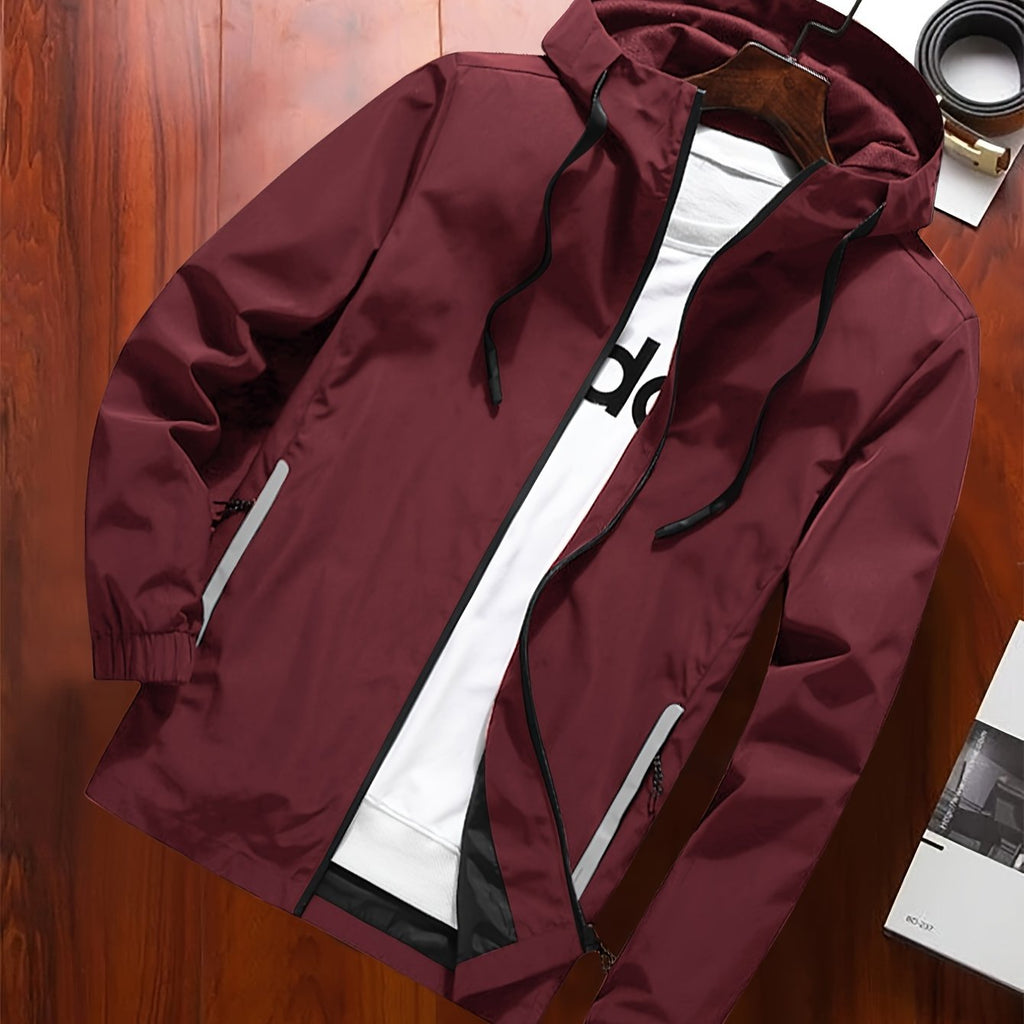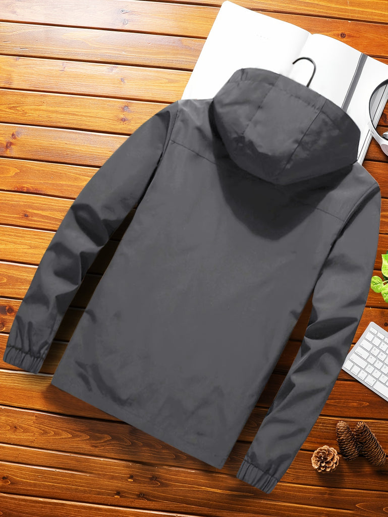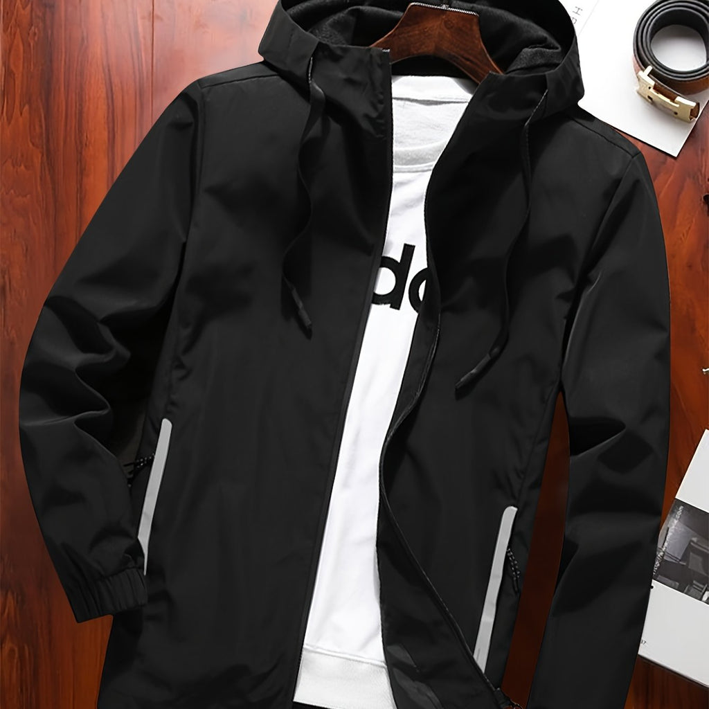 kkboxly Men's Casual Hooded Windbreaker Jacket, Chic Zip Up Jacket For Outdoor Activities