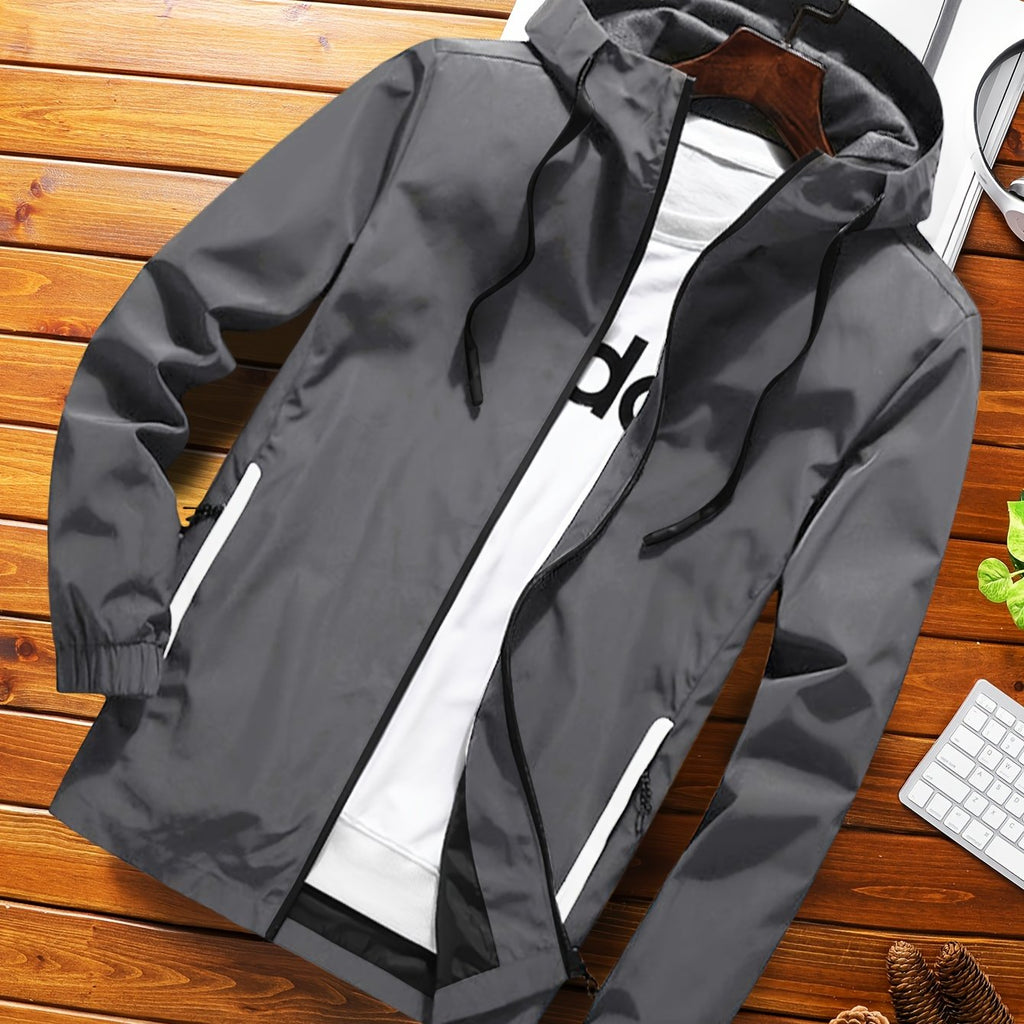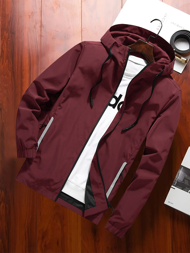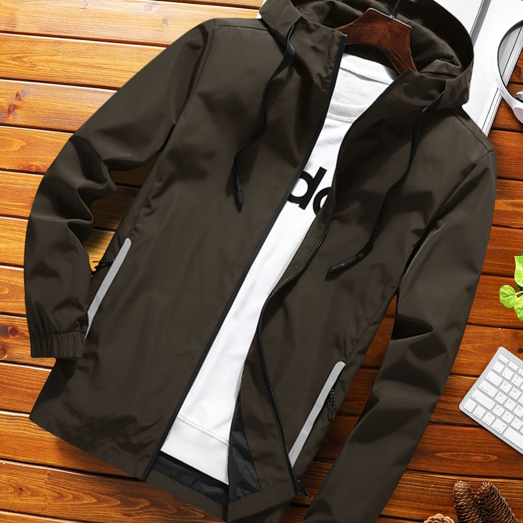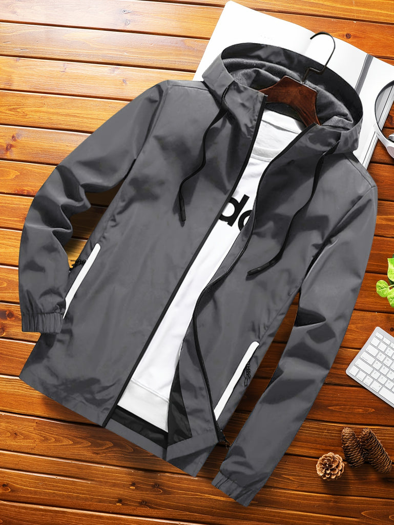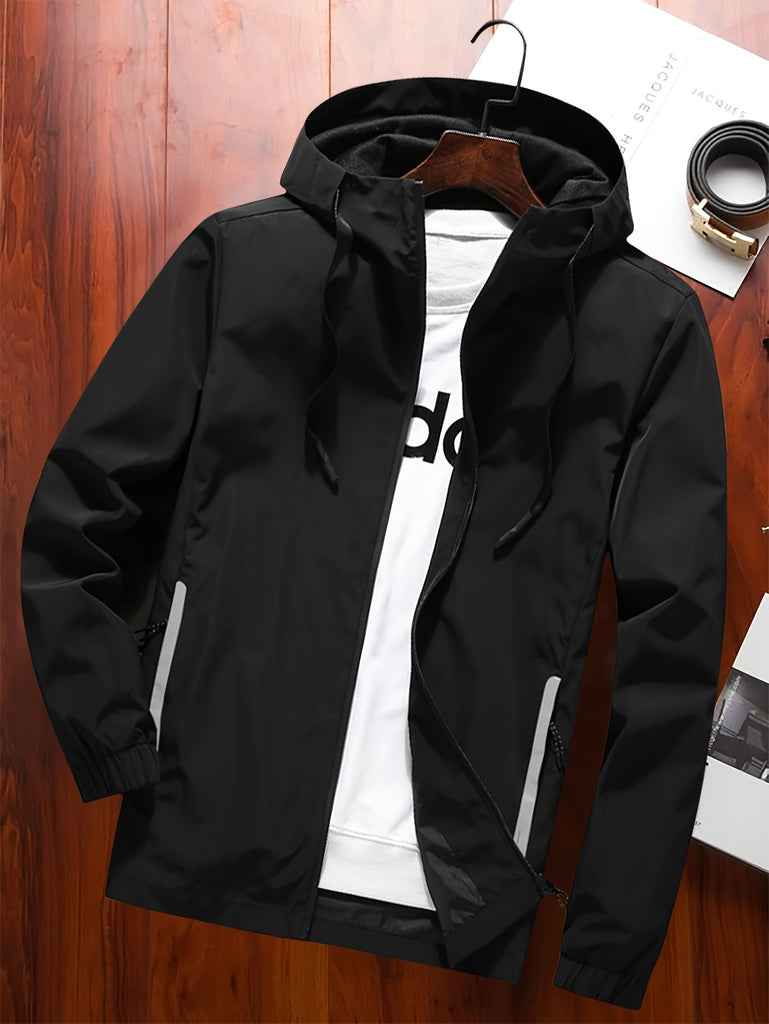 kkboxly Men's Casual Hooded Windbreaker Jacket, Chic Zip Up Jacket For Outdoor Activities