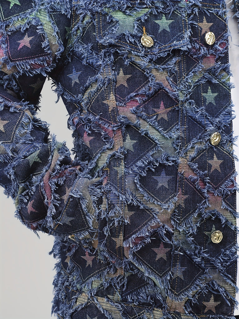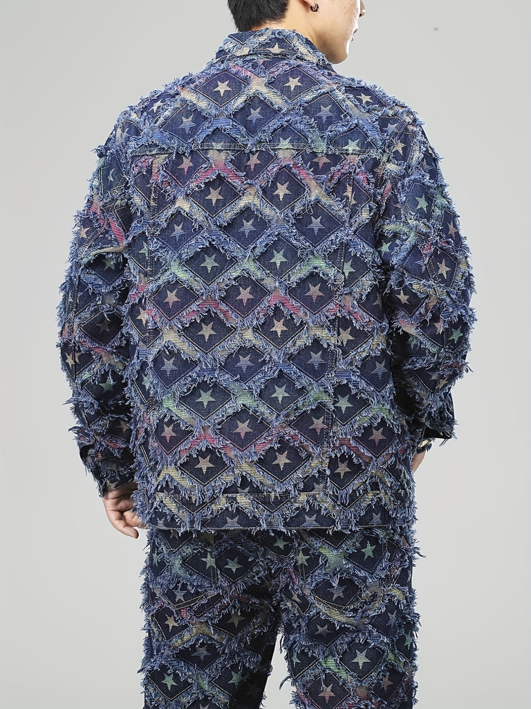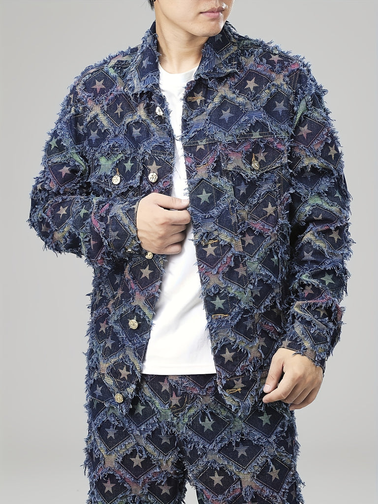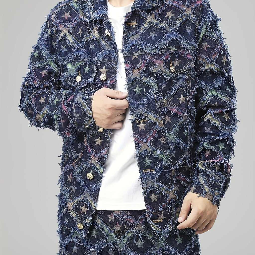kkboxly Men's Casual Jacquard Weave Denim Jacket, Street Style Chic Button Up Jacket