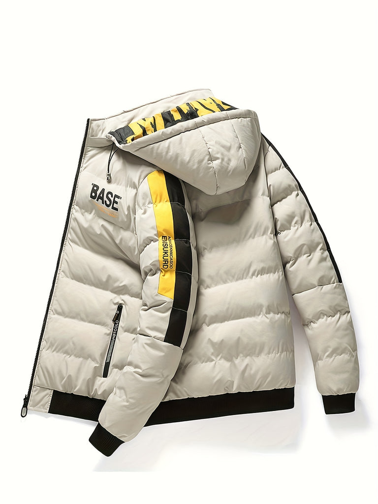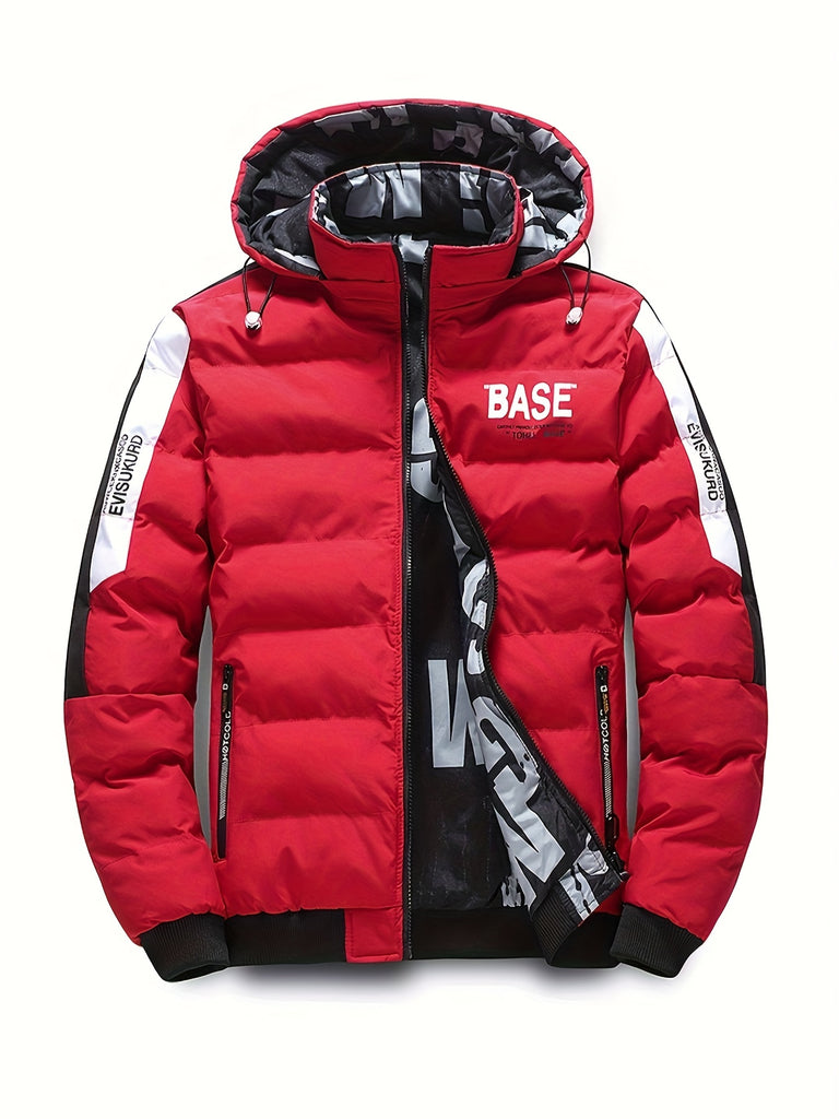 kkboxly Men's Casual Printed Reversible Padded Coat, Chic Warm Hooded Jacket With Zipper Pockets For Fall Winter