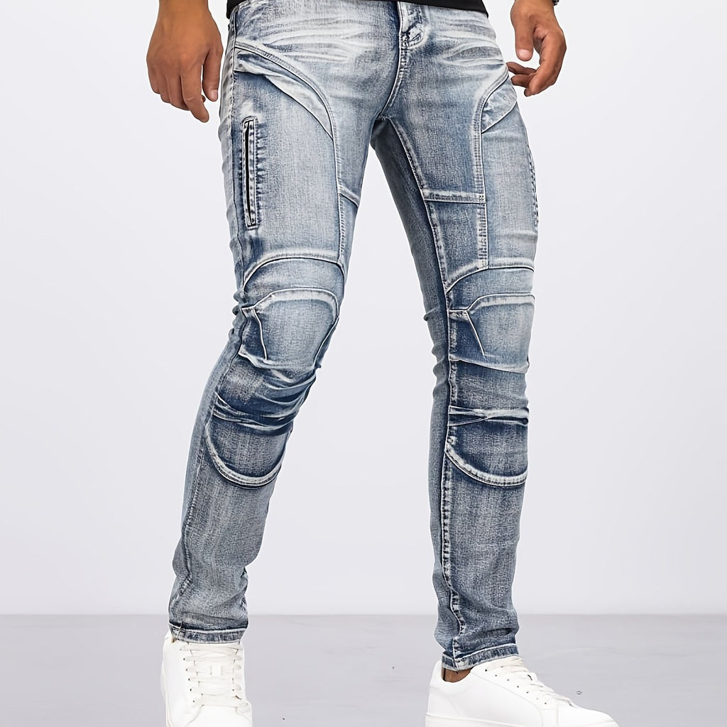 kkboxly Men's Casual Skinny Biker Jeans, Chic Street Style Stretch Denim Pants
