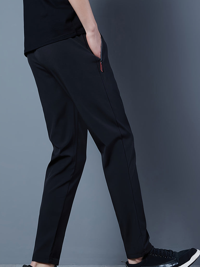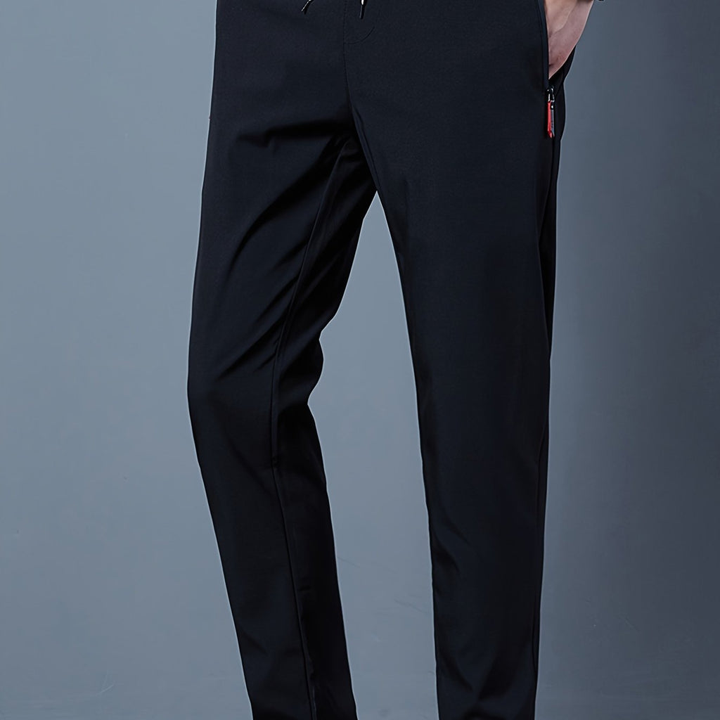 kkboxly Men's Casual Solid Color Pants Slightly Stretch Sports Pants For Spring Summer, Drawstring Sweat Pants With Zipper For Males