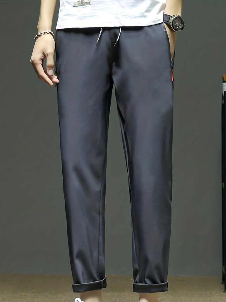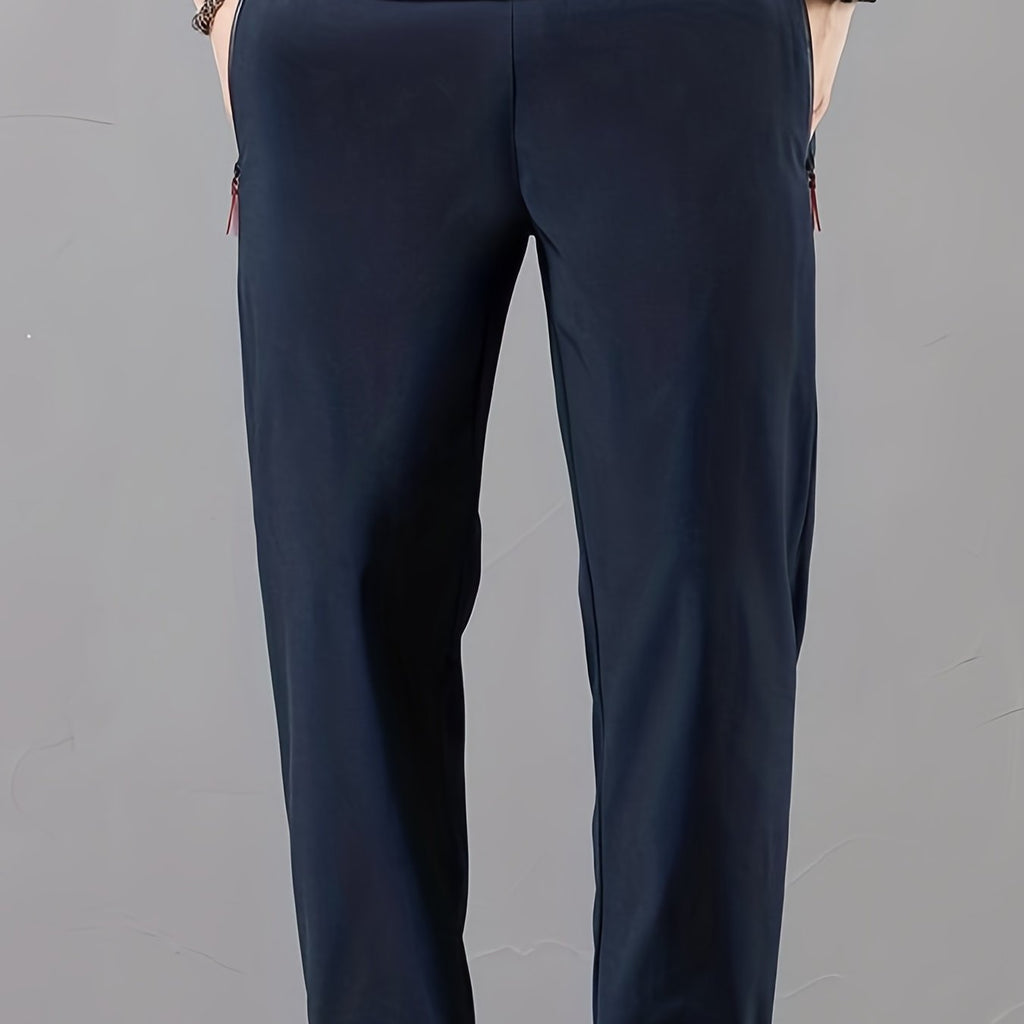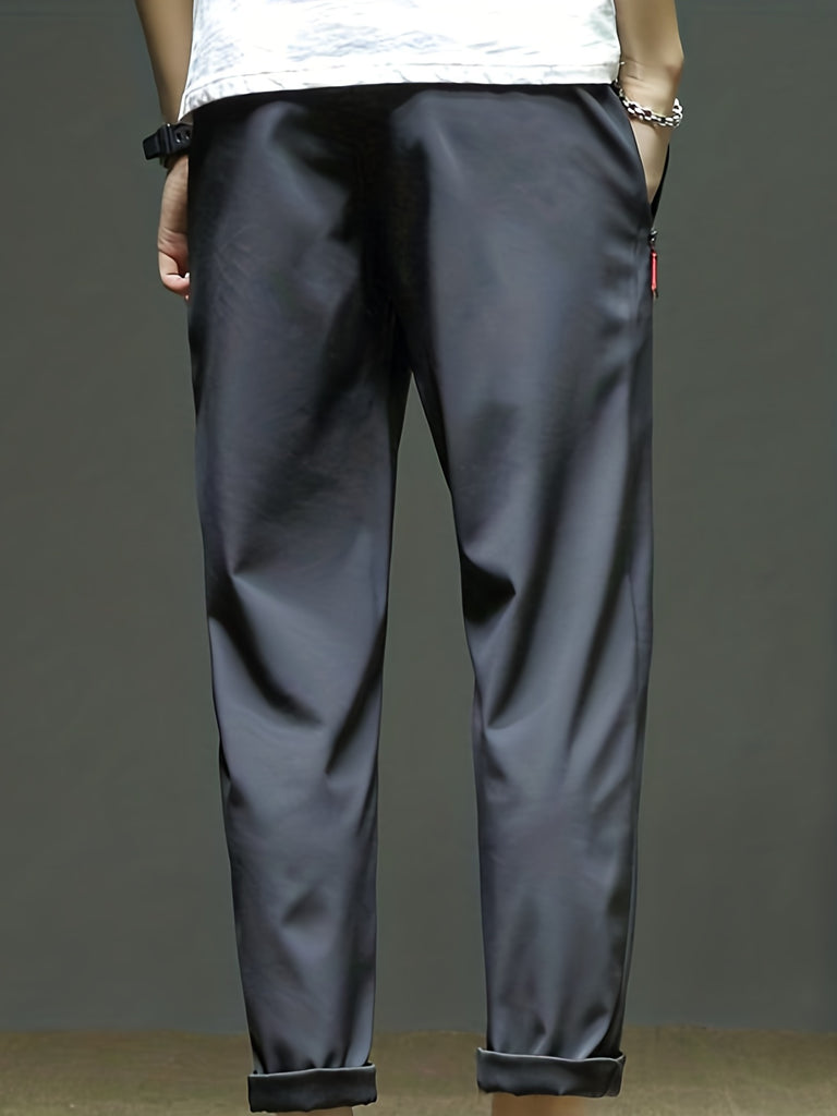 kkboxly Men's Casual Solid Color Pants Slightly Stretch Sports Pants For Spring Summer, Drawstring Sweat Pants With Zipper For Males