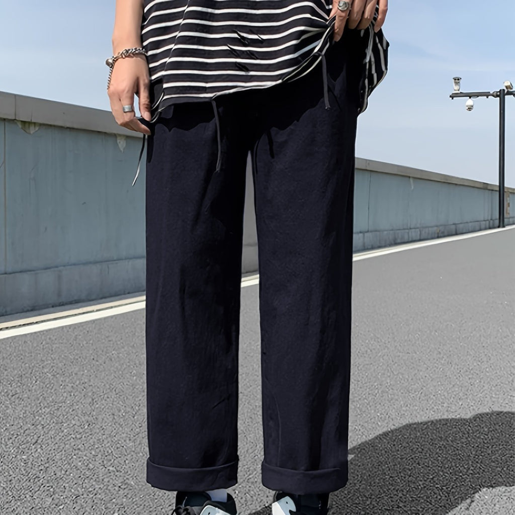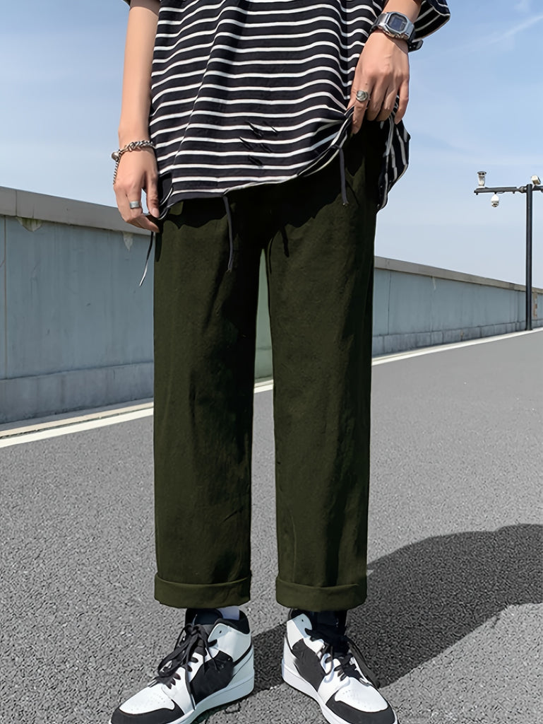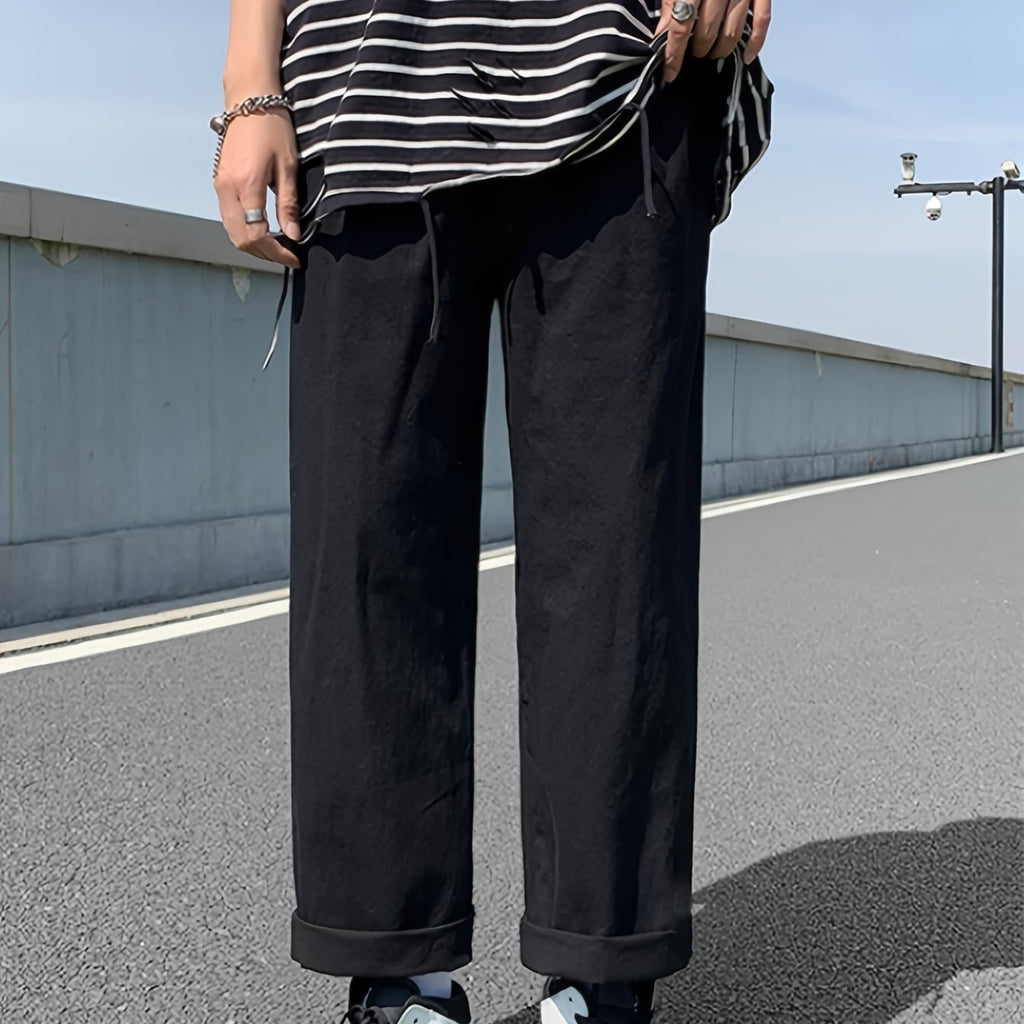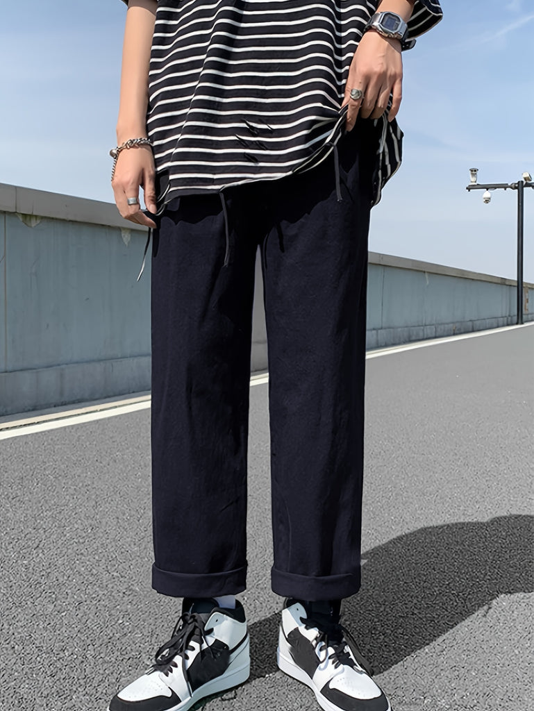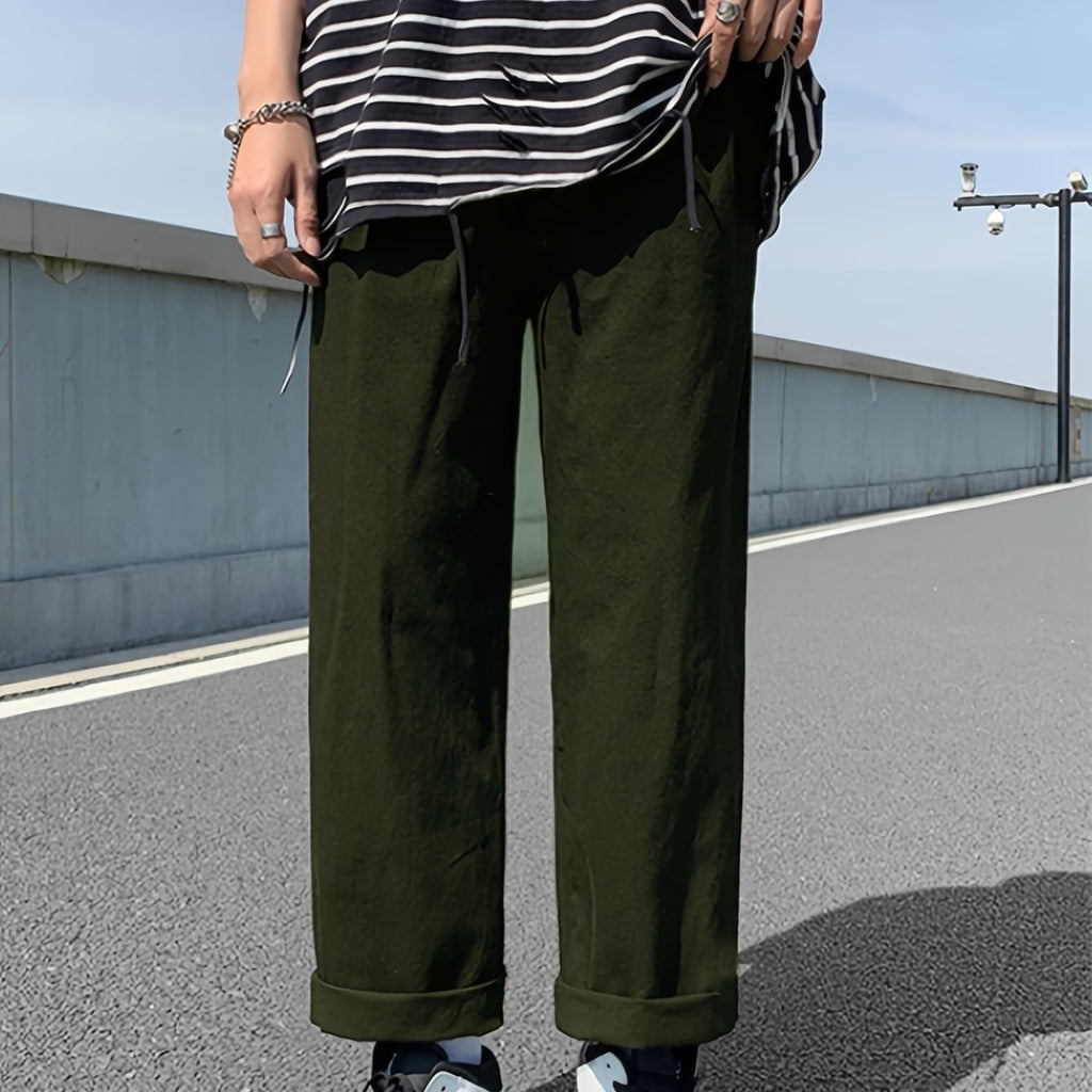 kkboxly Men's Casual Straight Leg Pants, Classic Design Cropped Pants