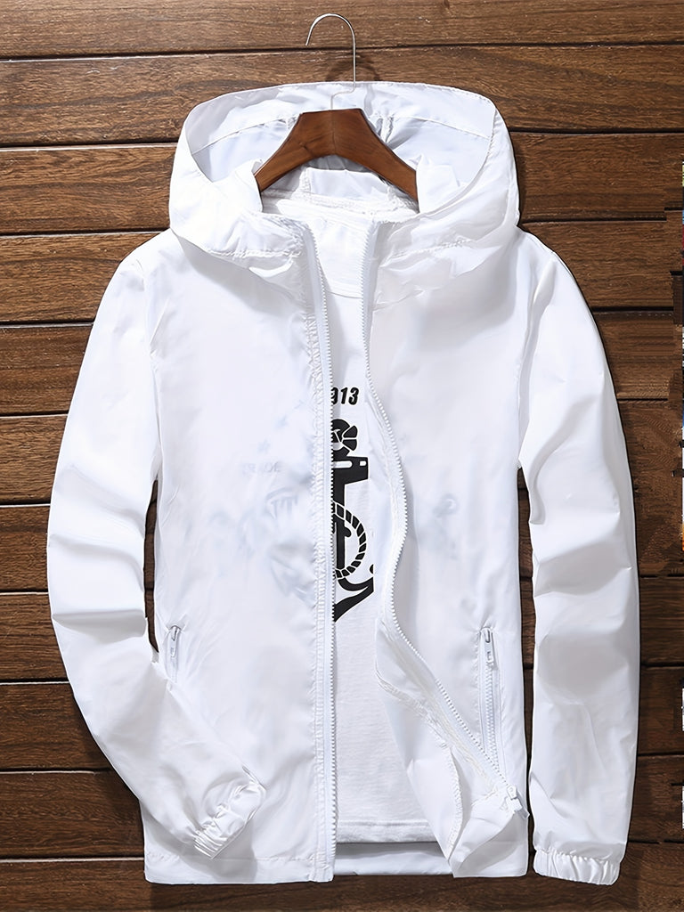 kkboxly Men's Casual Zipper Pocket Hooded Windbreaker Jacket, Chic Zip Up Jacket For Outdoor Activities