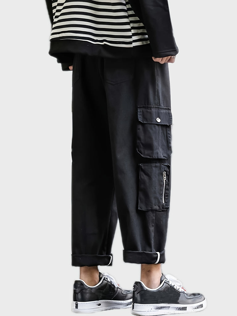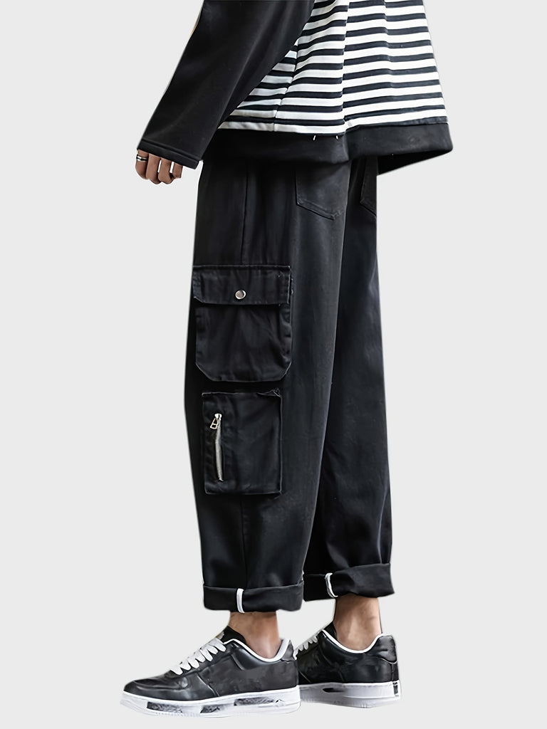 kkboxly Men's Casual Zipper Pockets Cargo Pants For All Seasons