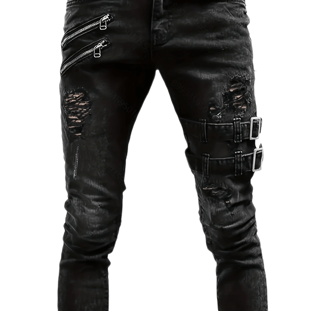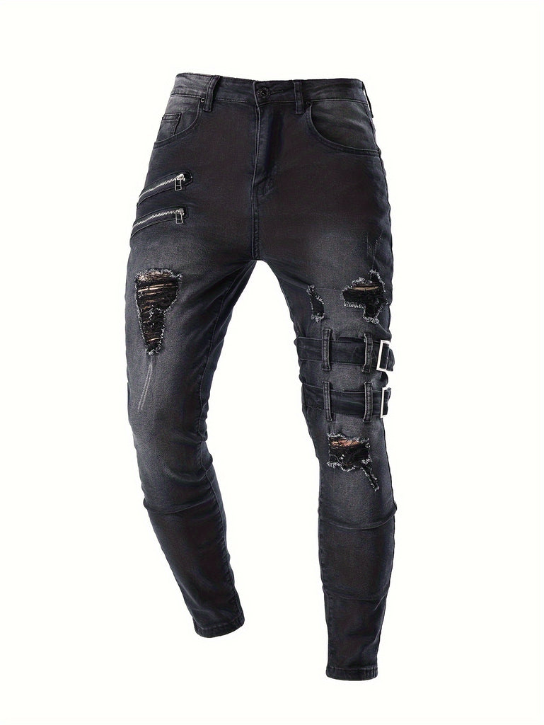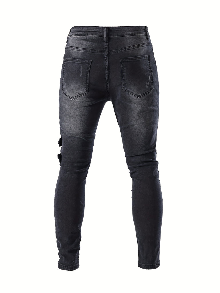 kkboxly Men's Chic Skinny Biker Jeans, Casual Street Style Medium Stretch Denim Pants