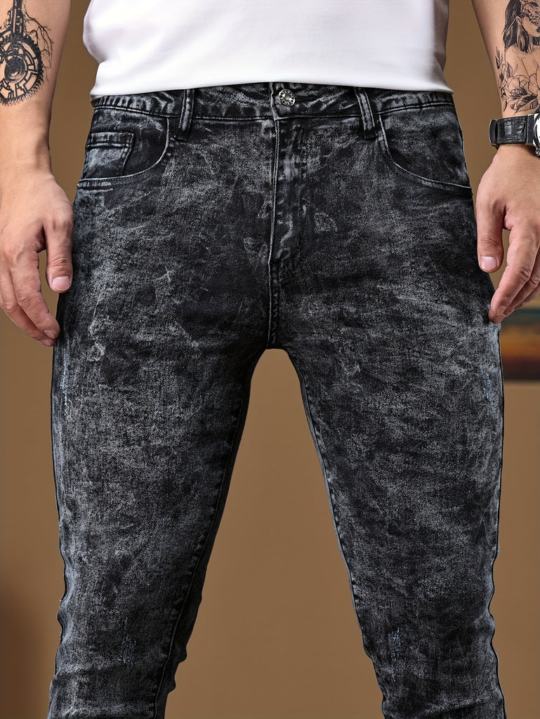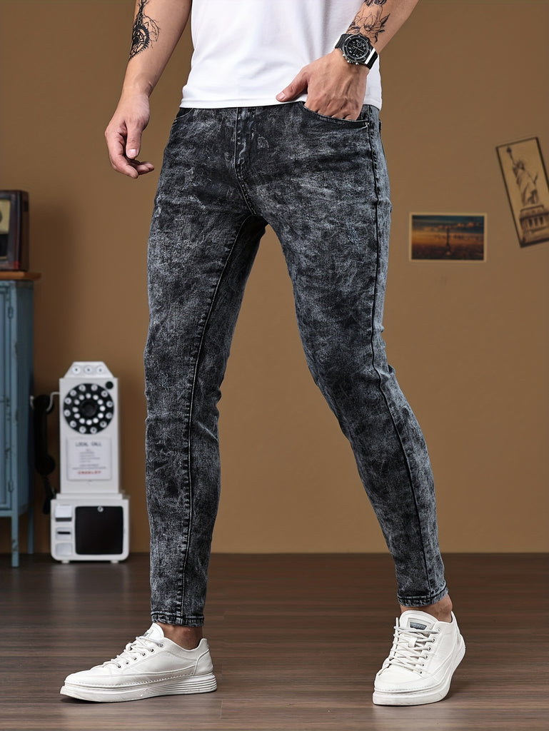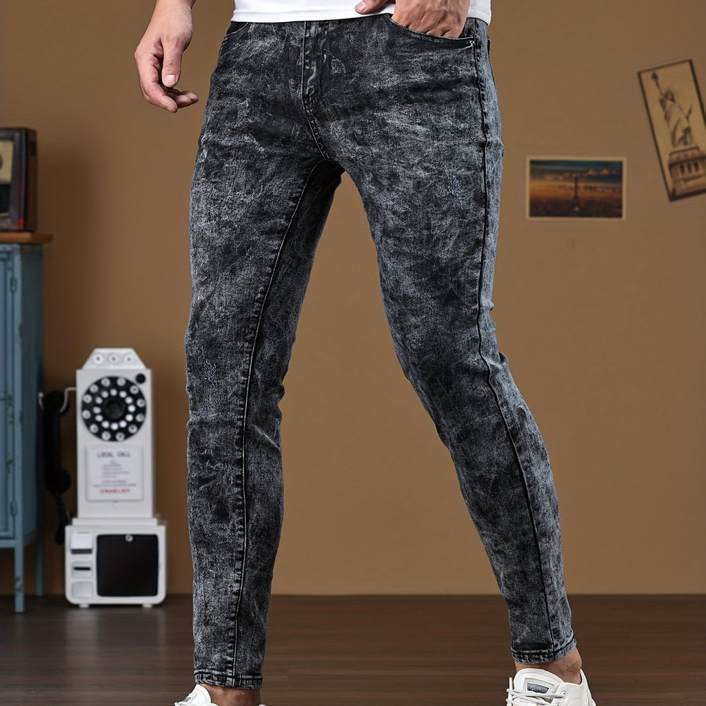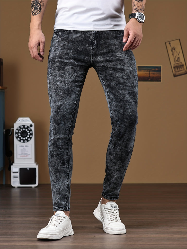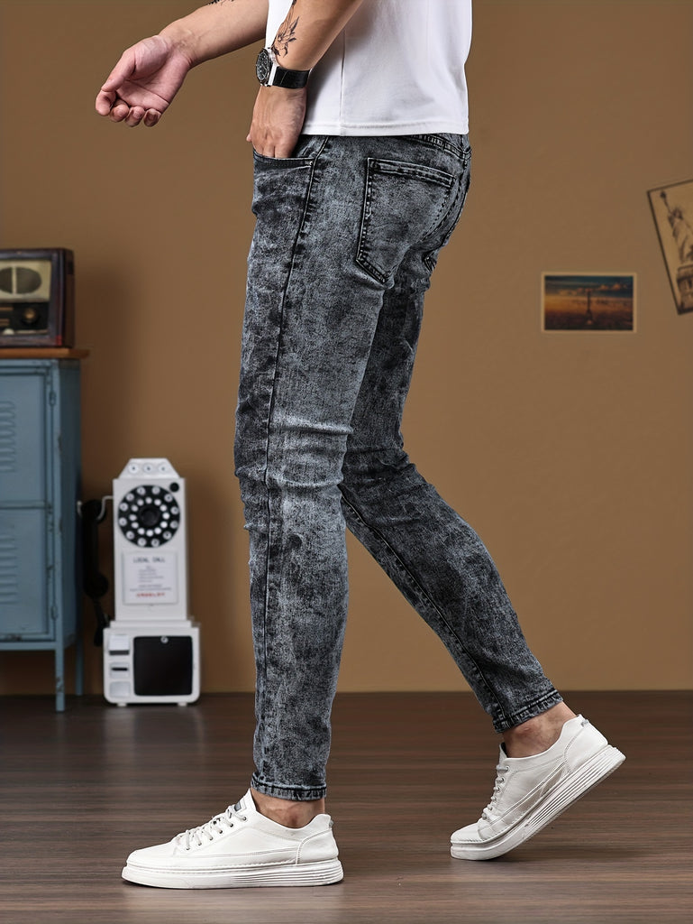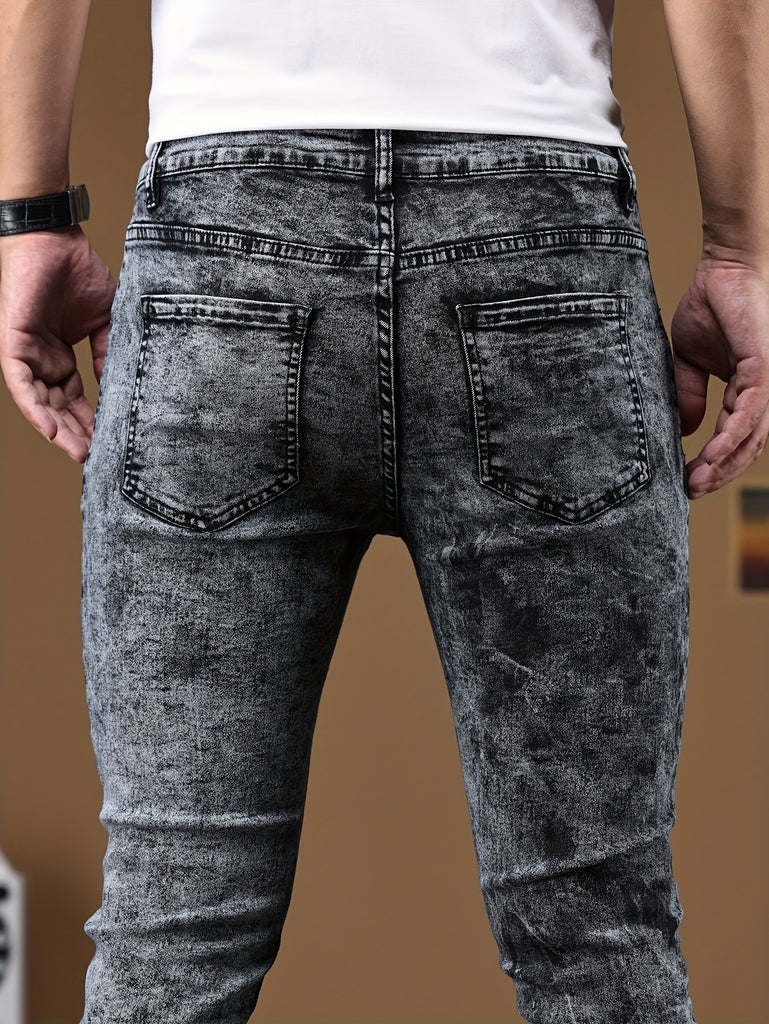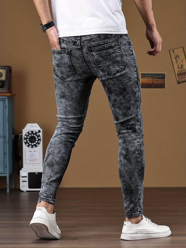 kkboxly Men's Chic Skinny Jeans, Men's Casual Street Style Distressed Stretch Denim Pants