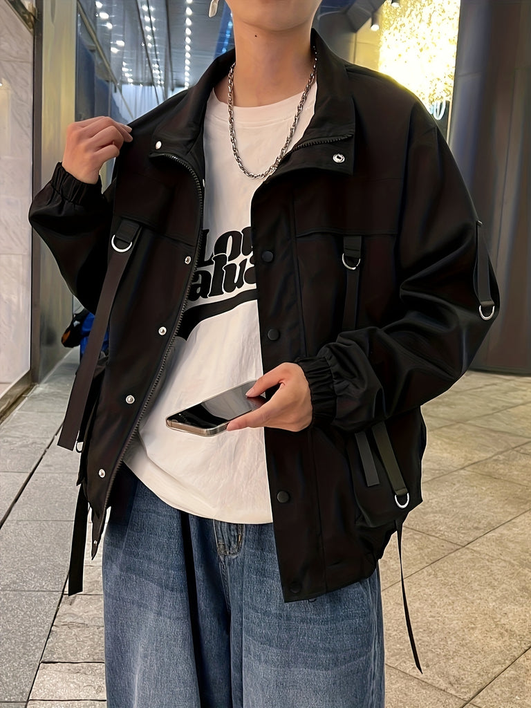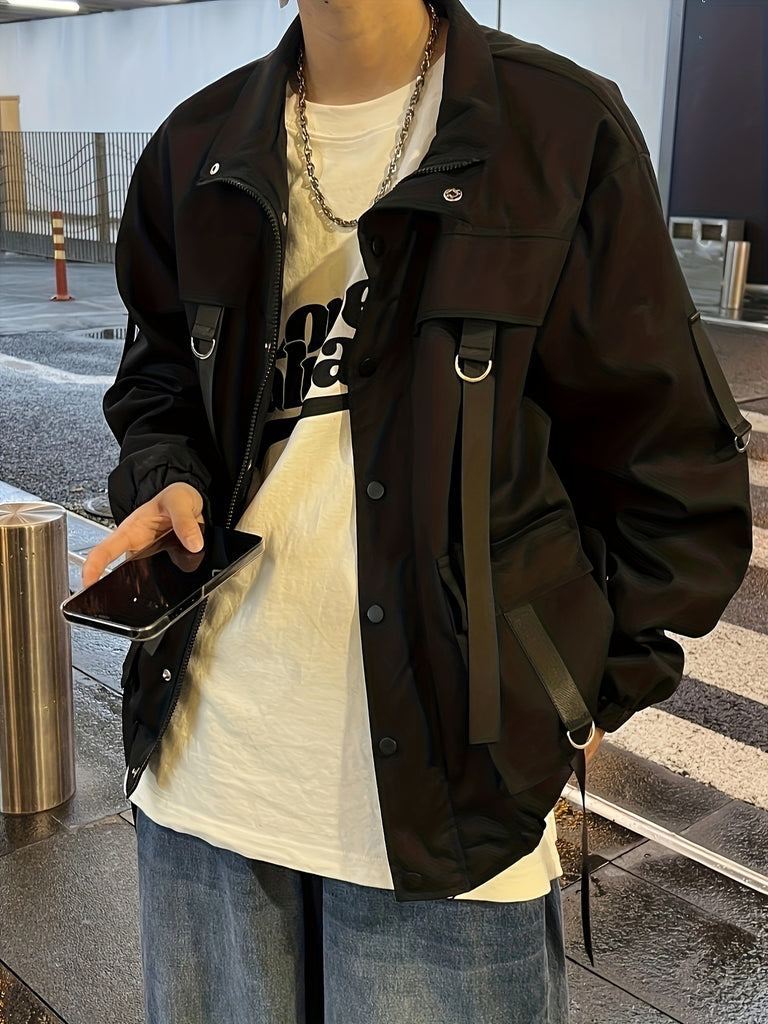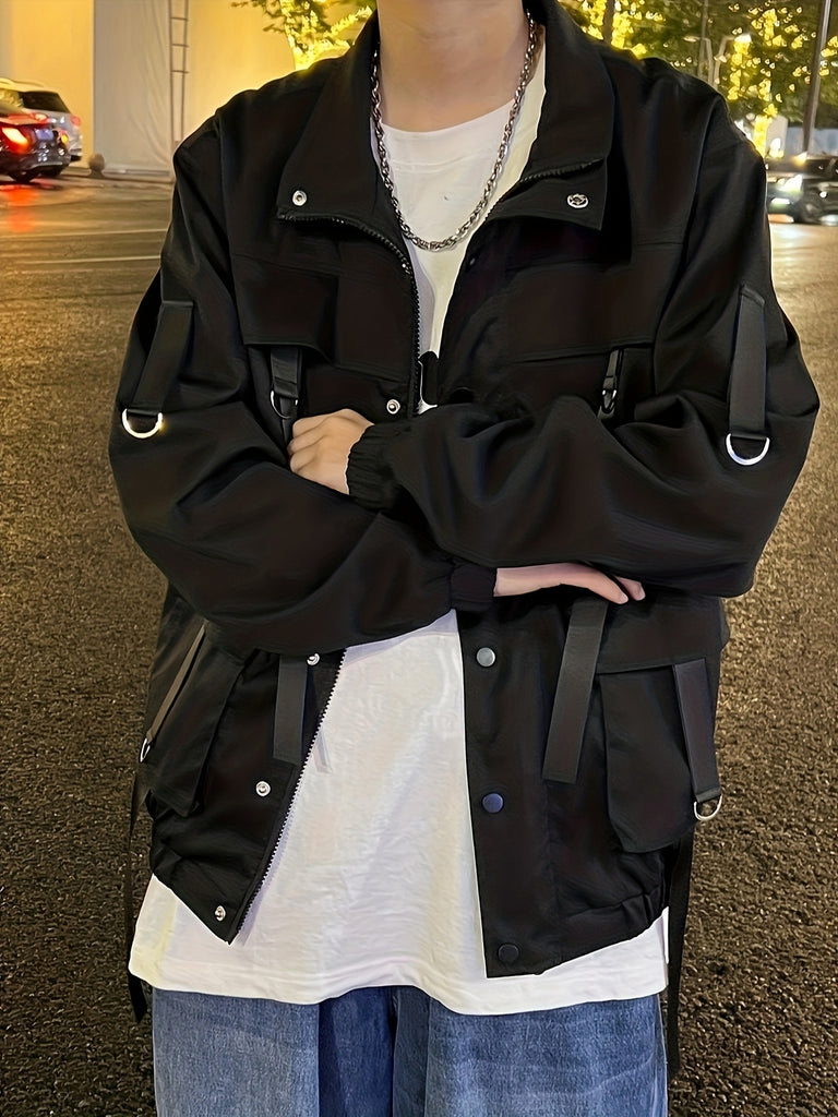 kkboxly Men's Chic Techwear Jacket, Street Style Multi Pocket Jacket For Spring Fall