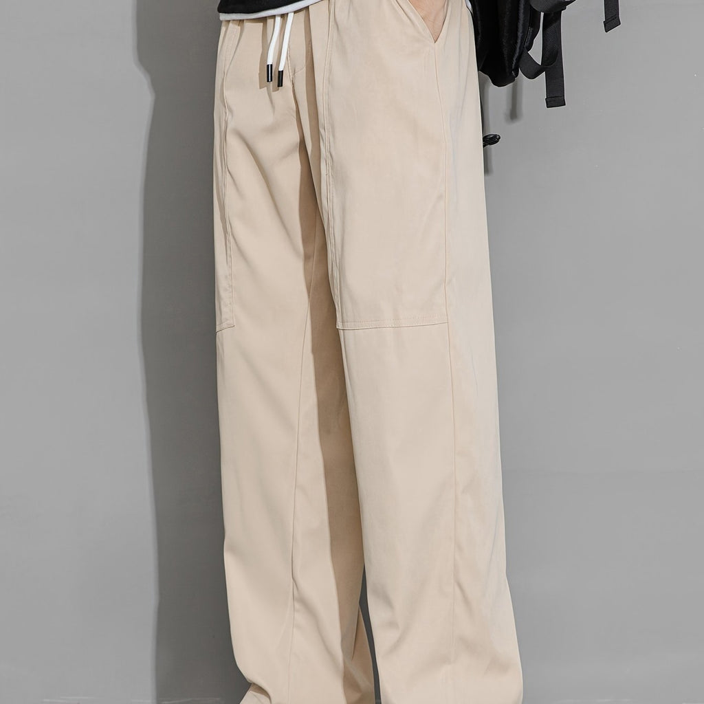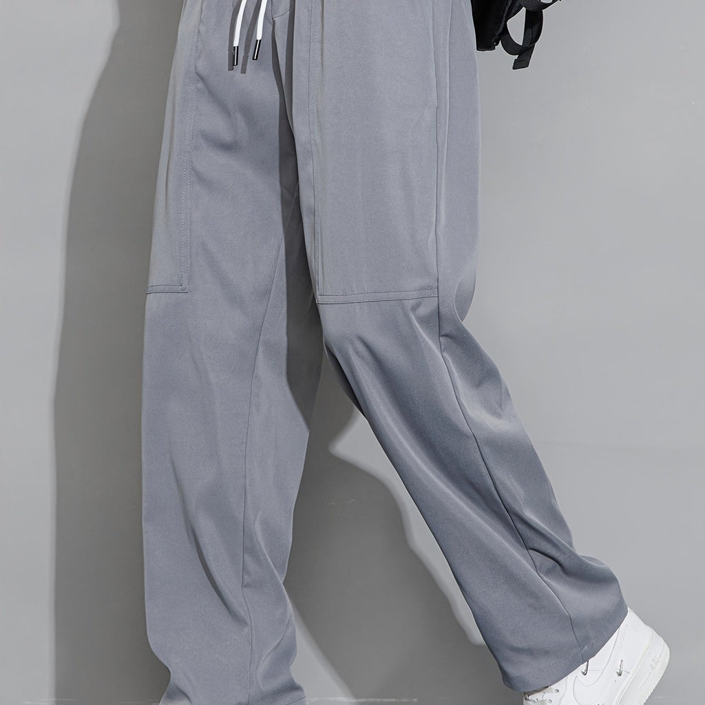 kkboxly Men's Drawstring Pants Beach Pant Solid Casual Loose Pants Streetwear Hip Hop Rapper Style