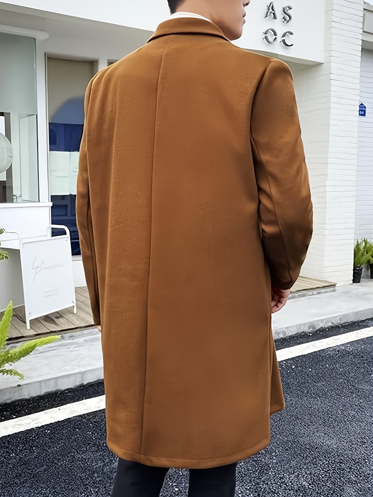 kkboxly Men's Elegant Trench Double Breasted Coat, Casual Wool-like Fabric Warm Overcoat For Fall Winter