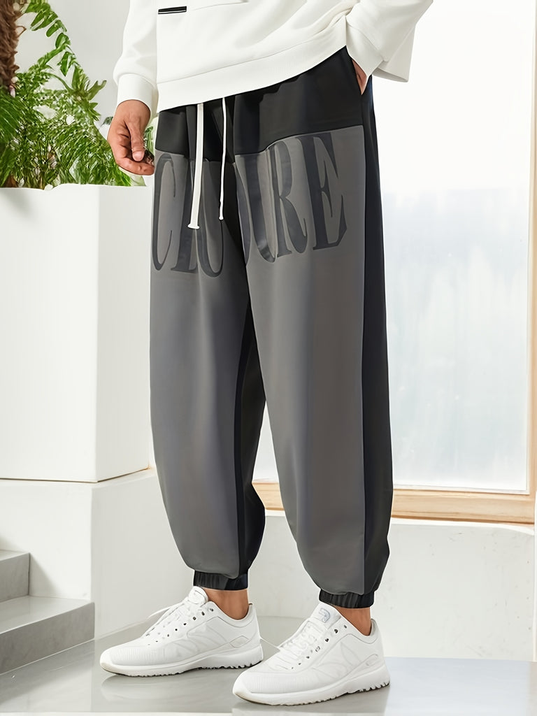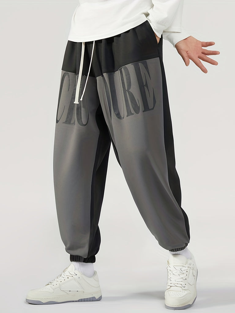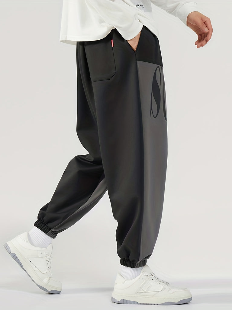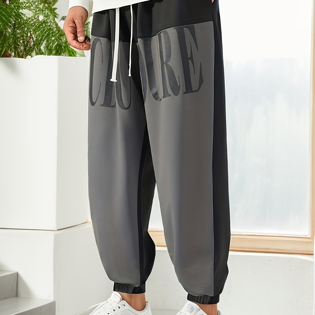 kkboxly Men's Fashion Color Block Sweatpants, Casual Slightly Stretch Breathable Loose Joggers For Outdoor