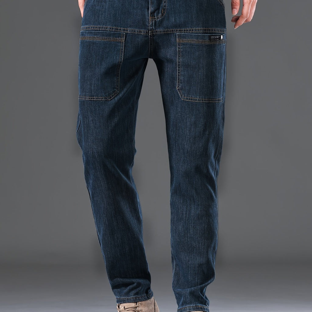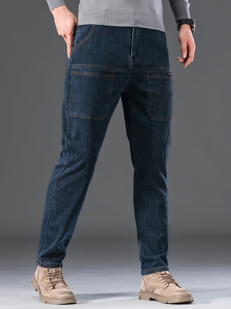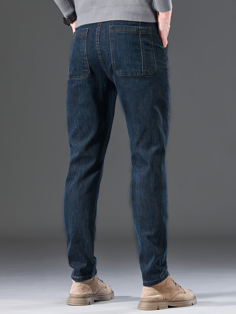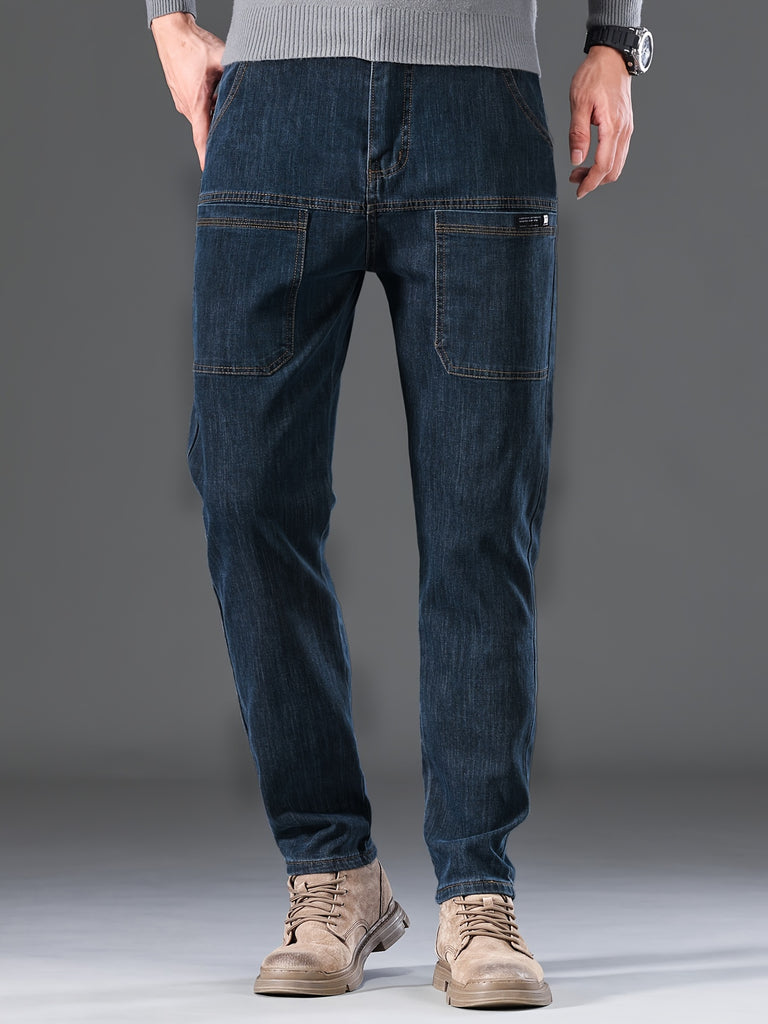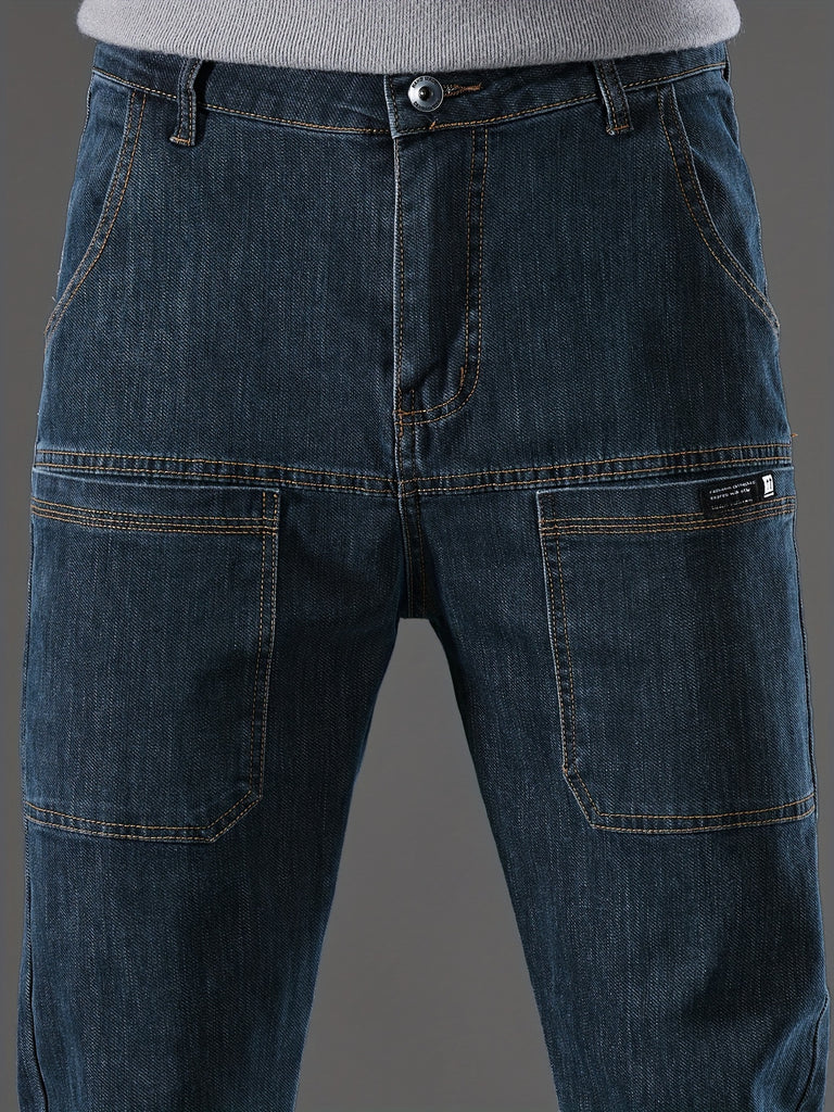 kkboxly Men's Letter Print Street Style Denim Jeans, Fashion Trend, Can Be Paired With Chain Jewelry