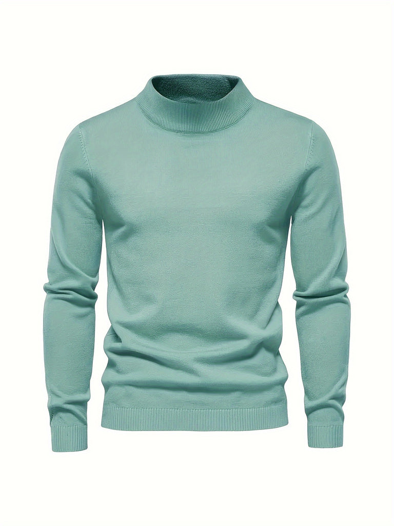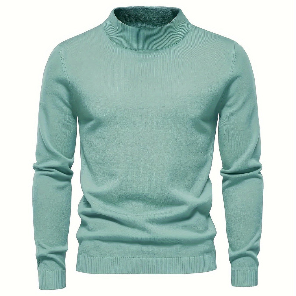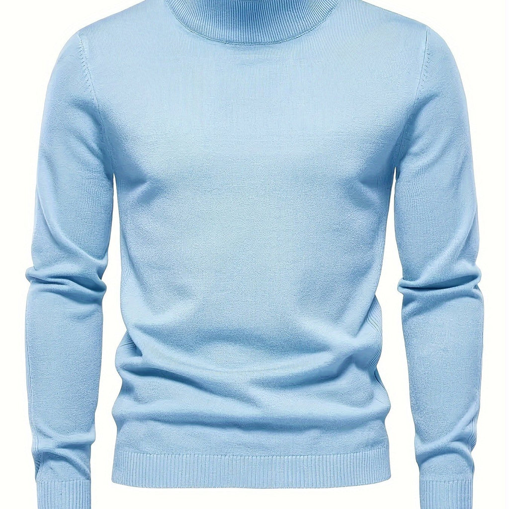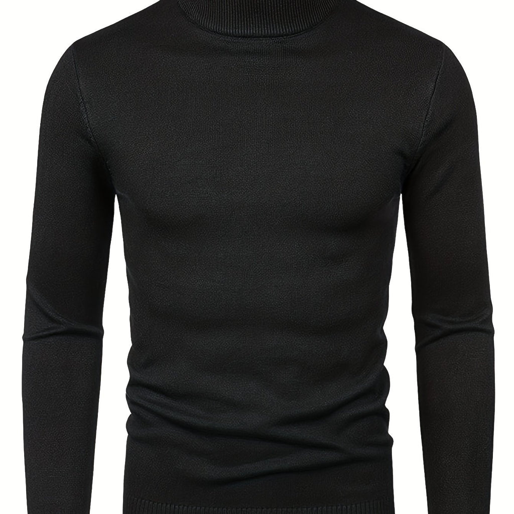 kkboxly Men's Long Sleeve Turtleneck Knitted Sweater, Men's Casual Warm Solid Mid Stretch Pullover Sweater For Fall Winter