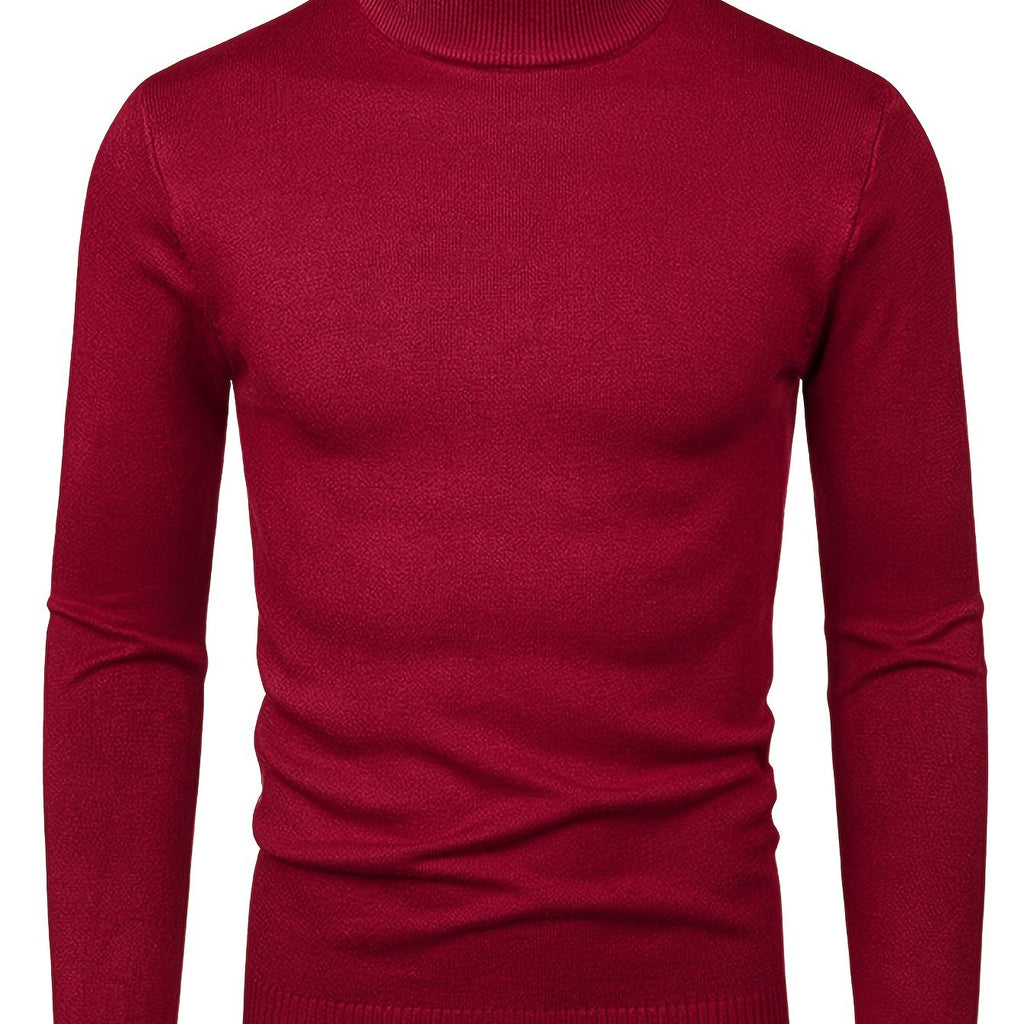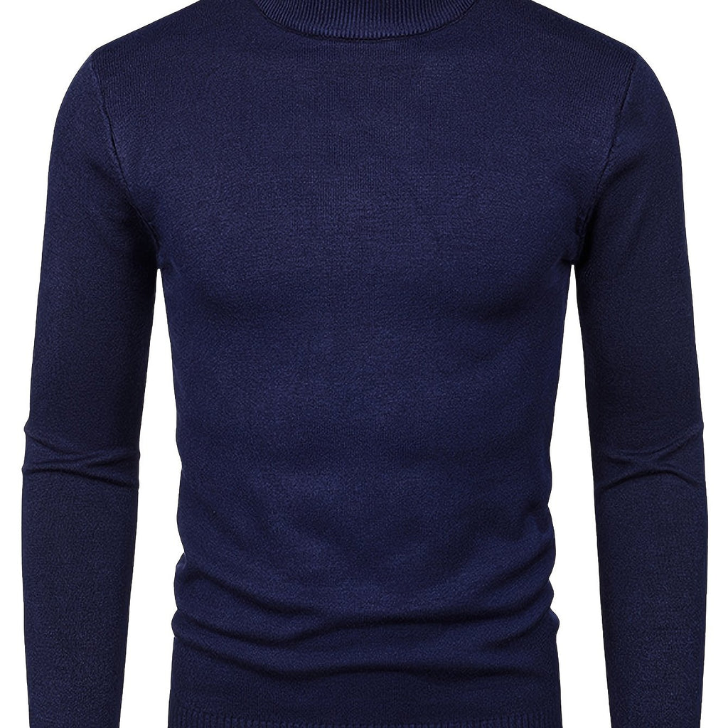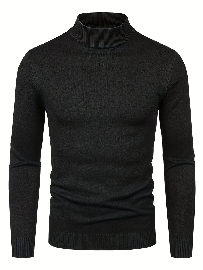 kkboxly Men's Long Sleeve Turtleneck Knitted Sweater, Men's Casual Warm Solid Mid Stretch Pullover Sweater For Fall Winter