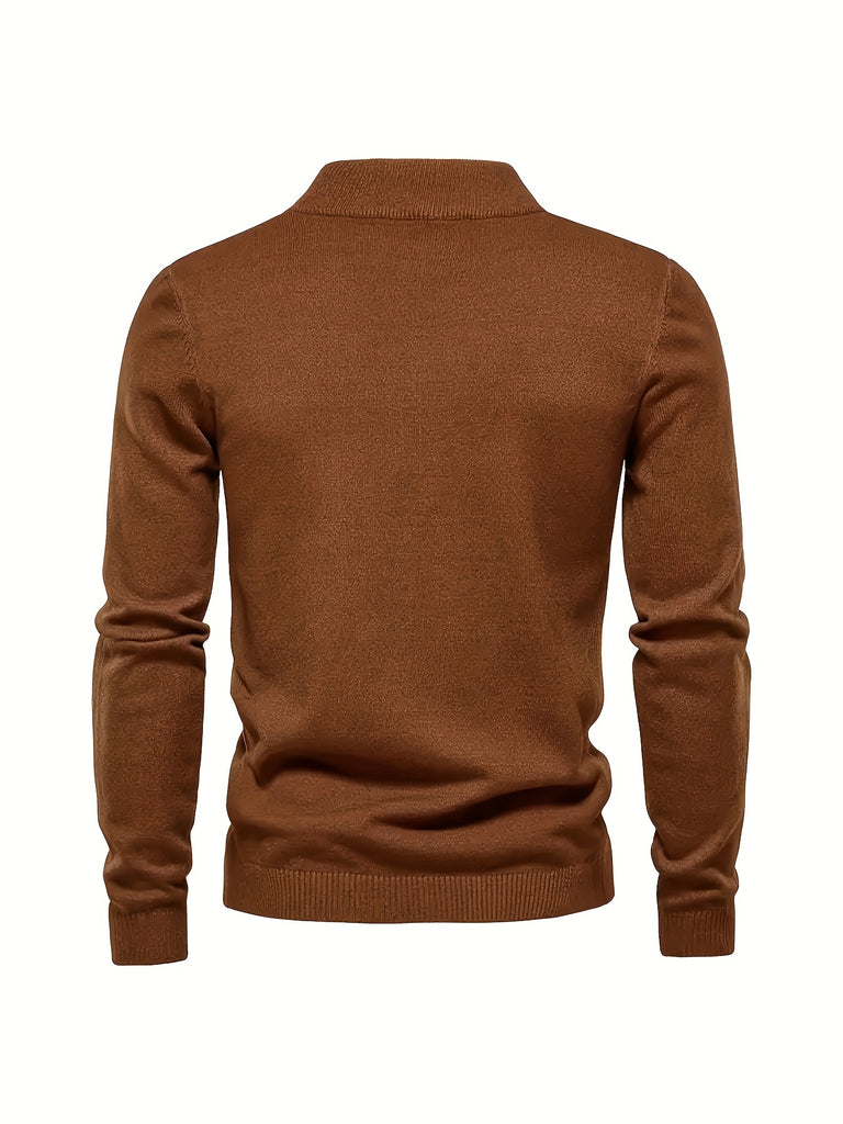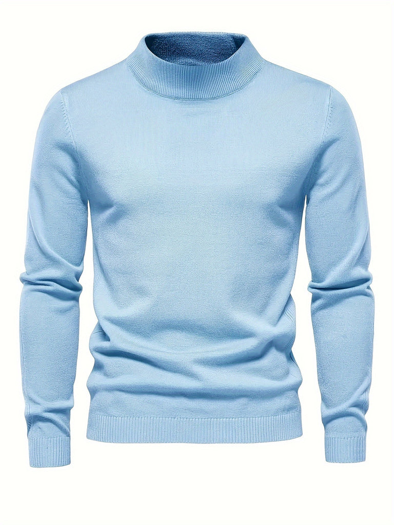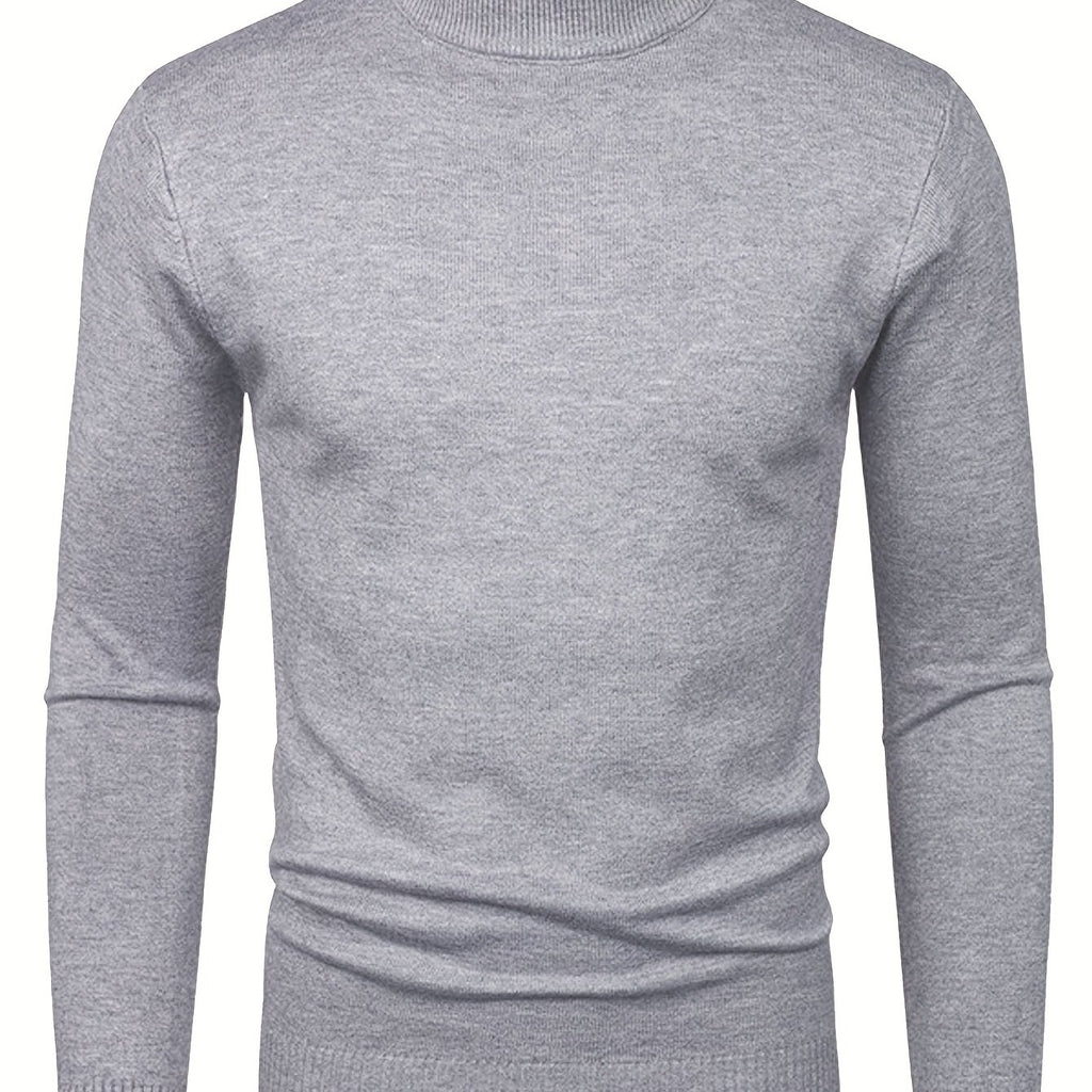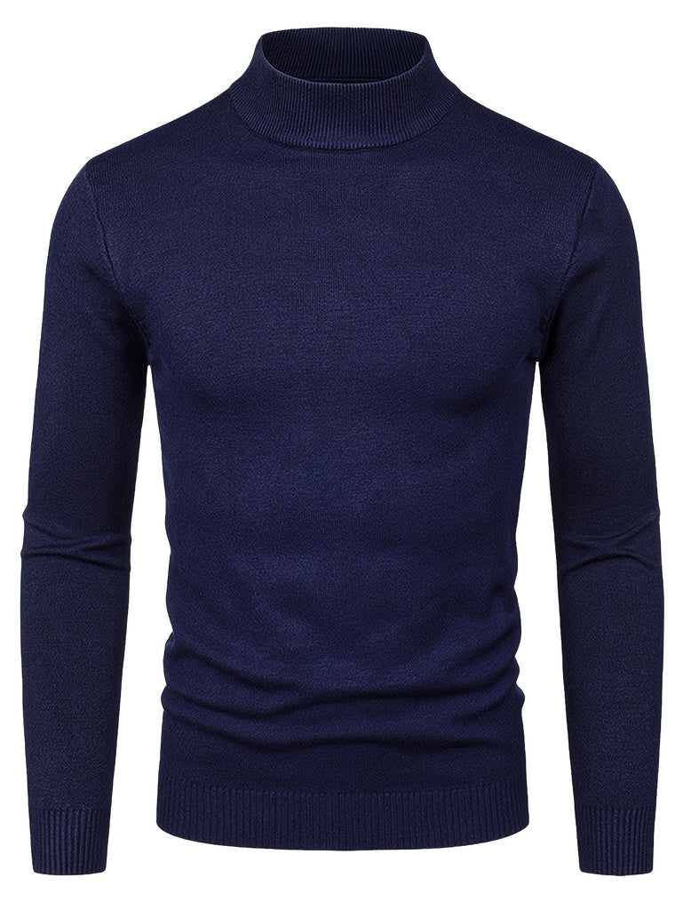 kkboxly Men's Long Sleeve Turtleneck Knitted Sweater, Men's Casual Warm Solid Mid Stretch Pullover Sweater For Fall Winter